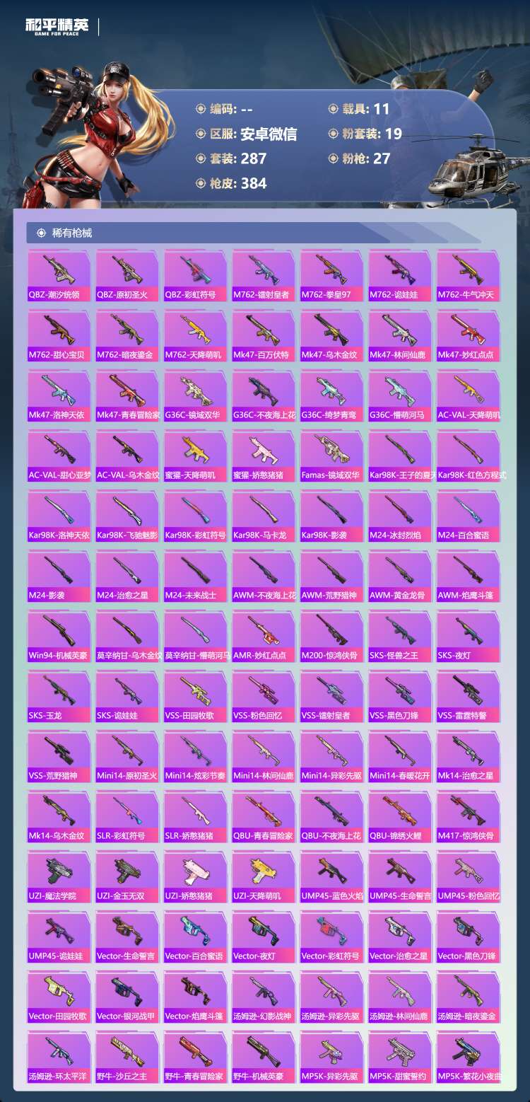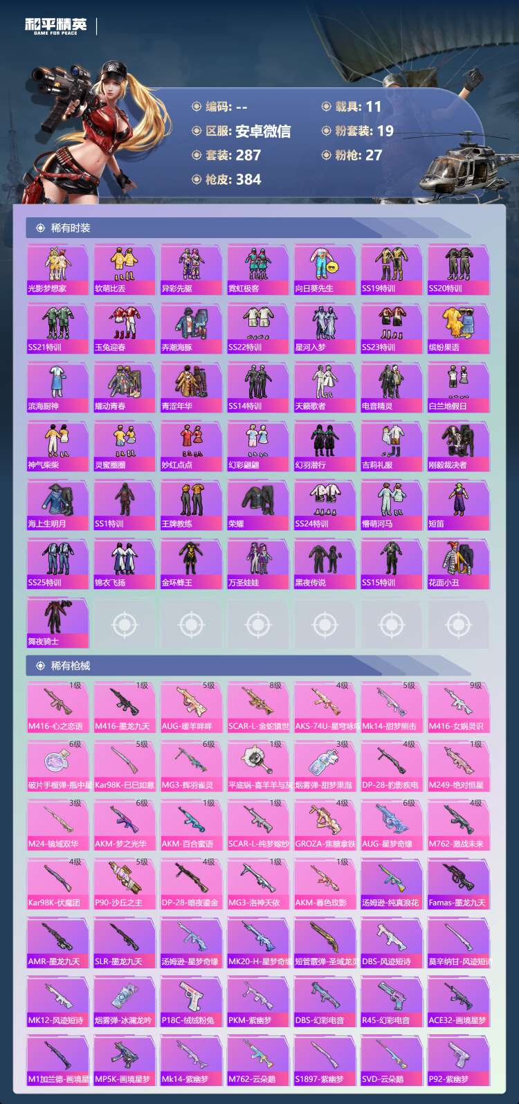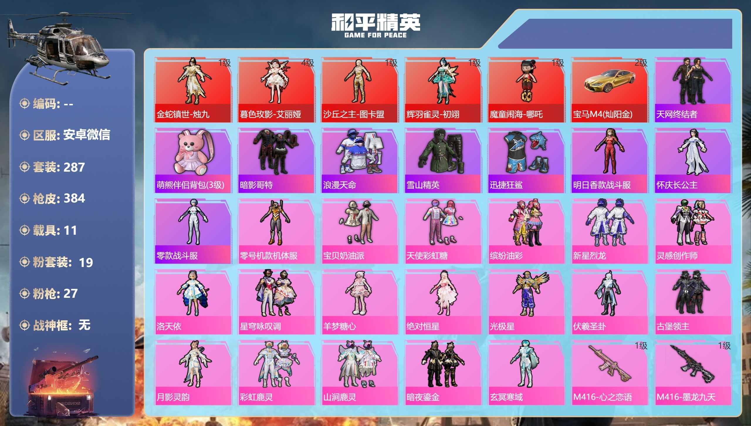 a4265/安卓微/19王牌印记-5红装-19粉装-27特效枪-11载具-160211热力值-28