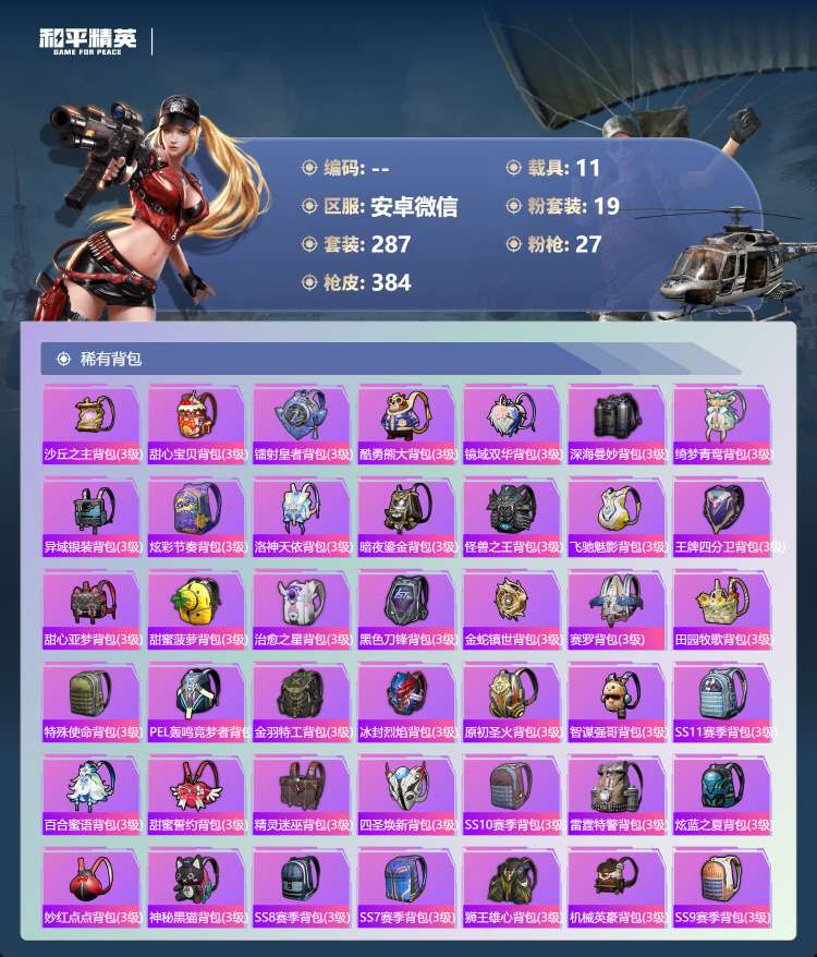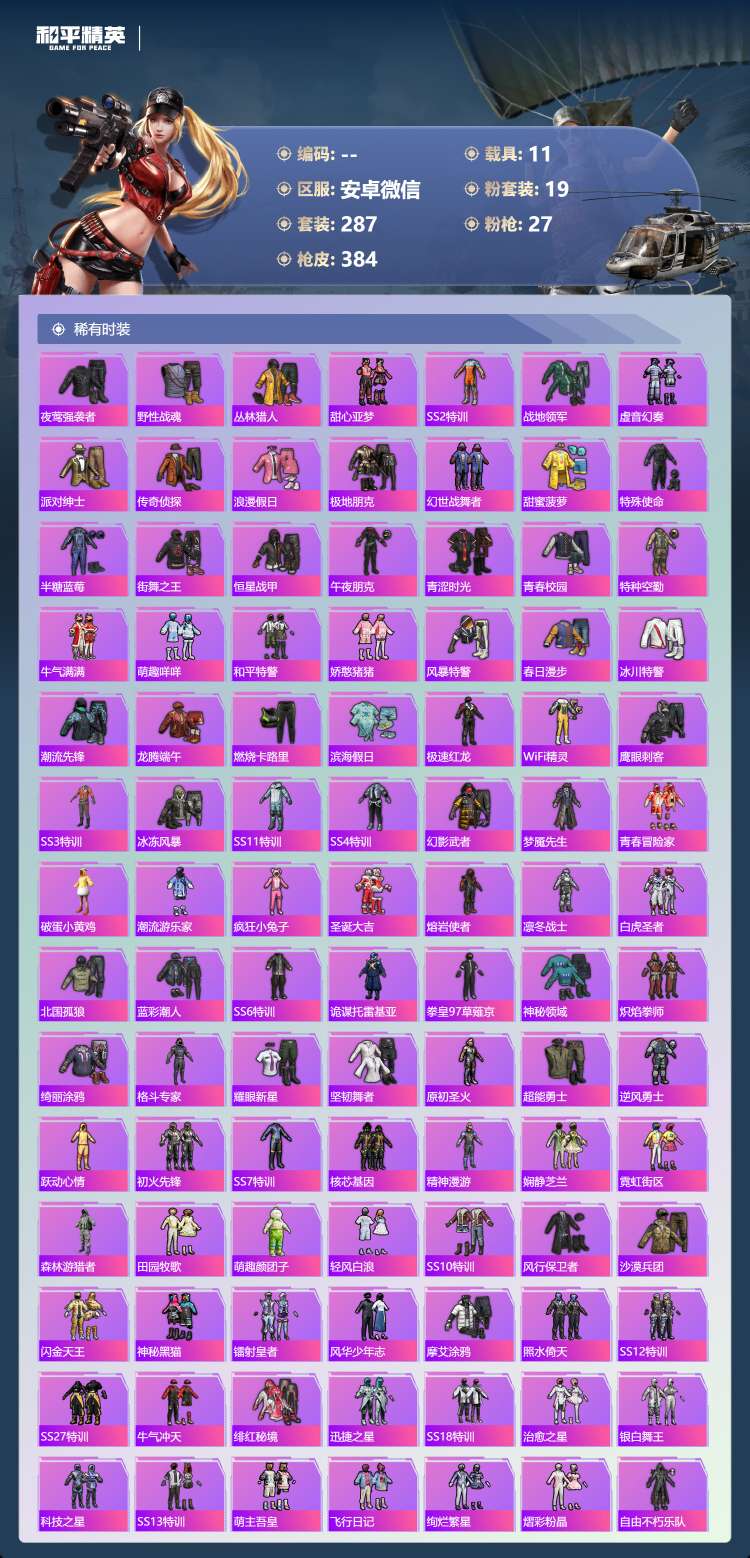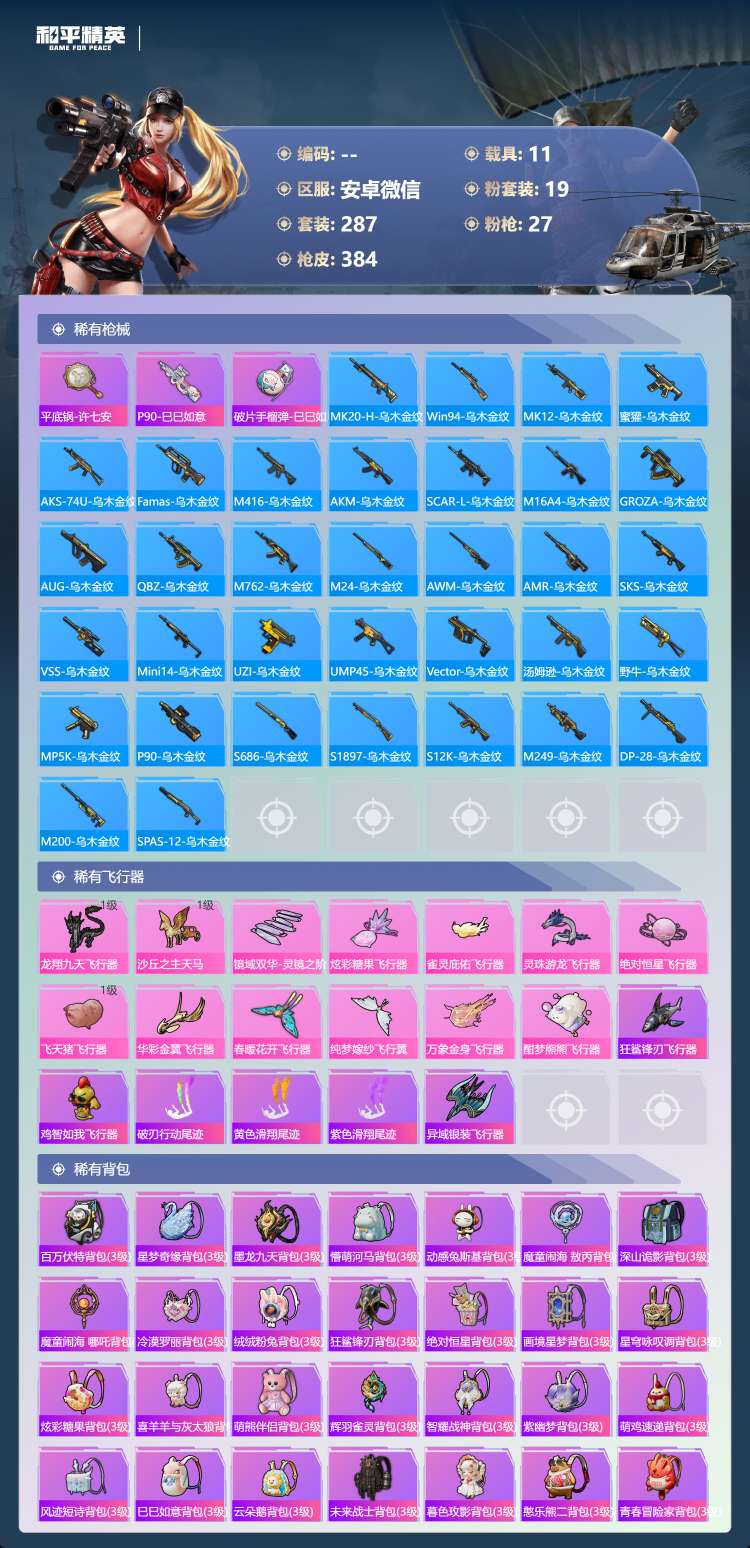 a4265/安卓微/19王牌印记-5红装-19粉装-27特效枪-11载具-160211热力值-28