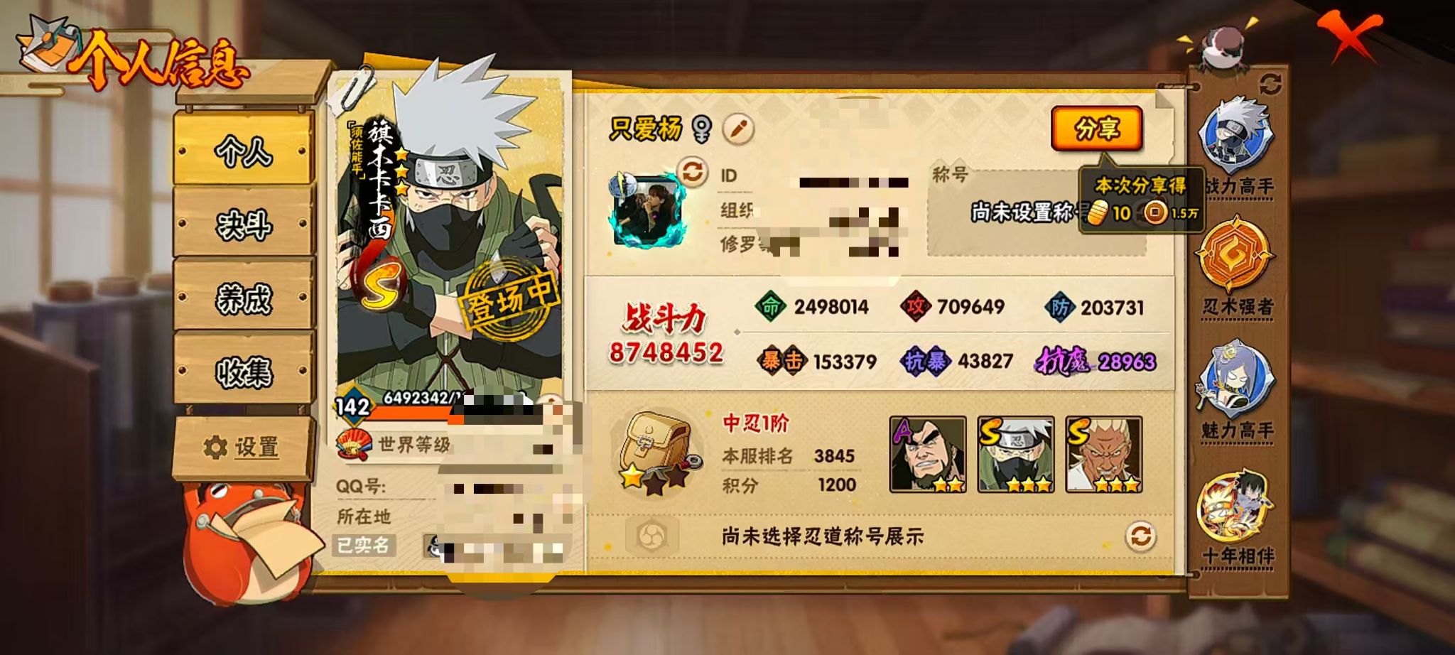 (可转苹果)874w战力创柱红夜带土12s+暴怒带土1直购2