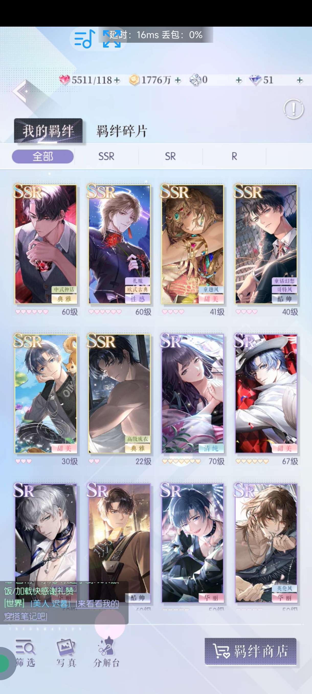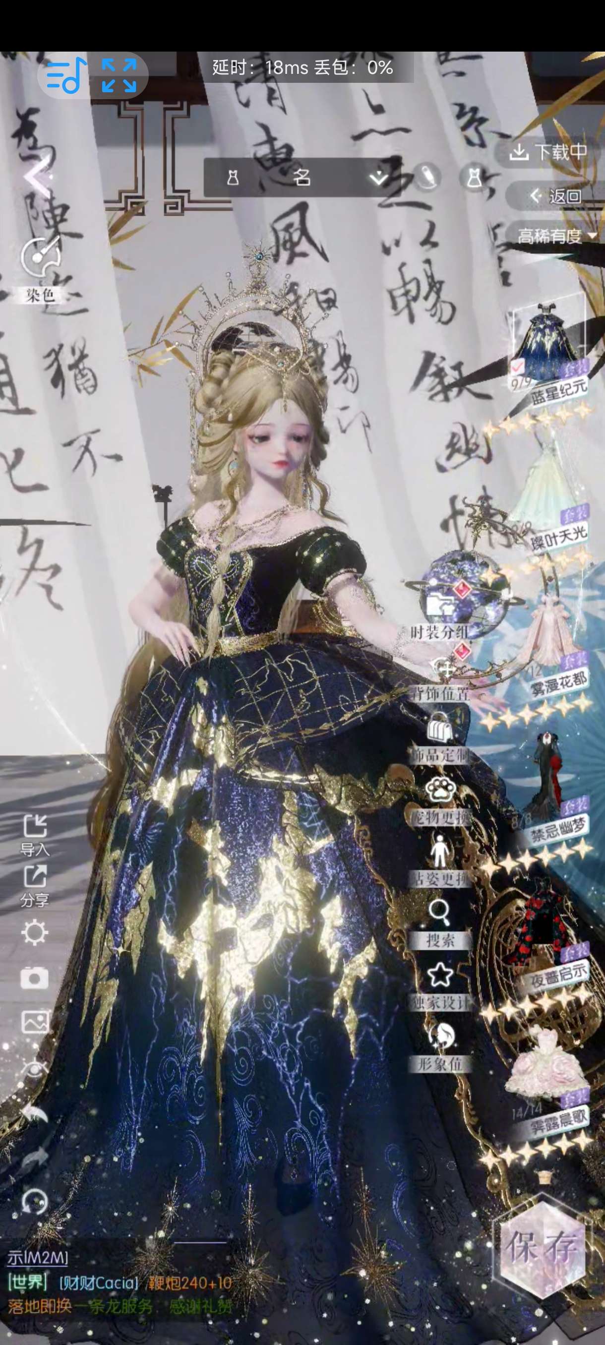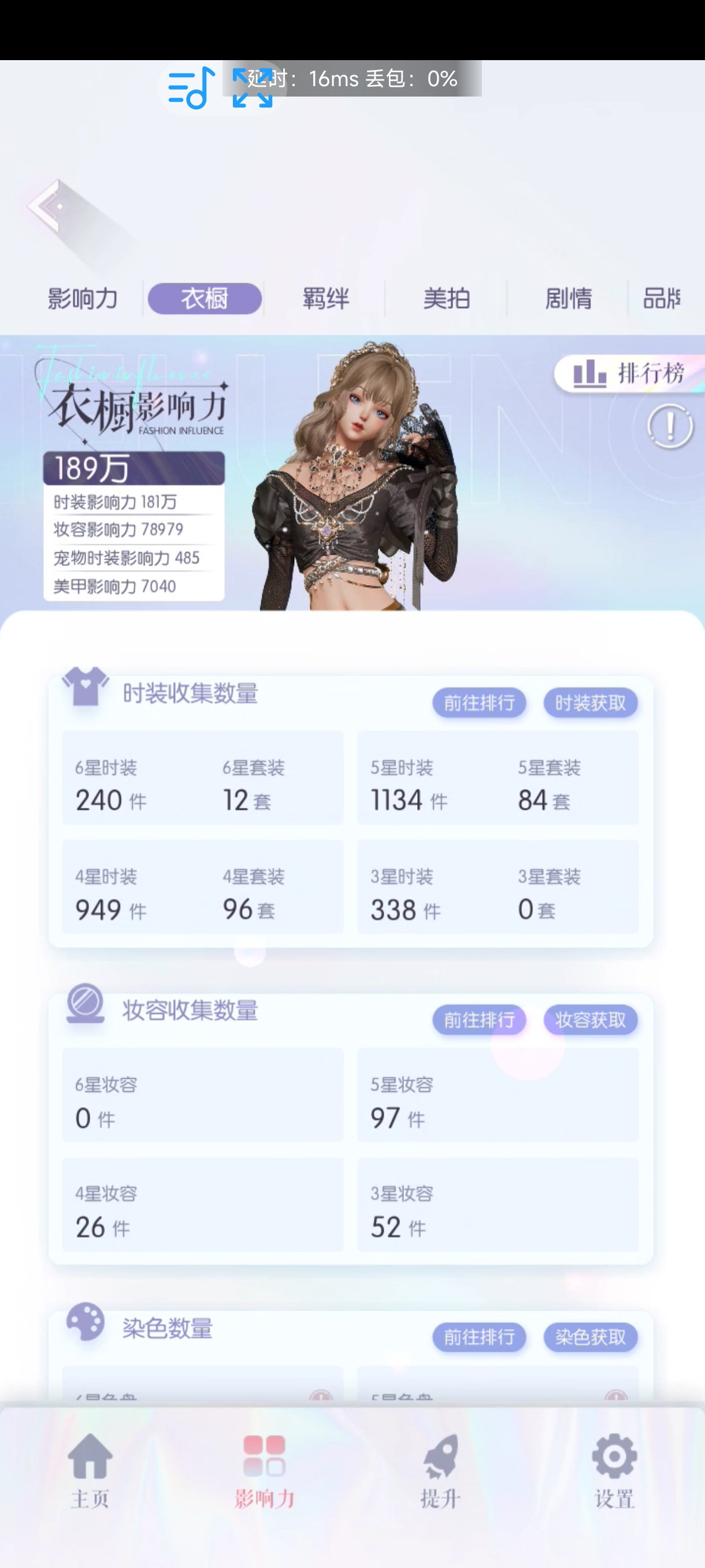 240件六星时装,12件六星套装,1134件五星时装,84件五星套装