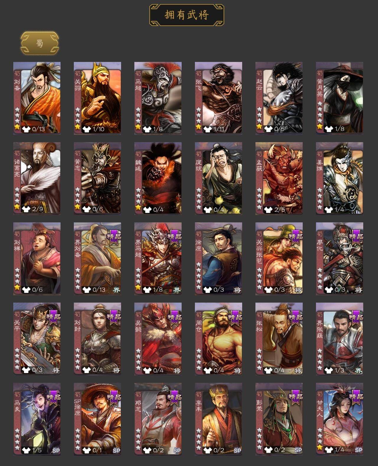 王元姬,界徐盛,SP关羽,乐进,曹昂,诸葛诞,文聘,SP姜维,曹冲,郭淮,界王异,界曹操,界夏侯惇,界张辽,李典,曹真,韩浩史涣,陈群,曹叡,界满宠,华歆,马良,关兴张苞,廖化,关平,刘封,