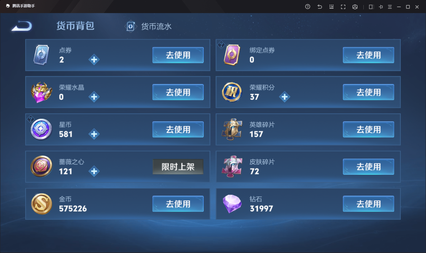 虞姬典藏+久胜皮肤数量233印记总数30V6至尊星耀暂时不可