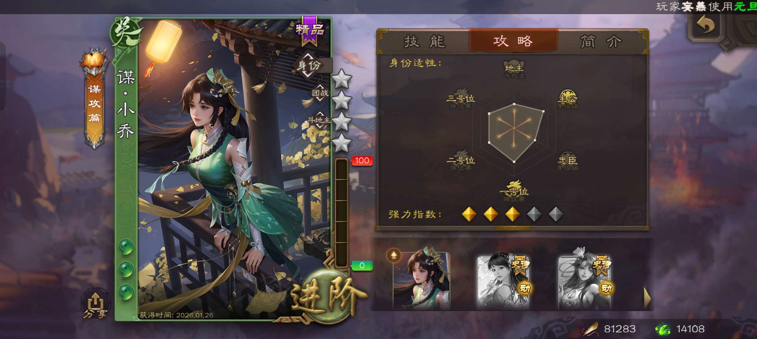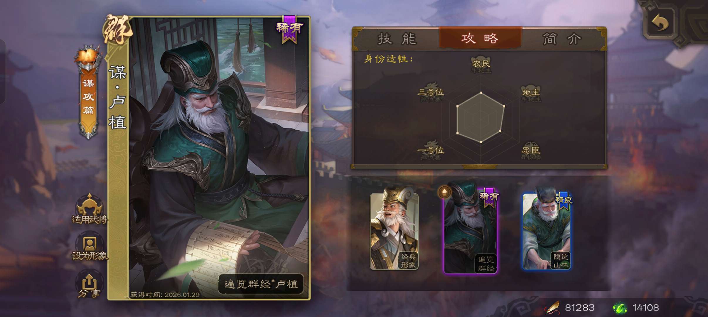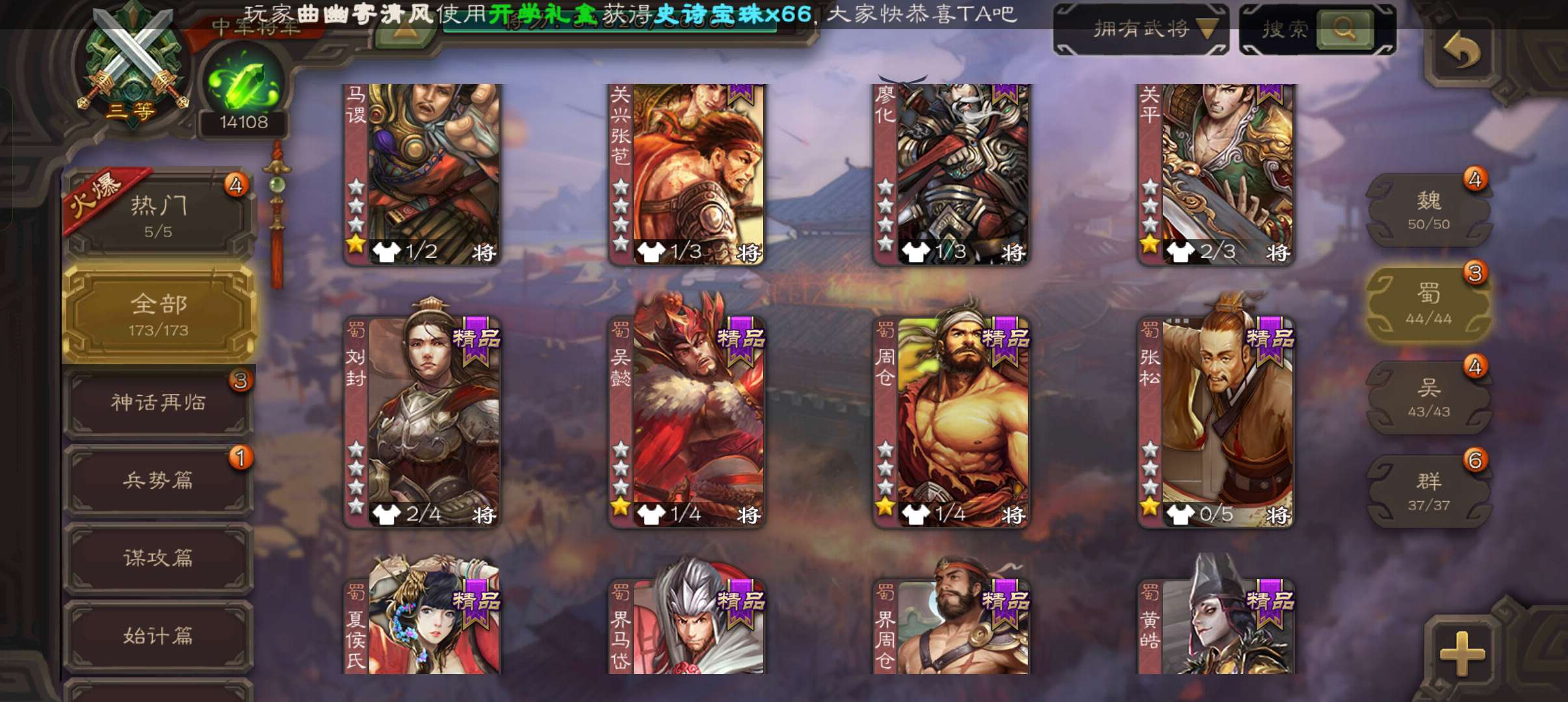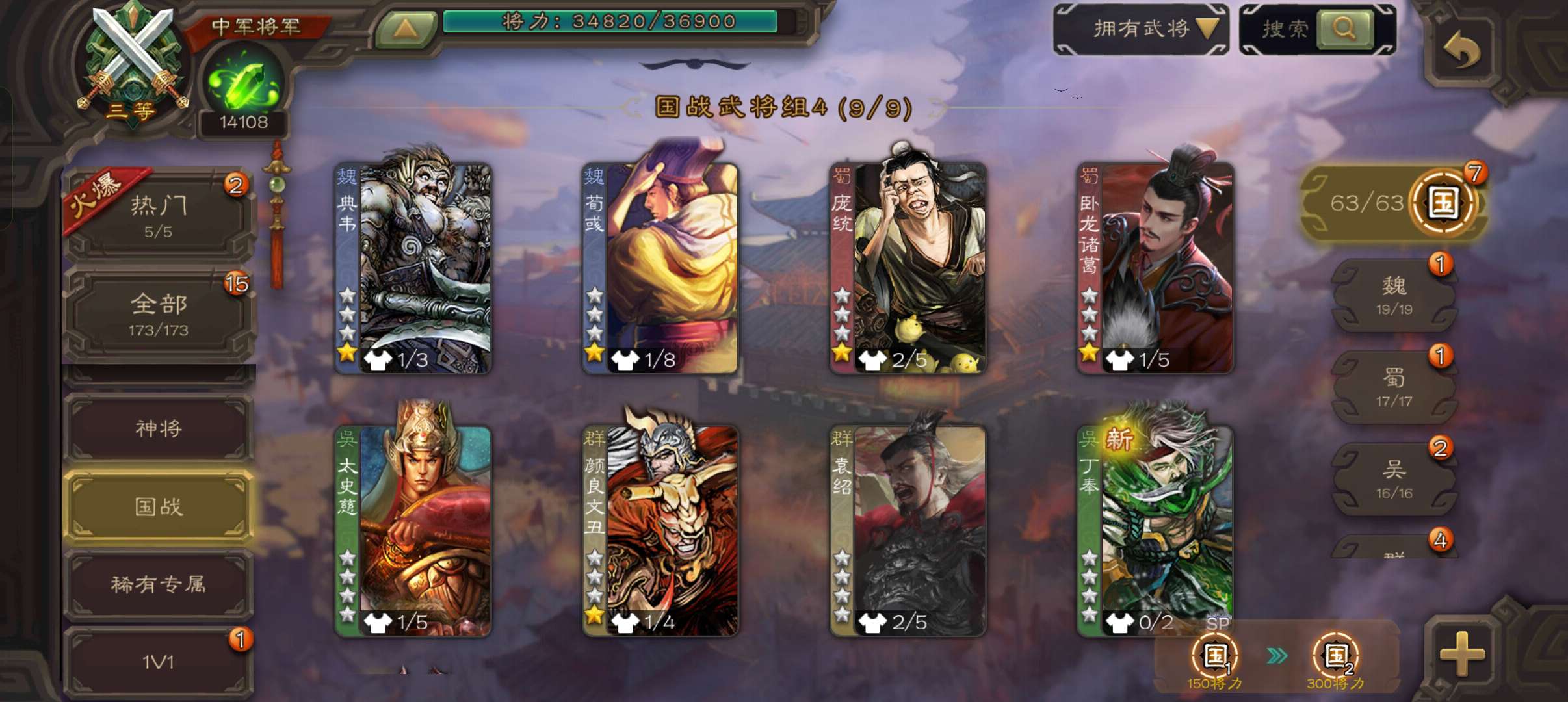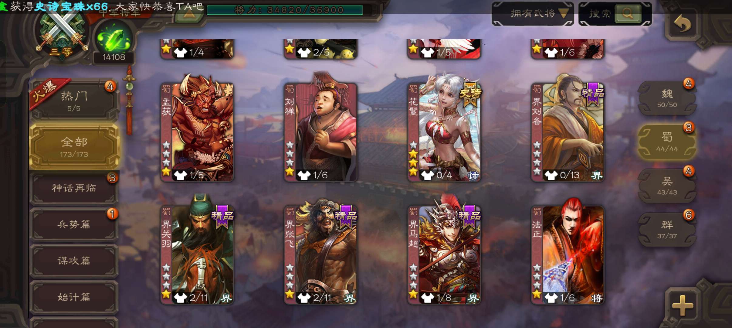 中军将军,8万羽毛1.4万将魂,大宝界徐盛沮授花鬘程昱4史诗,sp赵云谋卢植关银屏谋高顺鲁肃173将