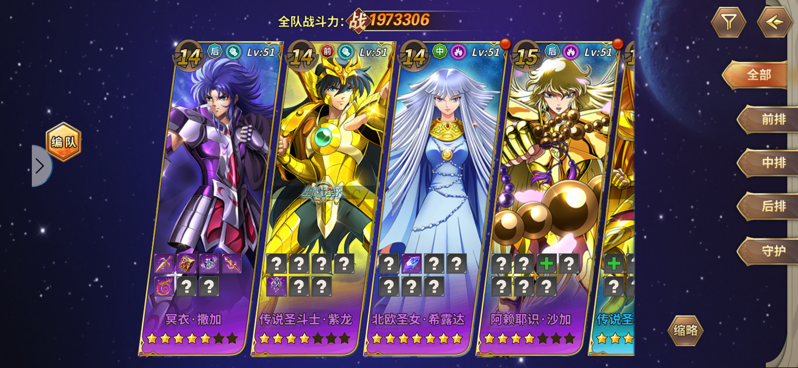 冥撒、传龙、15沙加。开局号