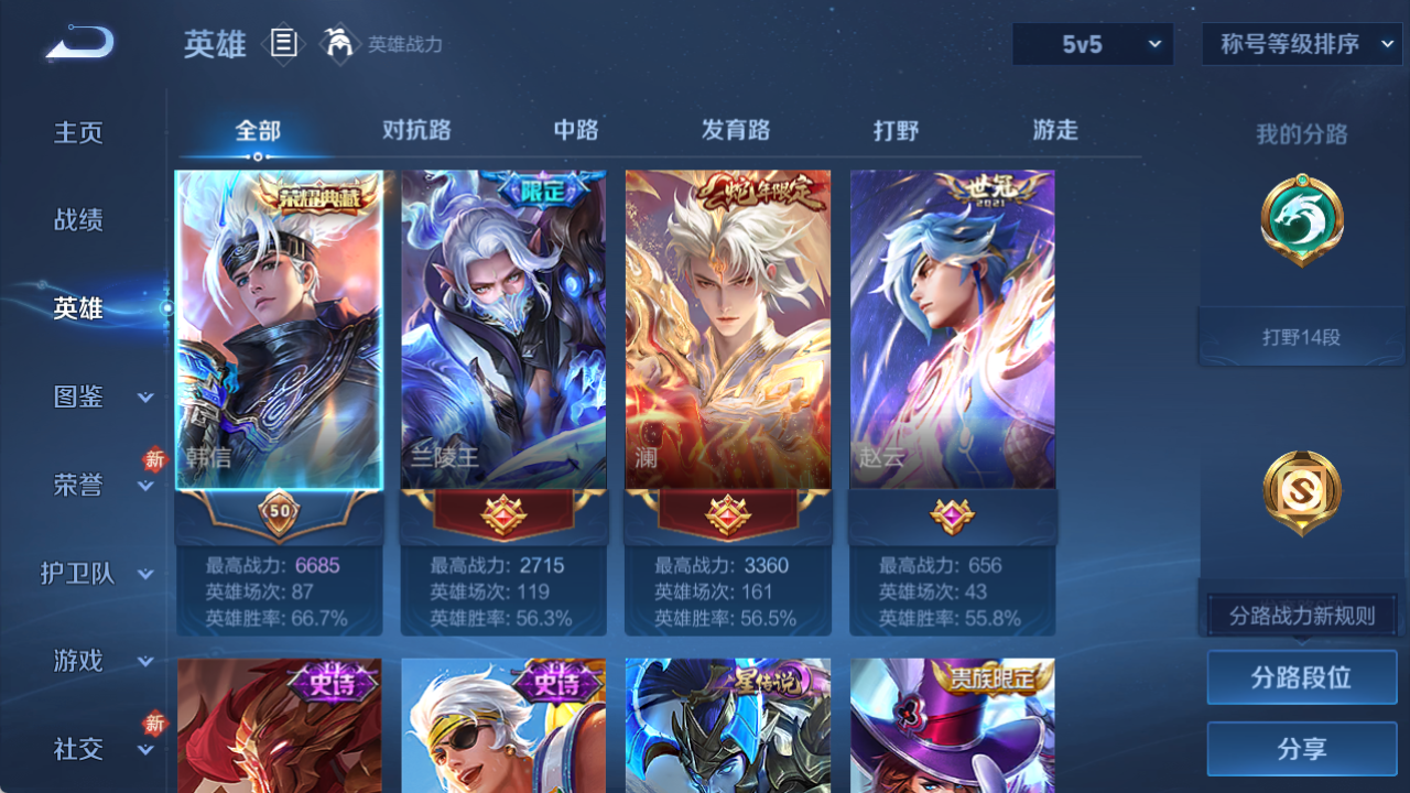 【16285859】[16285859]【精品号手慢无】2.4日后可换绑 低场次V7打野号 典藏弑枪猎影 无双器灵·螭龙剑 10传说 60史诗 影龙天霄 愿照·山河定,愿照·岁时盈,愿照·九州拓 热门限定多多 13按键