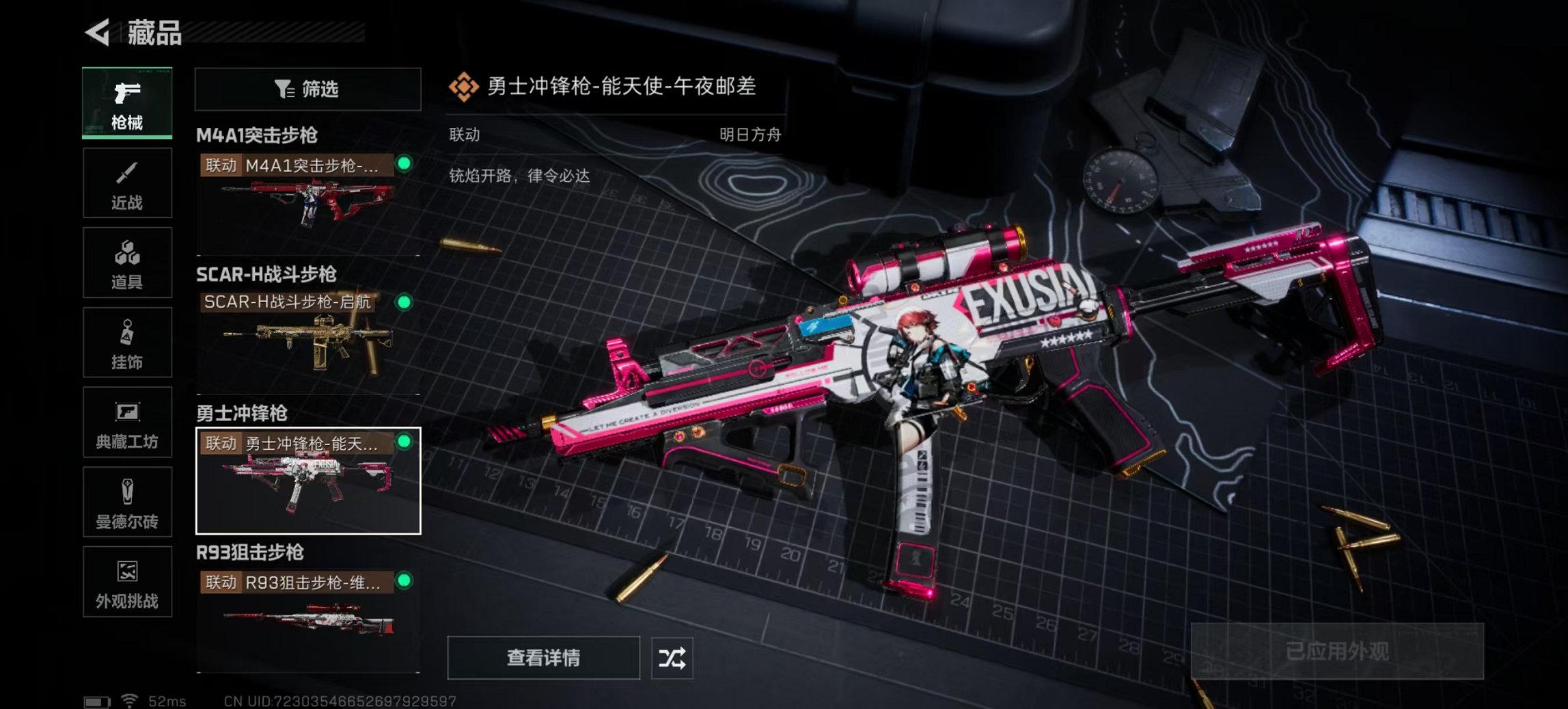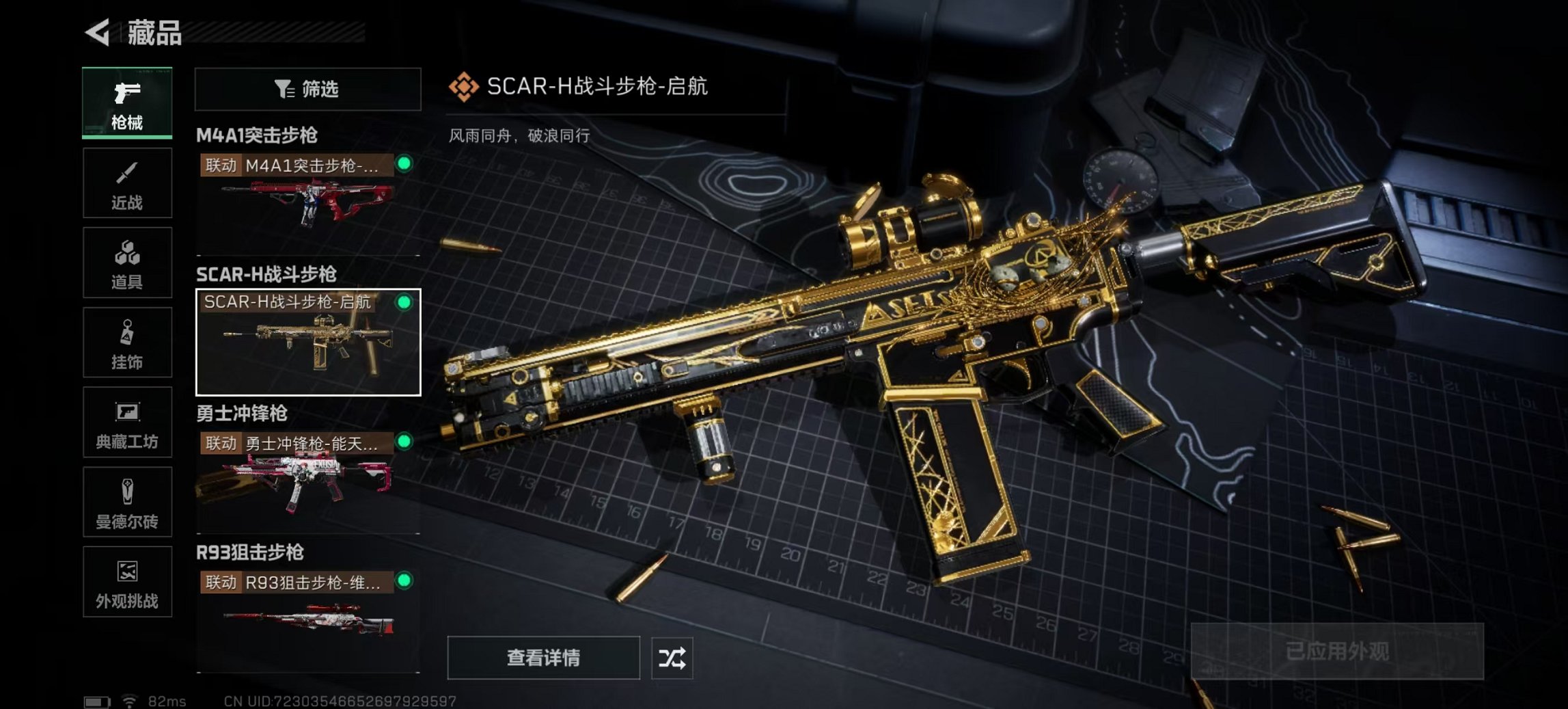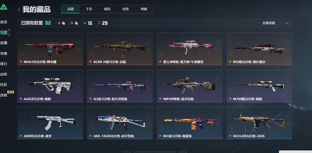 【枪皮】 M4A1突击步枪-高雅黑 M4A1突击步枪-海色 AUG突击步枪-蝮蛇 SCAR-H战斗步枪-荣耀列队 PTR-32突击步枪-黄蜂 M4A1突击步枪-阿