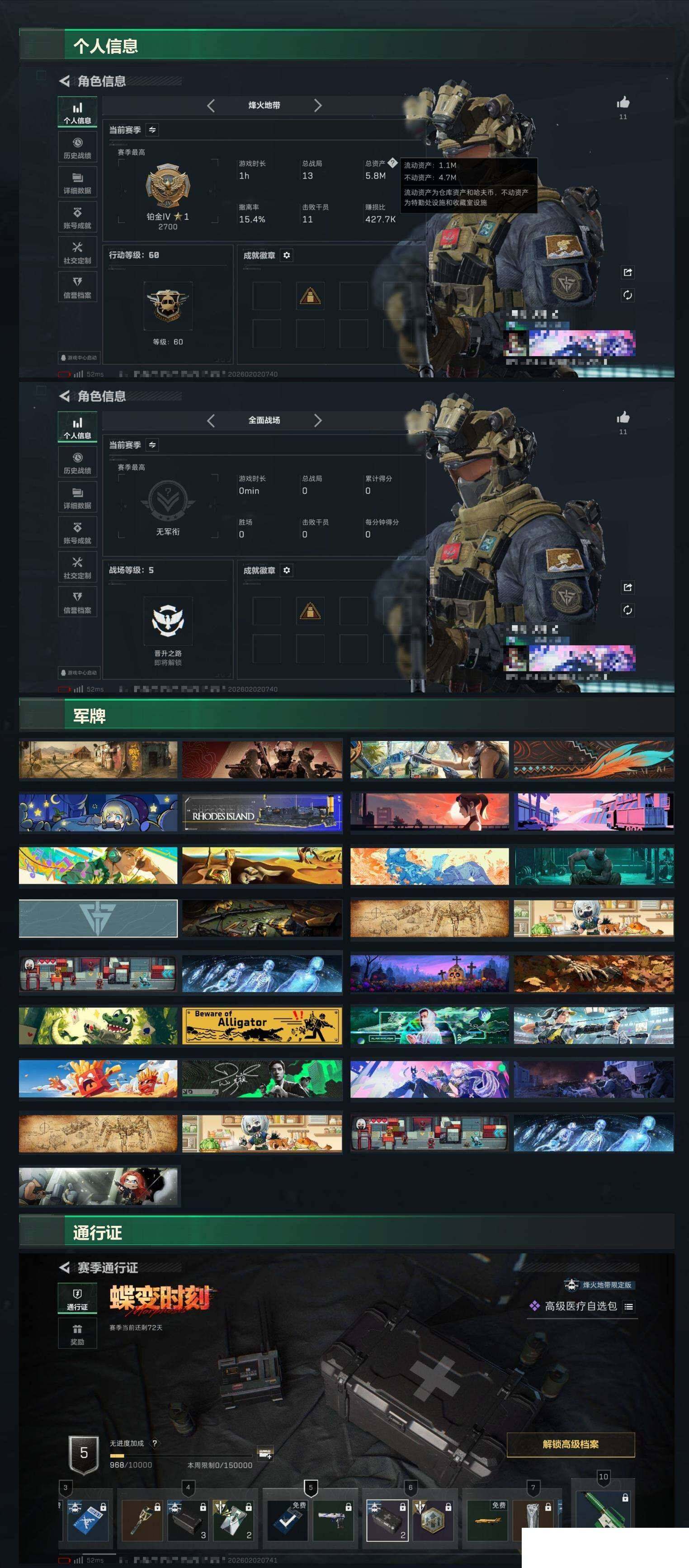 0处罚纯绿单赤霄可二次金皮账号+露娜金皮 精品成品刀皮号 烽火地带段位: 铂金 全面战场段位: 无段位 总资产: 5000000 哈夫币: 115000