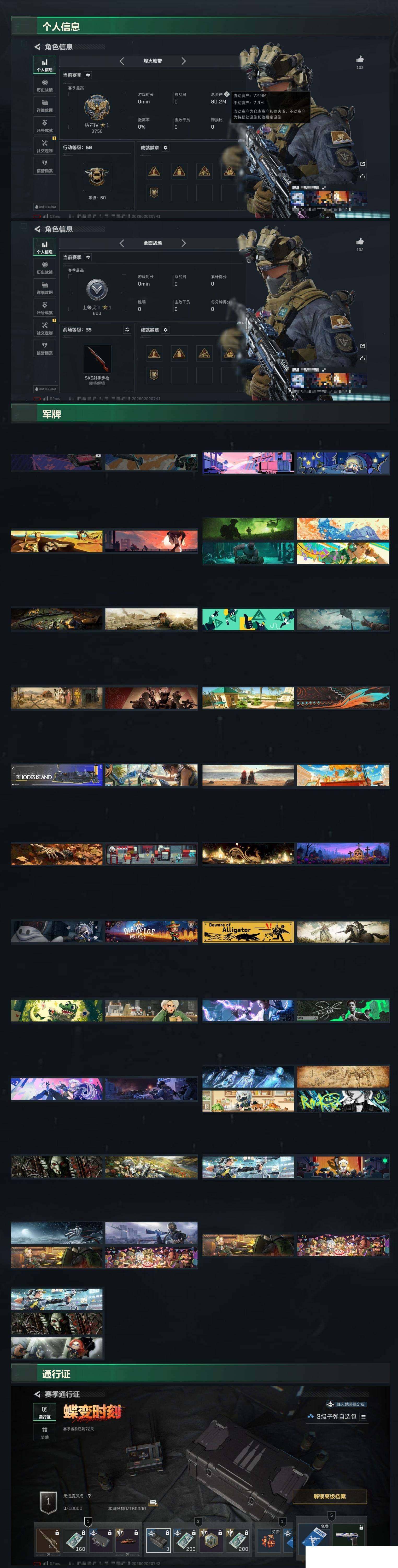 总资产80m 红狼 午夜邮差 信条 烽火地带段位: 钻石 全面战场段位: 上等兵 总资产: 80000000 哈夫币: 42957000