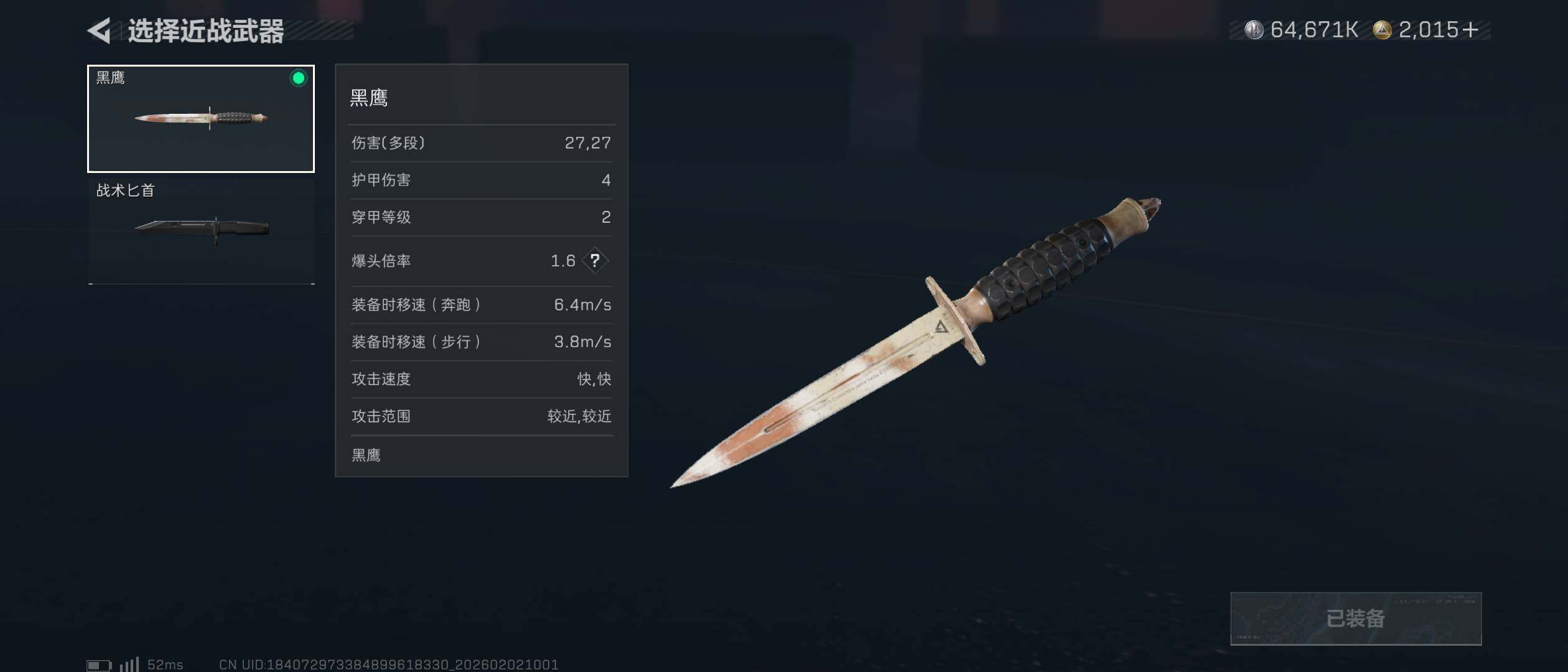 【近战皮肤】:近战-黑鹰