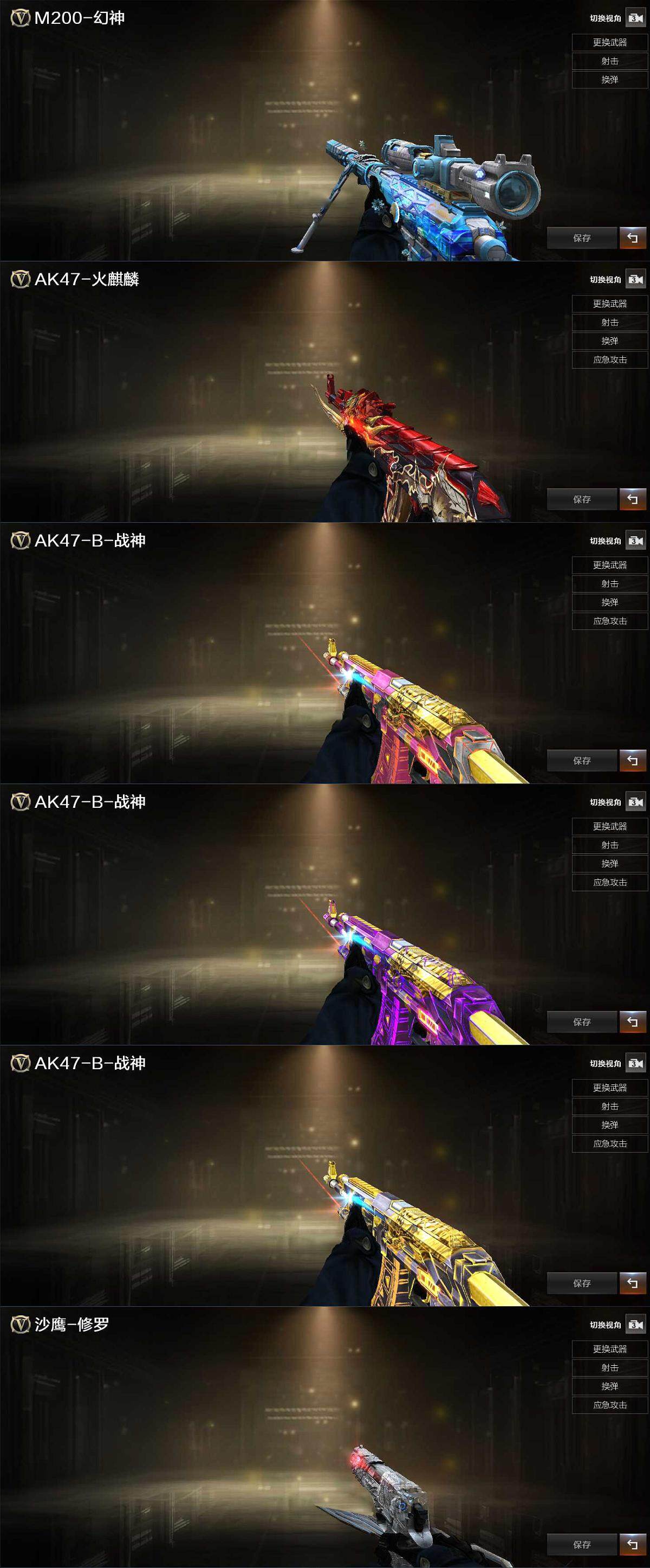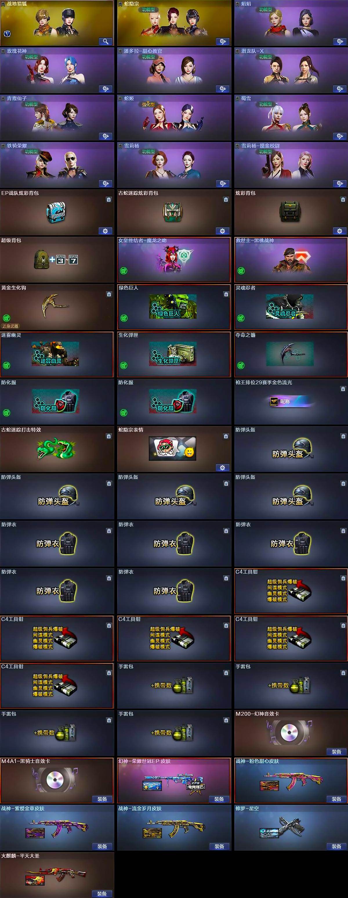 【皮肤】:幻神-荣耀世冠EP 皮肤,火麒麟-平天大圣,战神-粉色甜心皮肤,战神-紫绶金章皮肤,战神-流金岁月皮肤,AK47-B-常胜将军-曹操,A
