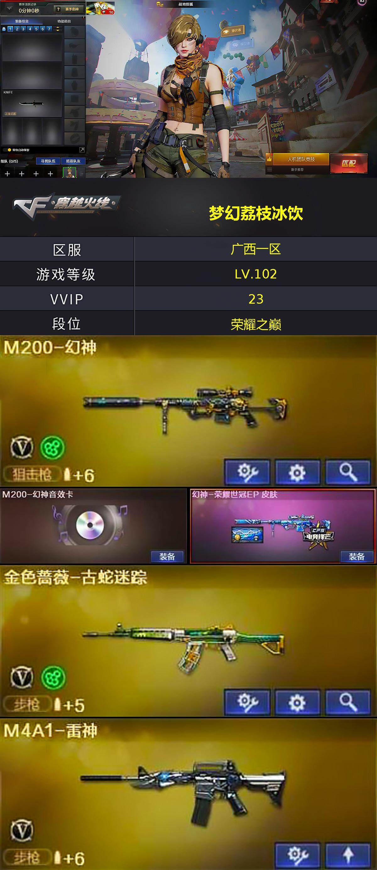 广西一区-20V-5王者-0炫金【热门武器】:HK417-朱雀,M4A1-青