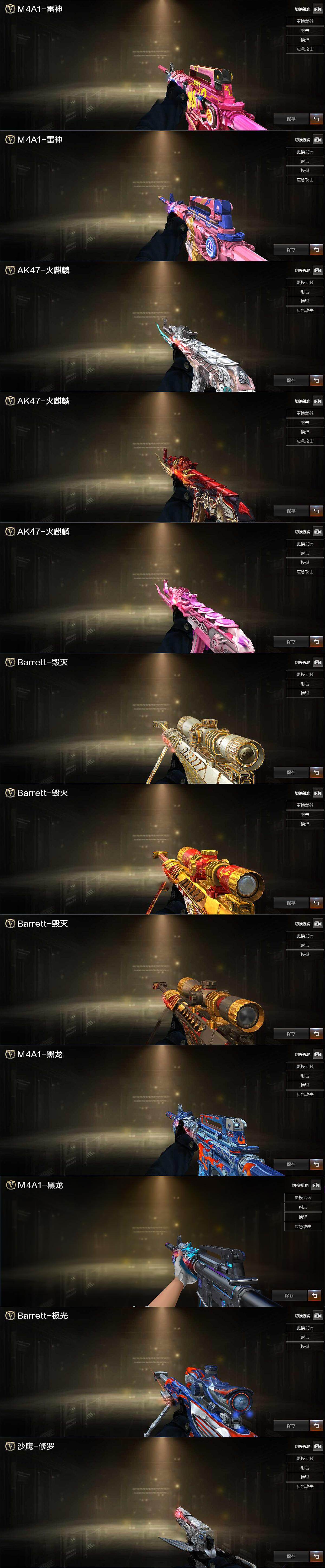 【音效卡】:M4A1-黑龙音效卡*2,Barrett-毁灭音效卡,Barrett-极光音效卡