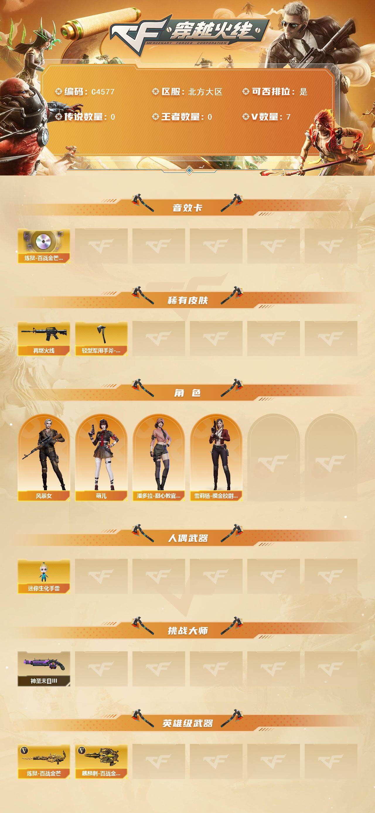 【C4577】北方大区-8V-0王者武器数-0炫金武器数