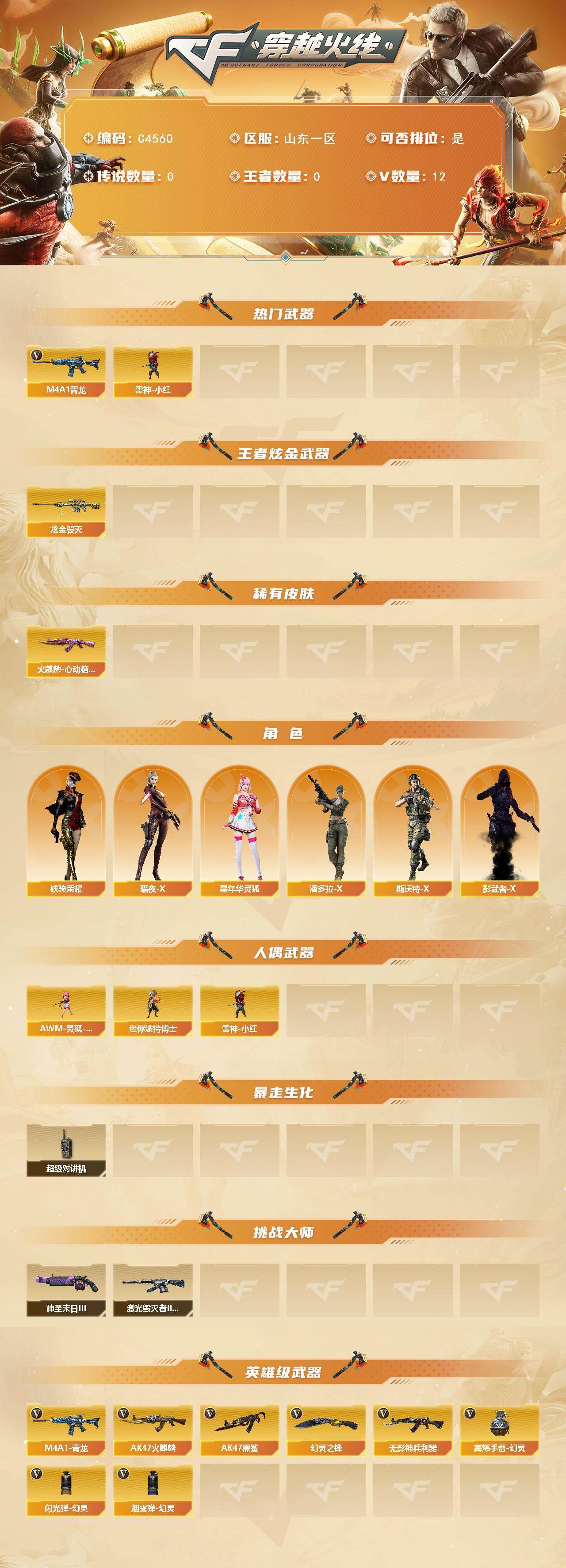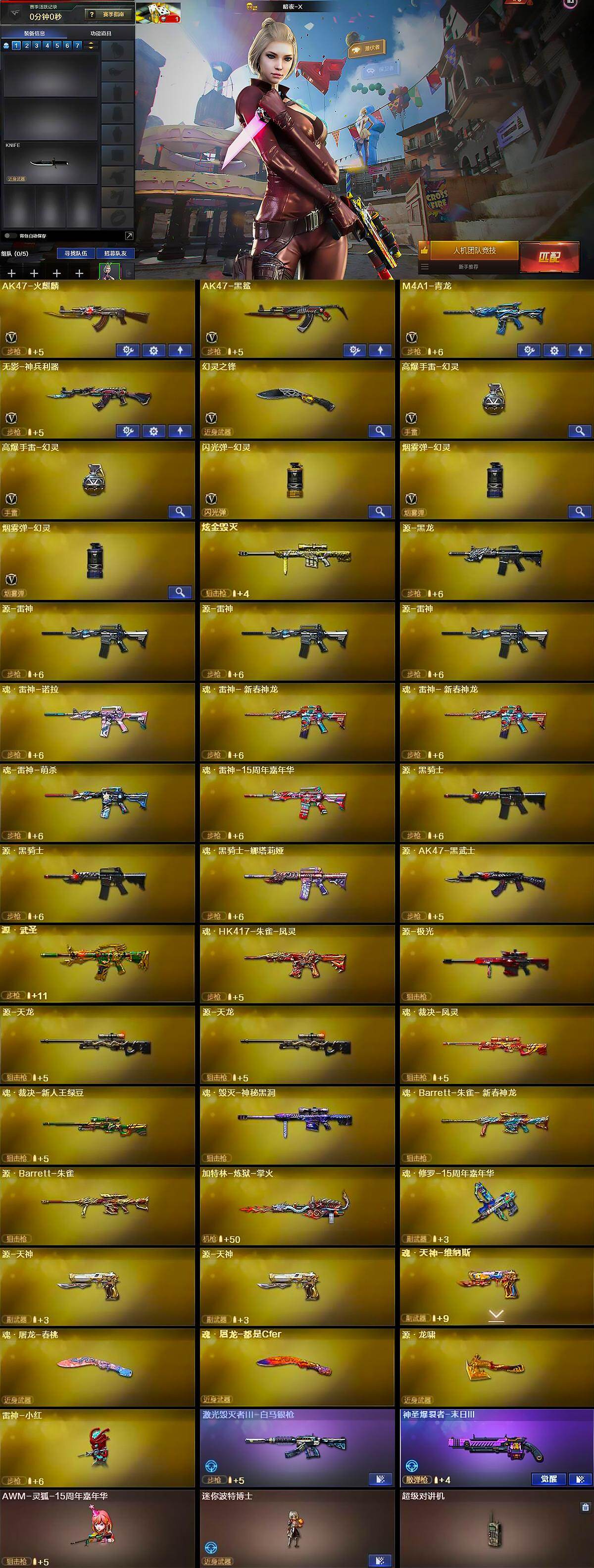 【英雄级武器】:AK47-火麒麟,AK47-黑鲨,M4A1-青龙,无影-神兵利器,幻灵之锋,高爆手雷-幻灵*2,闪