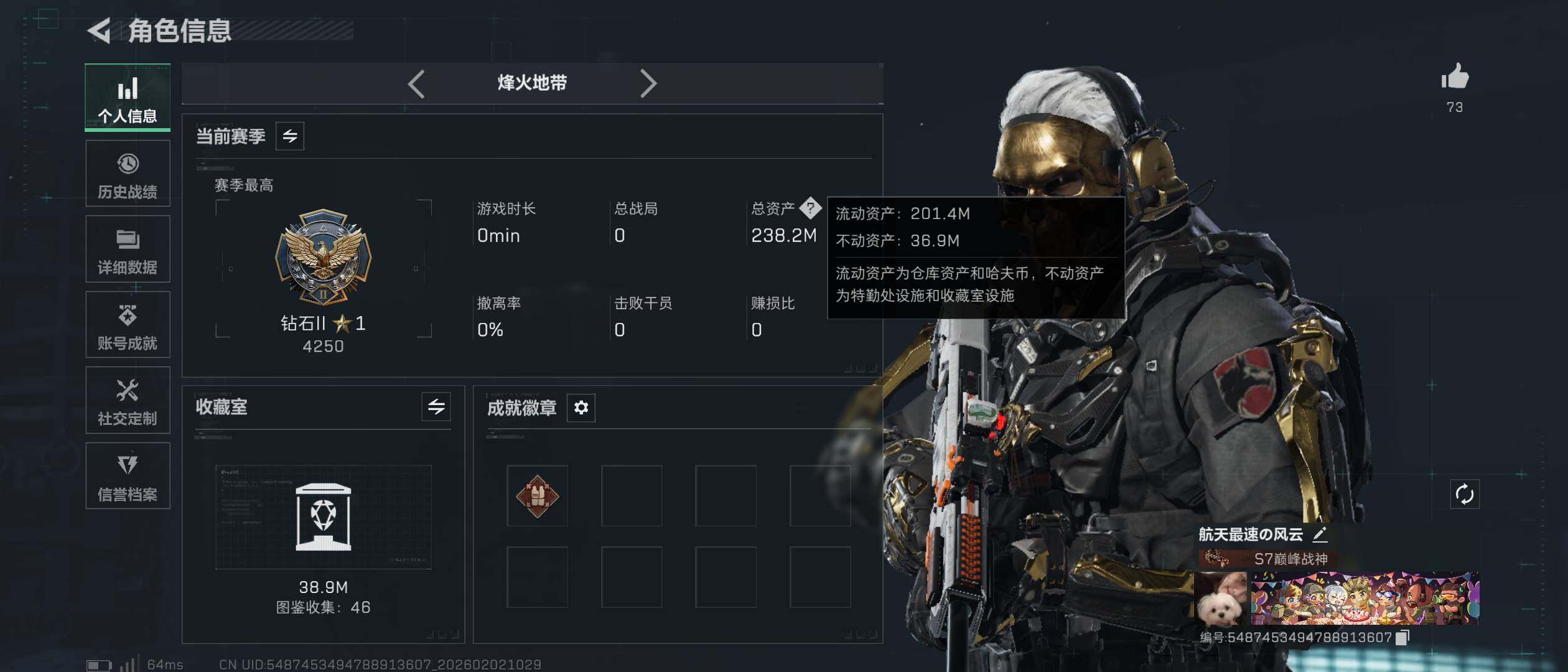 238m总资产-61212k哈伏币-60烽火等级-钻石-11战场等级-列兵【