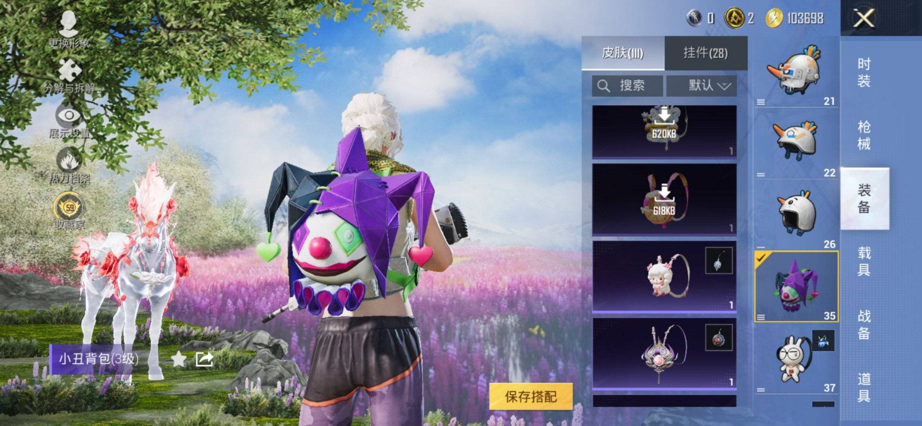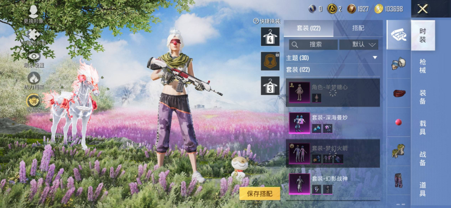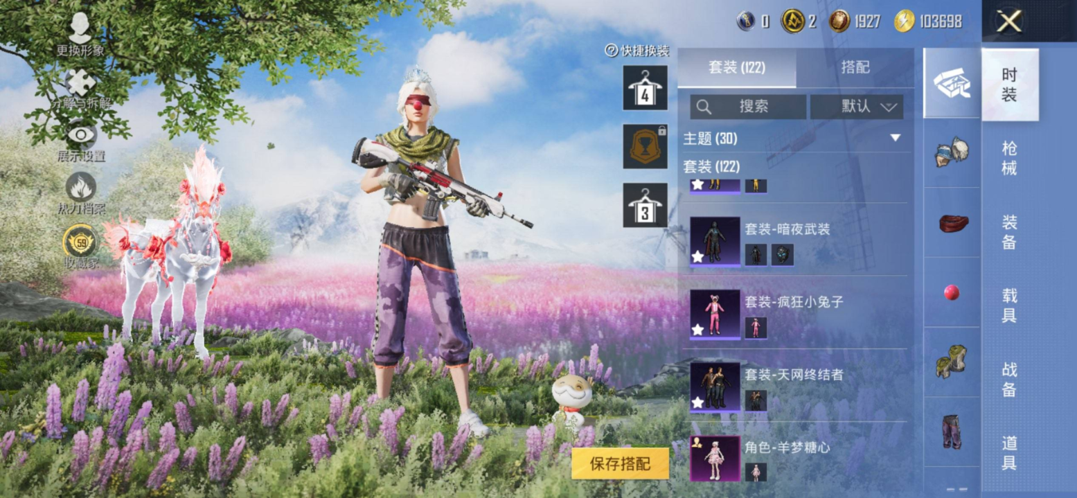 1载具-122套装-153枪皮-苹果手Q/极品小丑冰雪身法号/小熊背包/-4王牌印记-8粉装-6特效枪-1载具-52457热力值-122套装-153枪皮-1卓越印记-1传奇印记