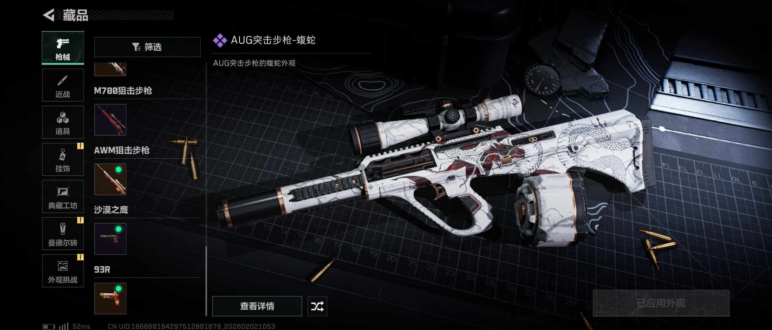 【传说外观】:SCAR-H战斗步枪-启航,G3战斗步枪-骑士,CAR-15突击步枪-阿米娅,腾龙突击步枪-捞点薯条,Vector冲锋枪-能天使-午夜邮差,勇士冲锋枪-能天使-午夜邮差,R93狙击步枪-维什戴尔,AWM狙击步枪-捞点薯条,93R-捞点薯条