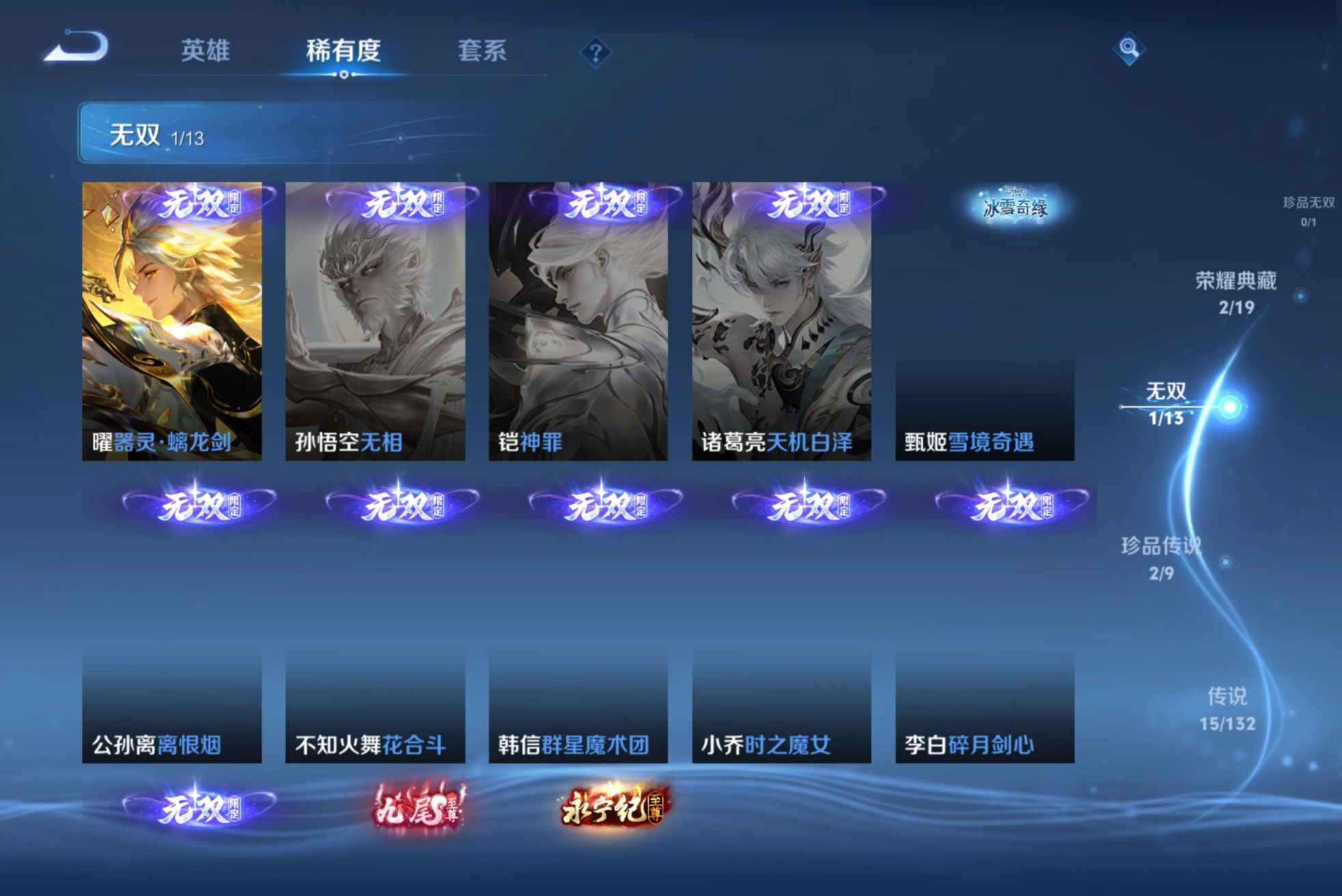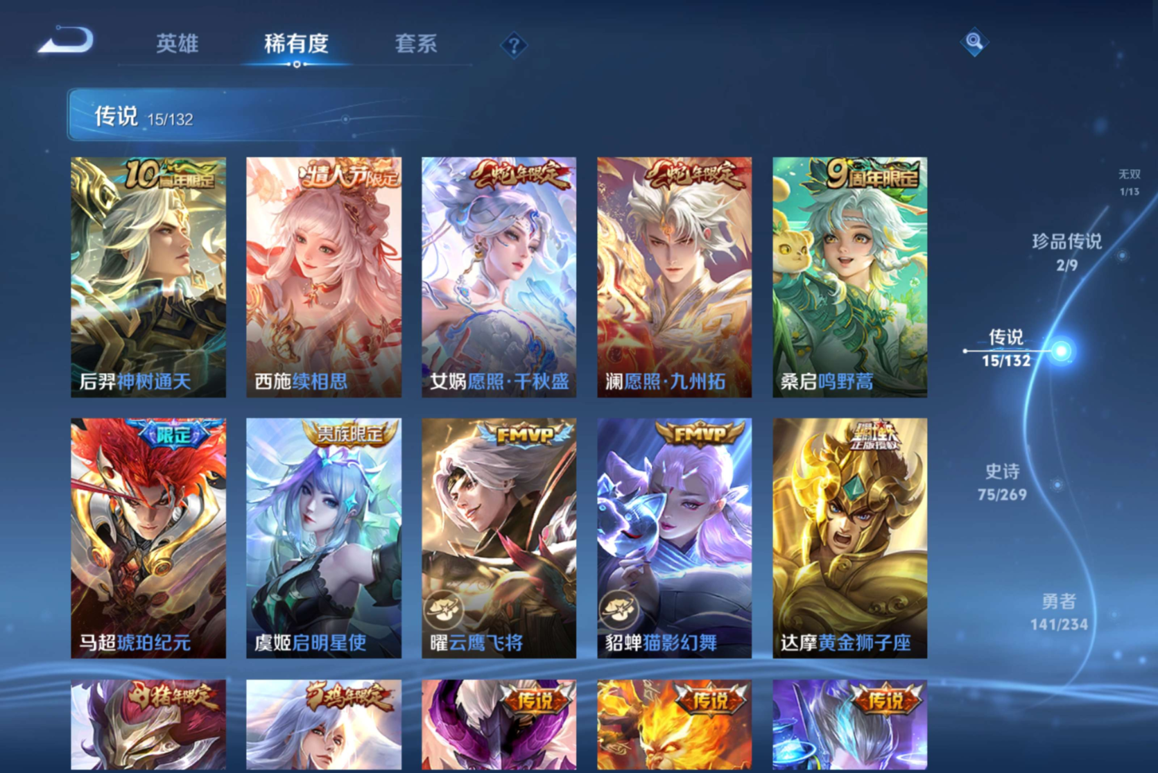 128英雄-290皮肤-安卓QQ 可二次/v8/银白咏叹调 铠,神鉴启示录 虞姬,/白虎志 百里玄策,地狱火 孙悟空,云鹰飞将 曜,凤求凰 李白,猫影幻舞 貂蝉,地狱之眼 宫本武藏,黄金狮子座 达摩,超时空战士 狄仁杰,琥珀纪元 马超,愿照·九州拓 澜,神树通天 后羿,愿照·千秋盛 女娲,鸣野蒿 桑启,续相思 西施,/最强王者/290皮肤/128英雄/2典藏/0珍品无双/1无双/2珍品传说/1