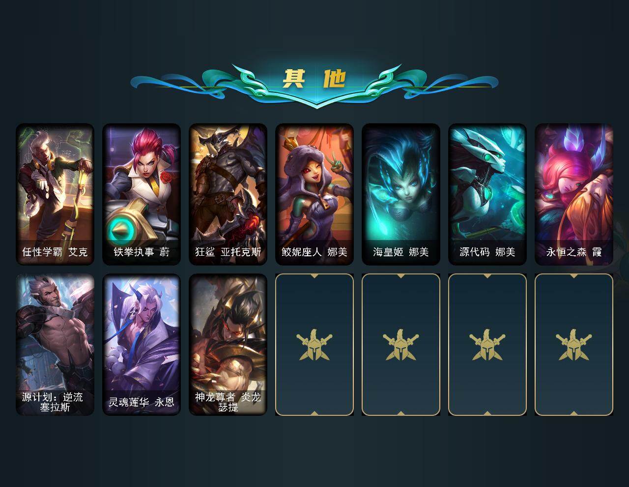 【LOLYH1190】172英雄/373皮肤/1终极/4神话/85限定/5臻彩/125炫彩/36传说/97史诗/黄金/十周年纪念安妮/源代码乐芙兰/十五周年纪念希维尔/海克斯科技雷克顿/红包头像/泳池派对凯特琳粉红冰川/玉剑传说琴仙子丁香/山海绘卷科加斯朱红/霸天异形卡兹克丛林灾厄/碧玉之牙卡西奥佩娅/神龙烈焰金克丝/美猴王孙悟空/春晖神女拉克丝/觅心猎手薇恩/幸福女神乐芙兰/圣诞开心鬼提莫/圣诞精灵崔丝塔娜/圣诞狂欢努努和威朗普/圣诞糖果棒厄运小姐/胡桃夹子萨科/平安夜女神娑娜/邪恶圣诞老人维