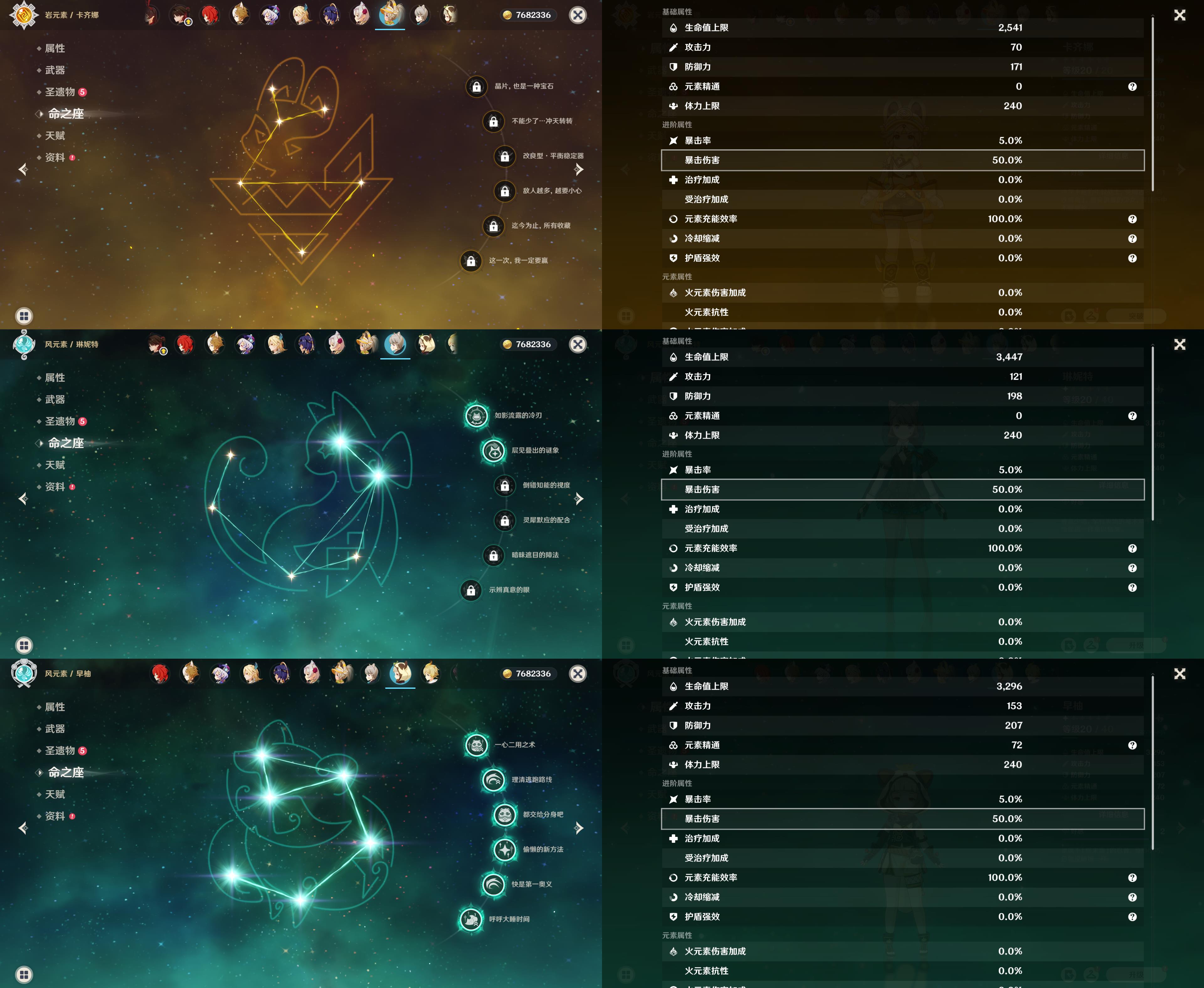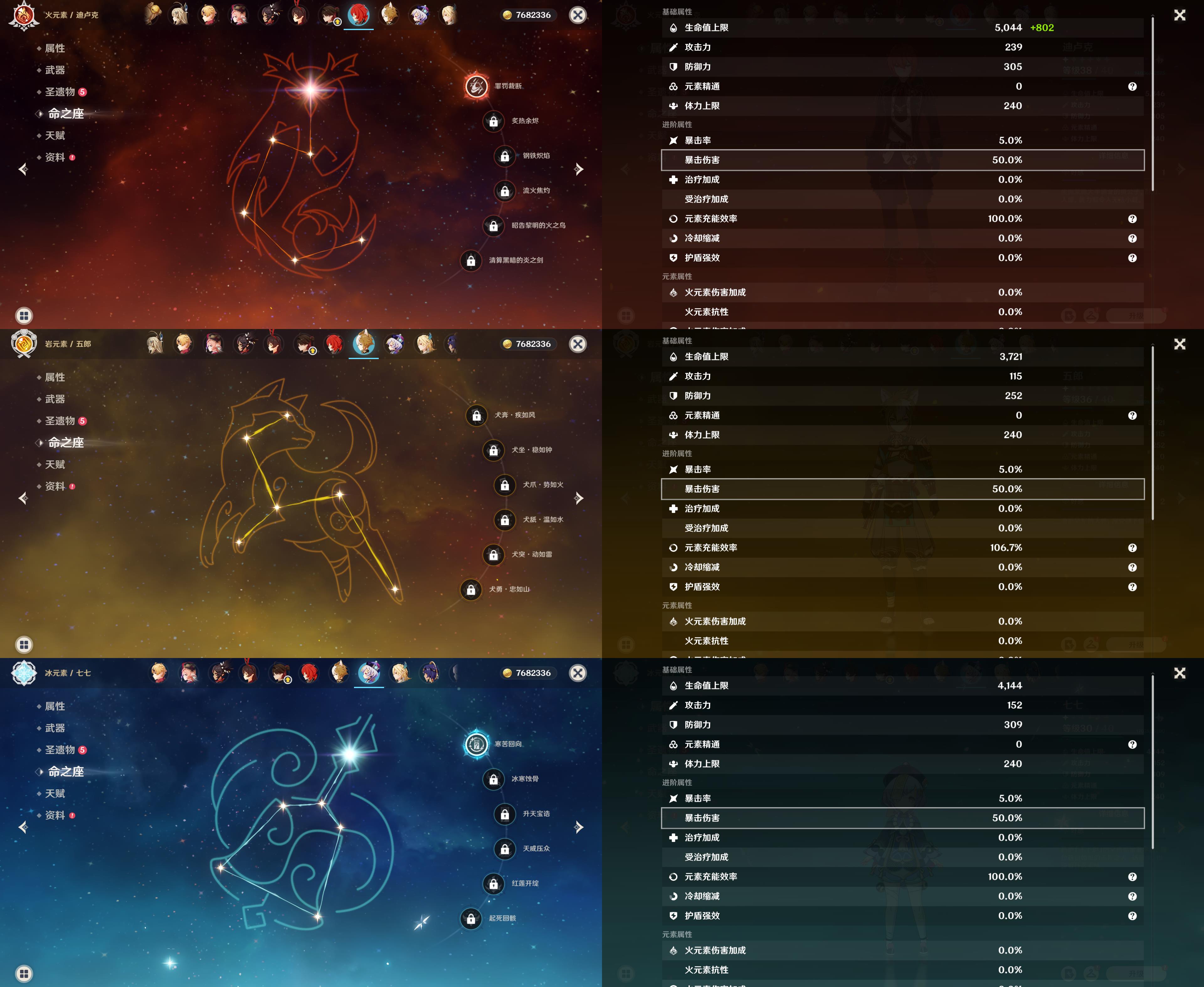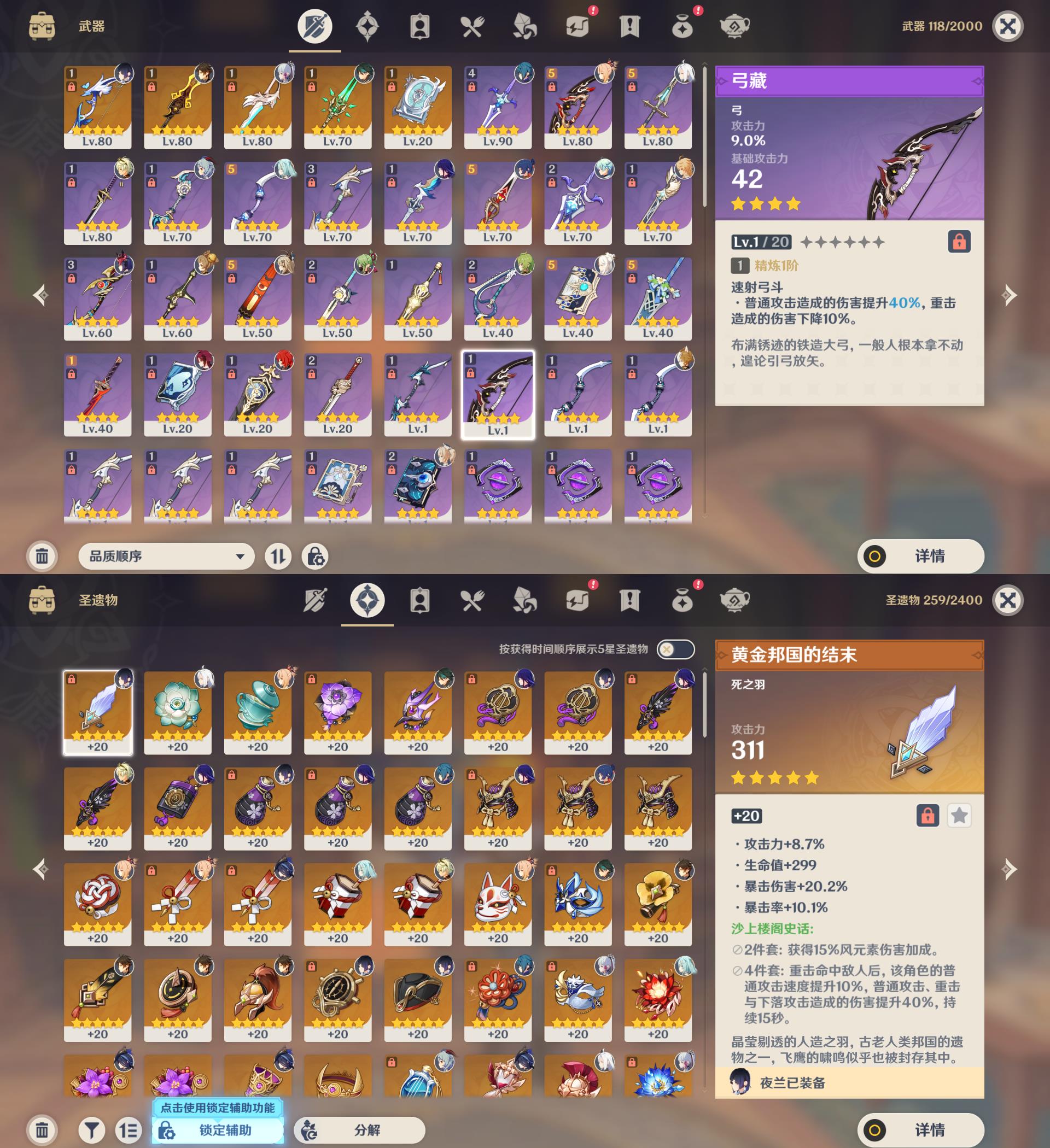 57级/20黄/女主/13个五星角色/5个五星武器/