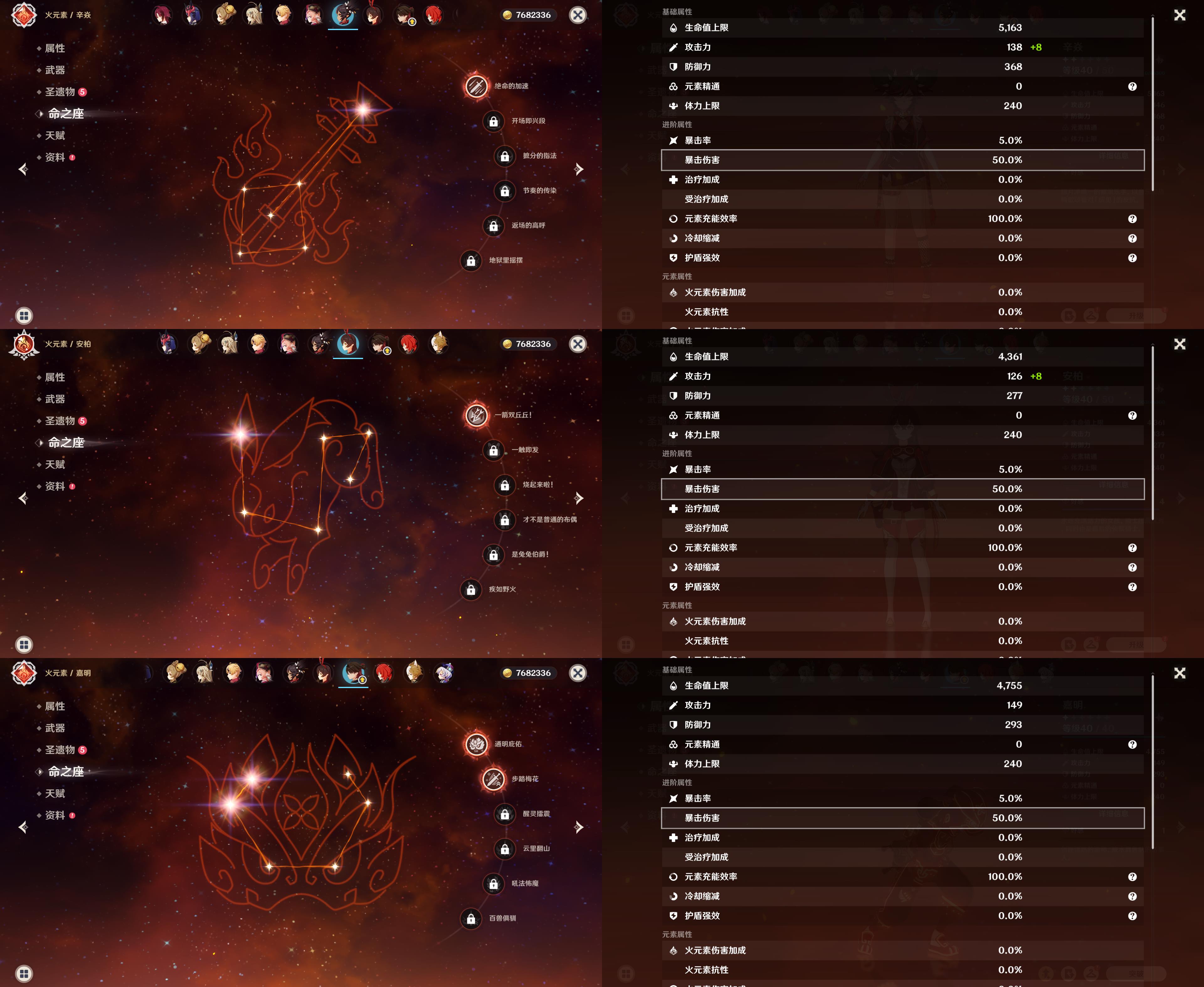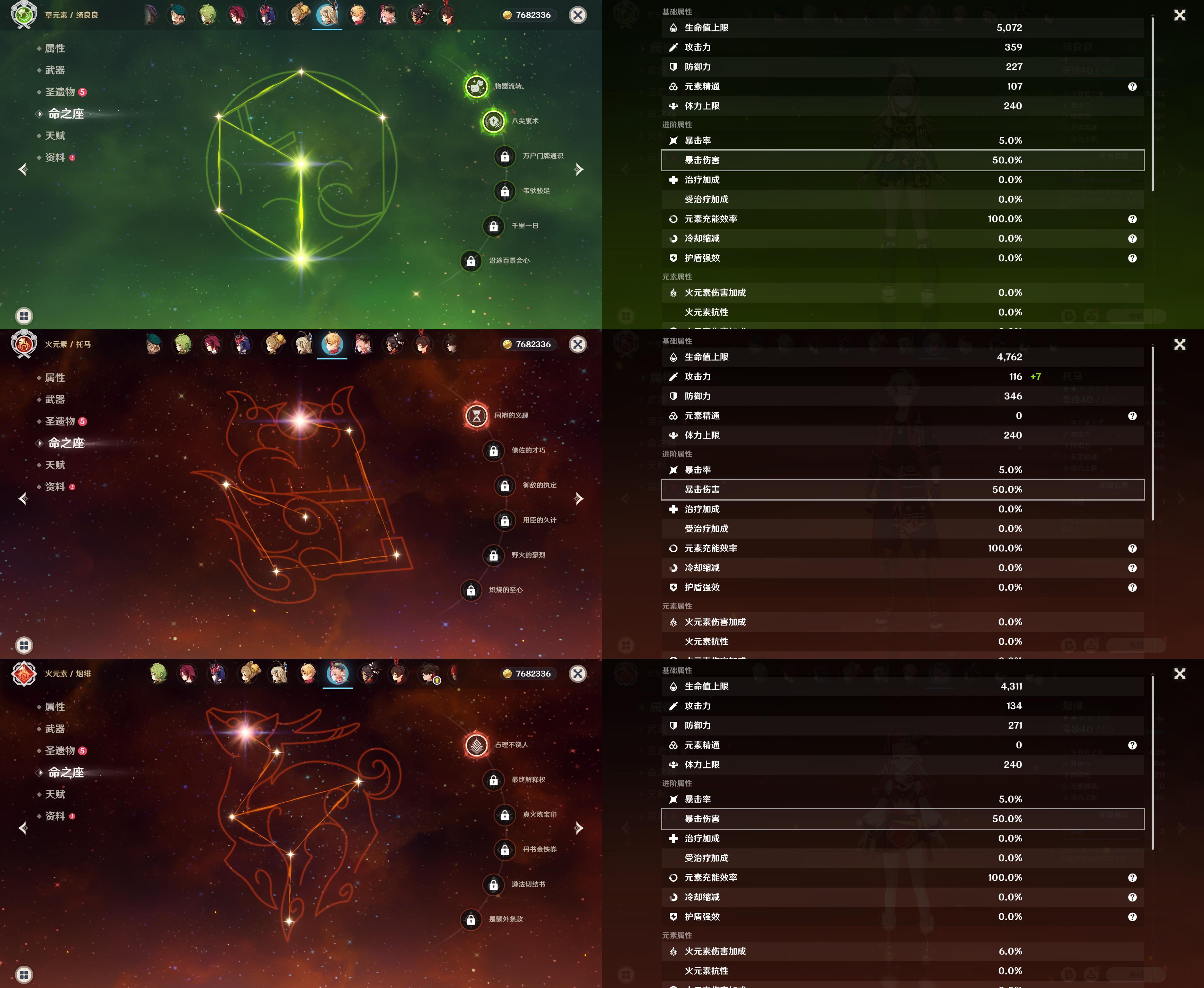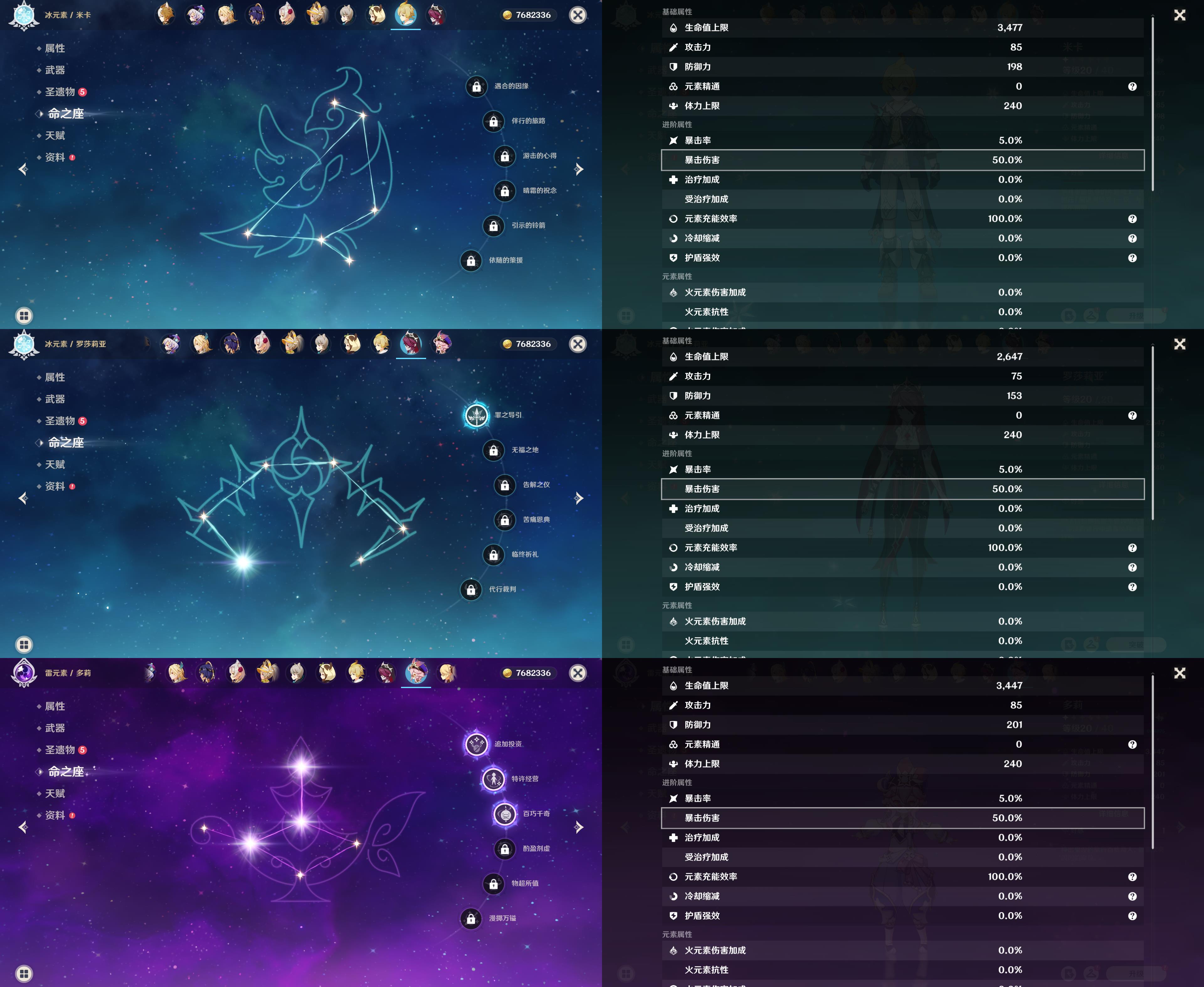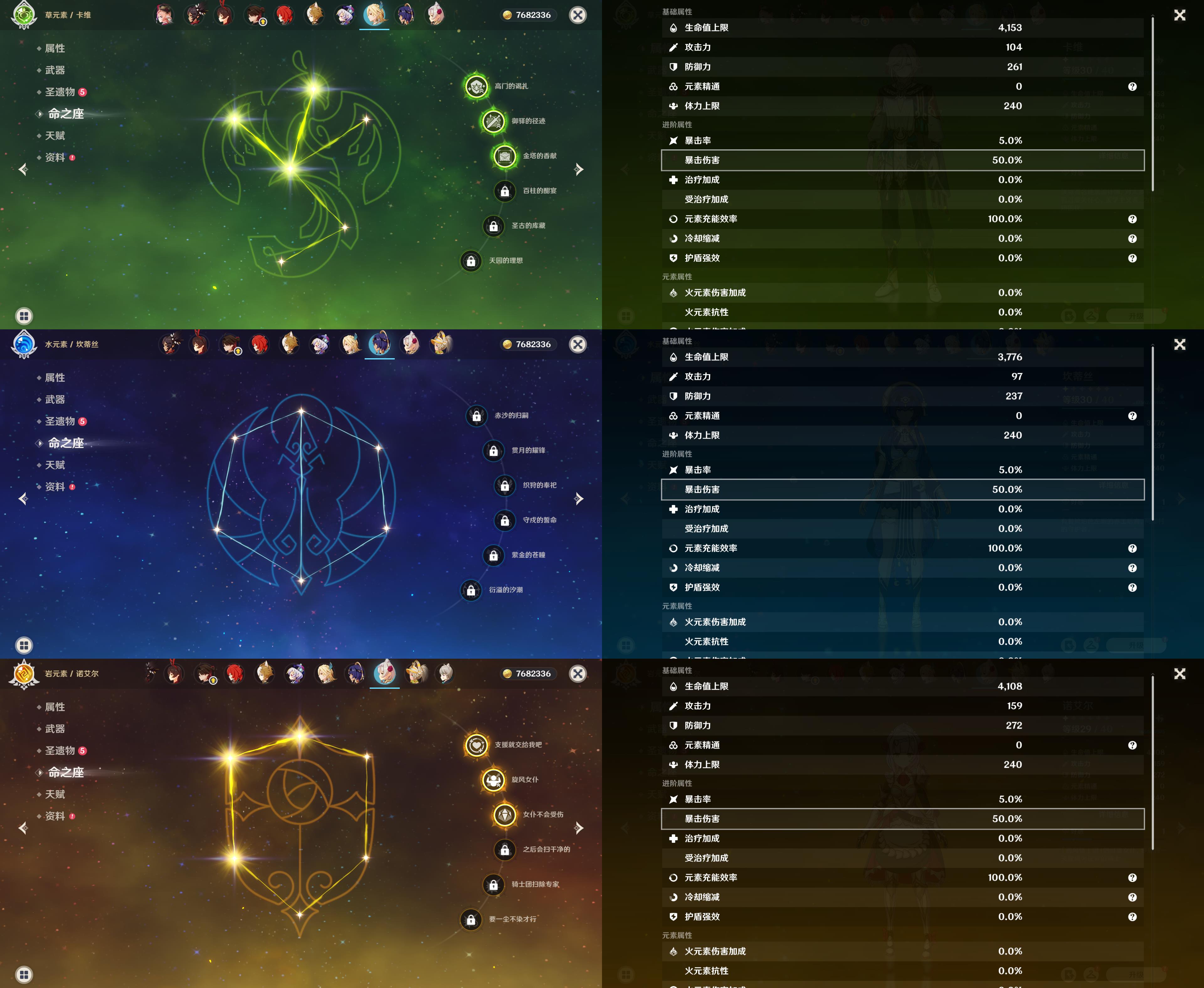 57级/20黄/女主/13个五星角色/5个五星武器/