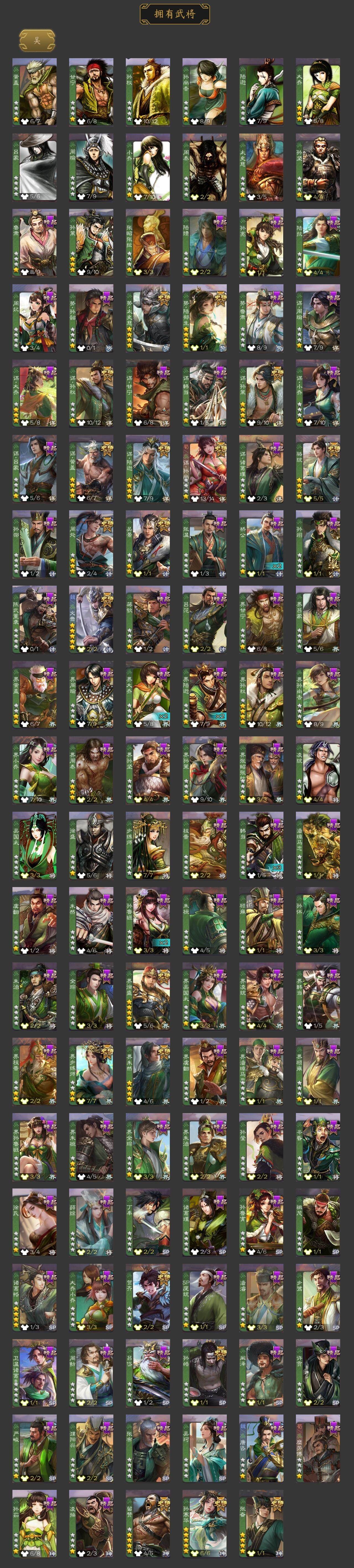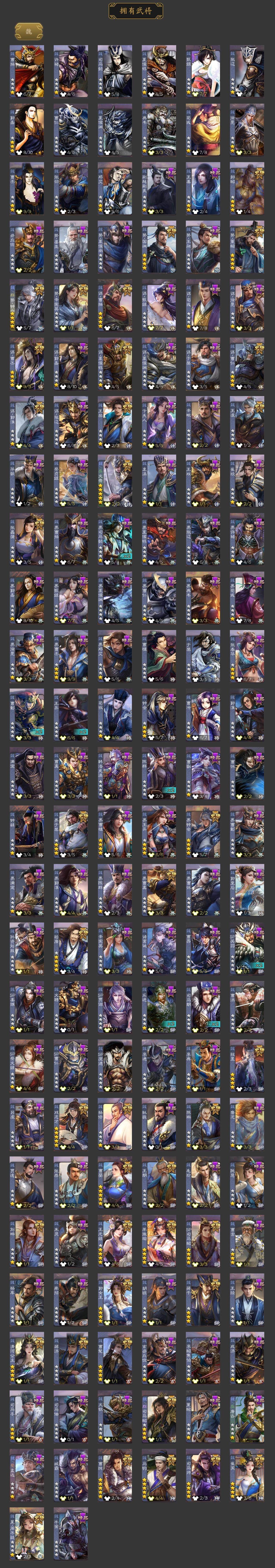 神曹操,神吕布,神赵云,神司马懿,神陆逊,神刘备,神甘宁,神张辽,神郭嘉,神太史慈,神孙策,神荀彧,神华佗,神诸葛亮,神鲁肃,SP司马昭,曹髦,郭女王,星周不疑,谋曹