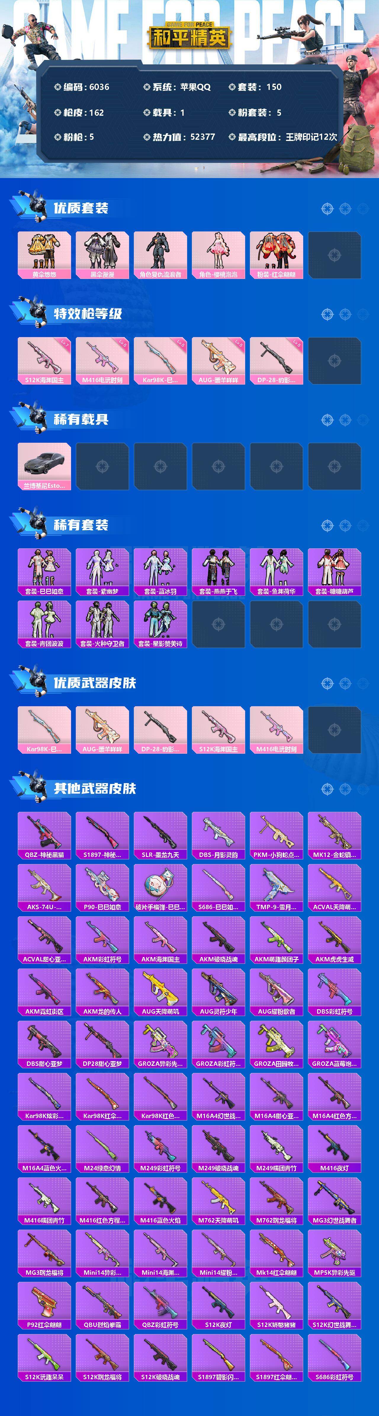 【6036】5粉装-5特效枪-1载具-52377热力值-12印记-150套装-162枪皮