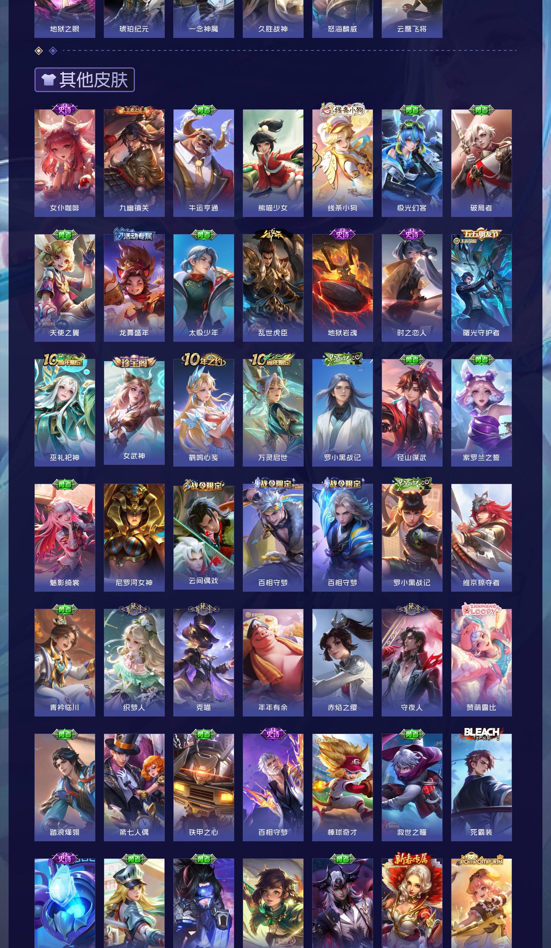 V7 皮肤257 英雄126 至尊星耀 荣耀典藏1 无双皮肤1 珍品传说1 传说13 其他皮肤246