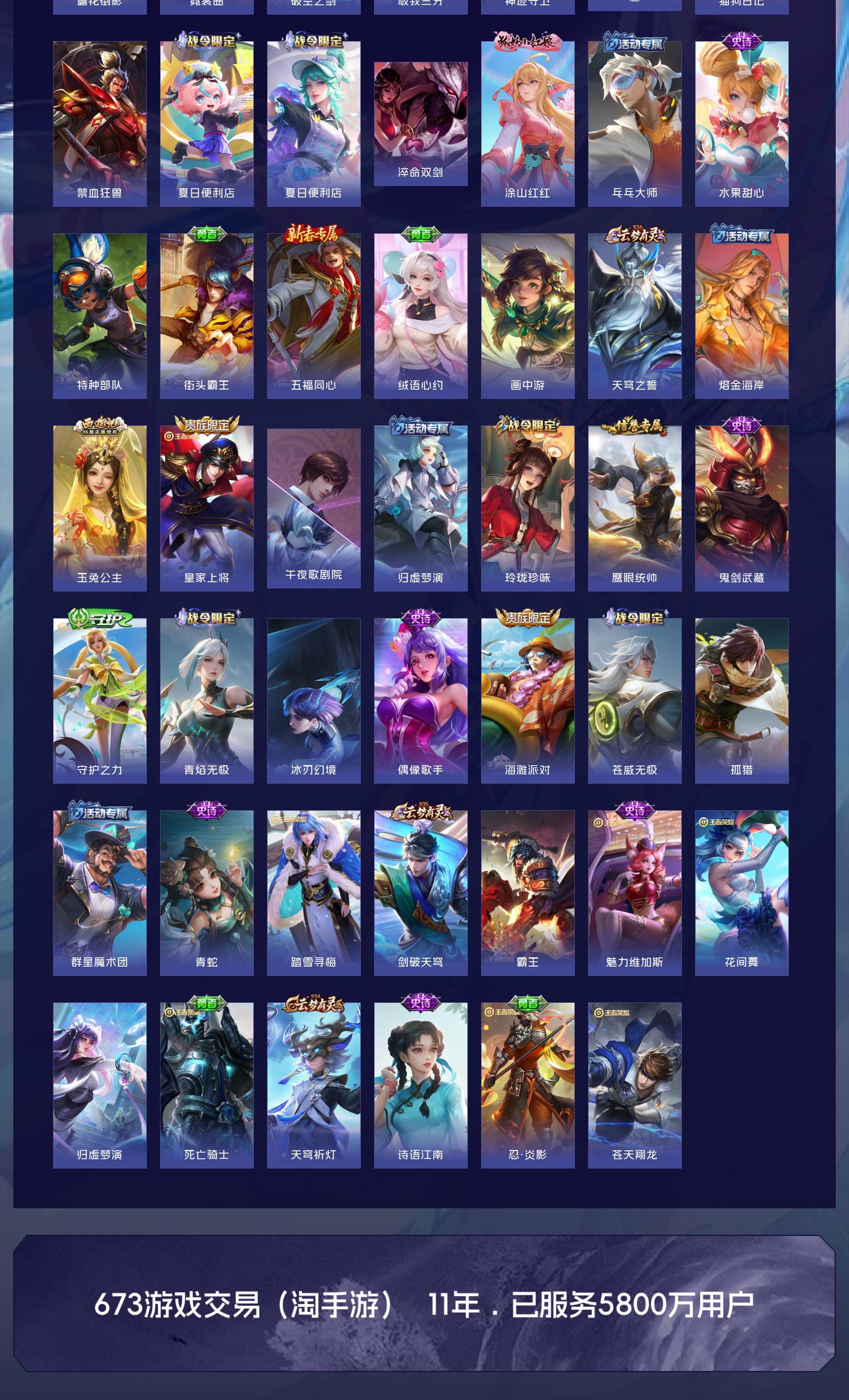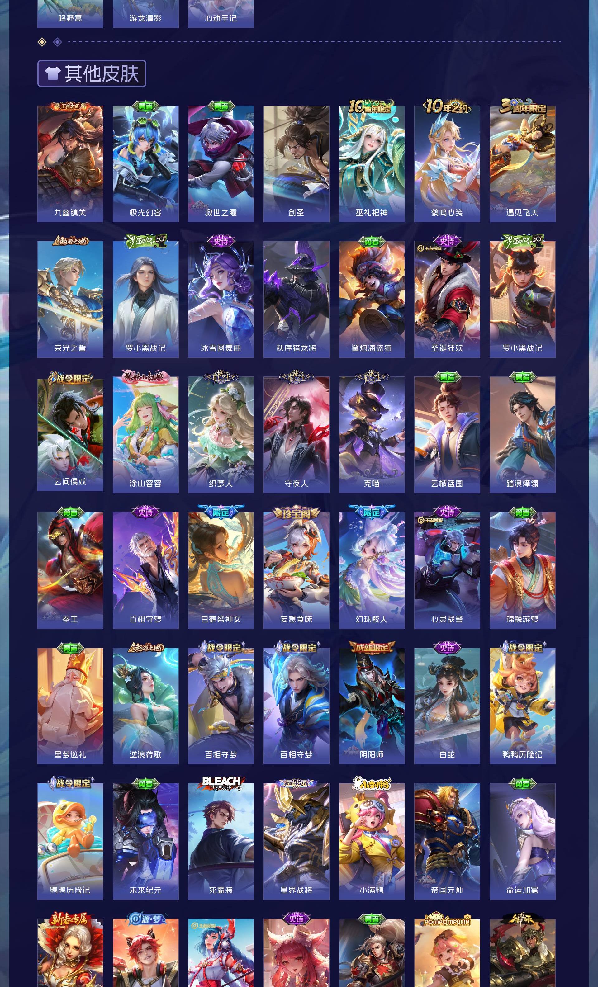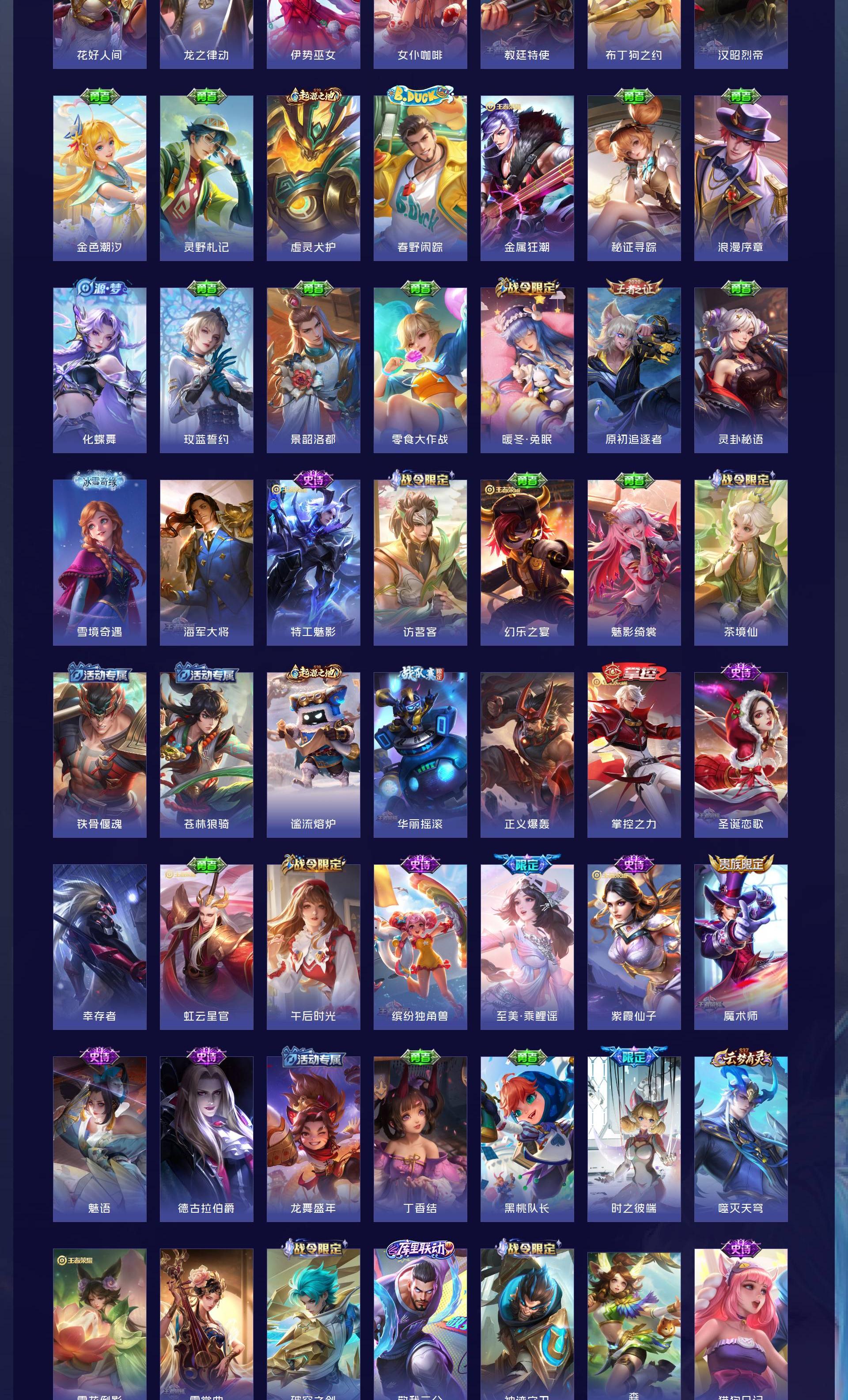 V7 皮肤154 英雄118 永恒钻石 无双皮肤2 珍品传说2 传说17 其他皮肤139