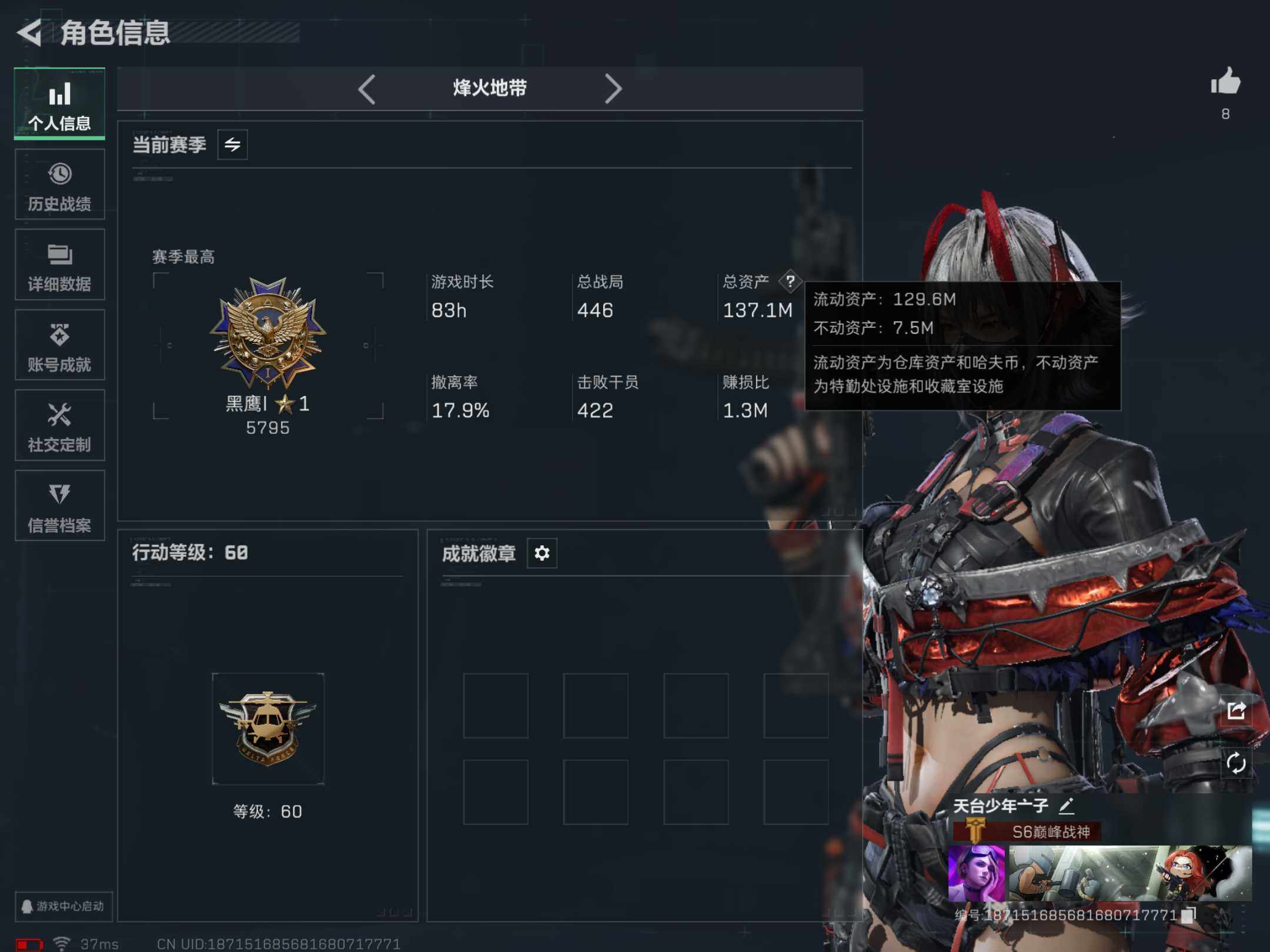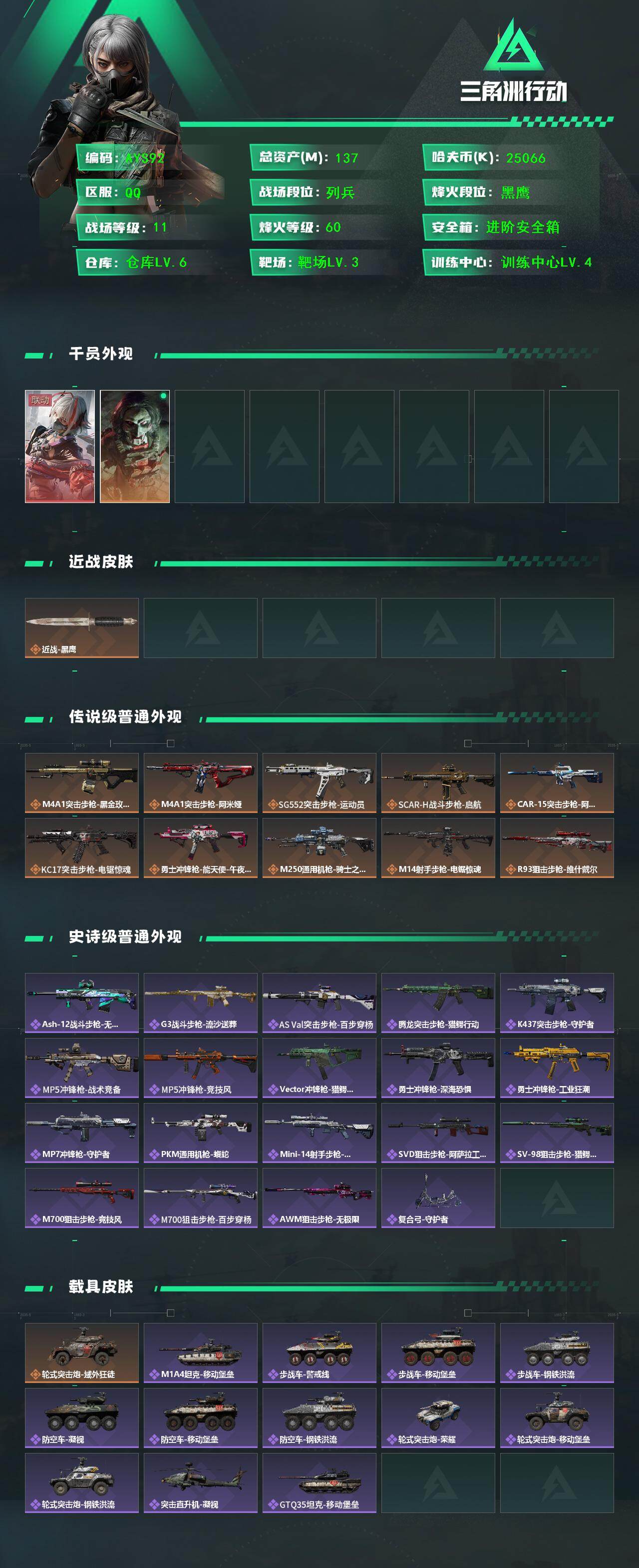 25066k哈伏币-129m流动资产-60烽火等级-黑鹰-11战场等级-列兵