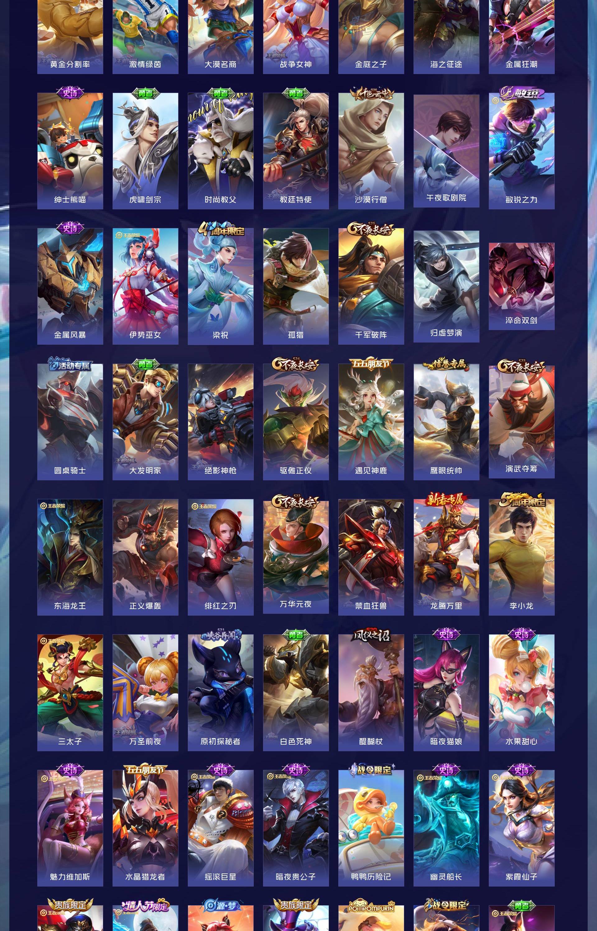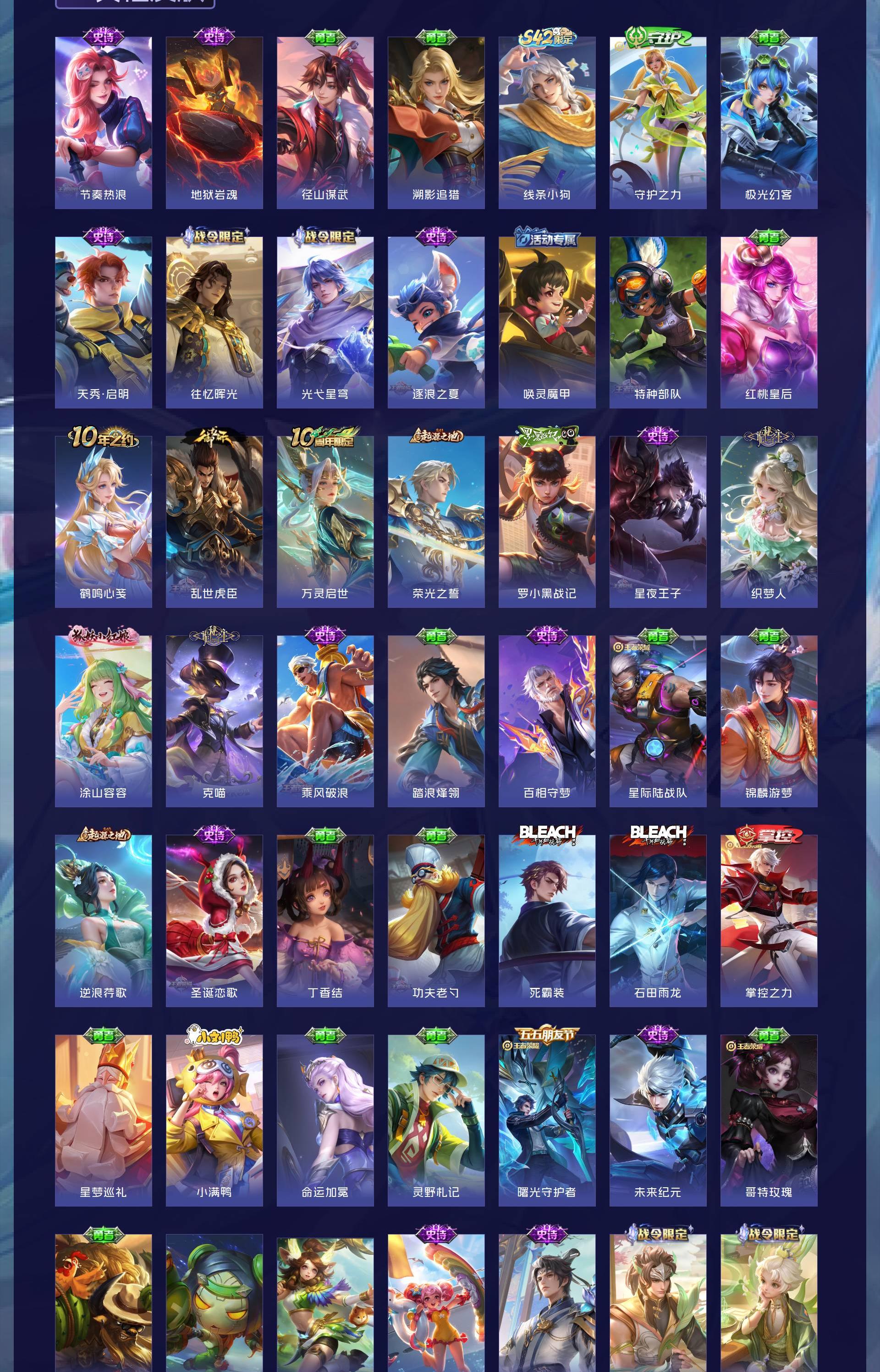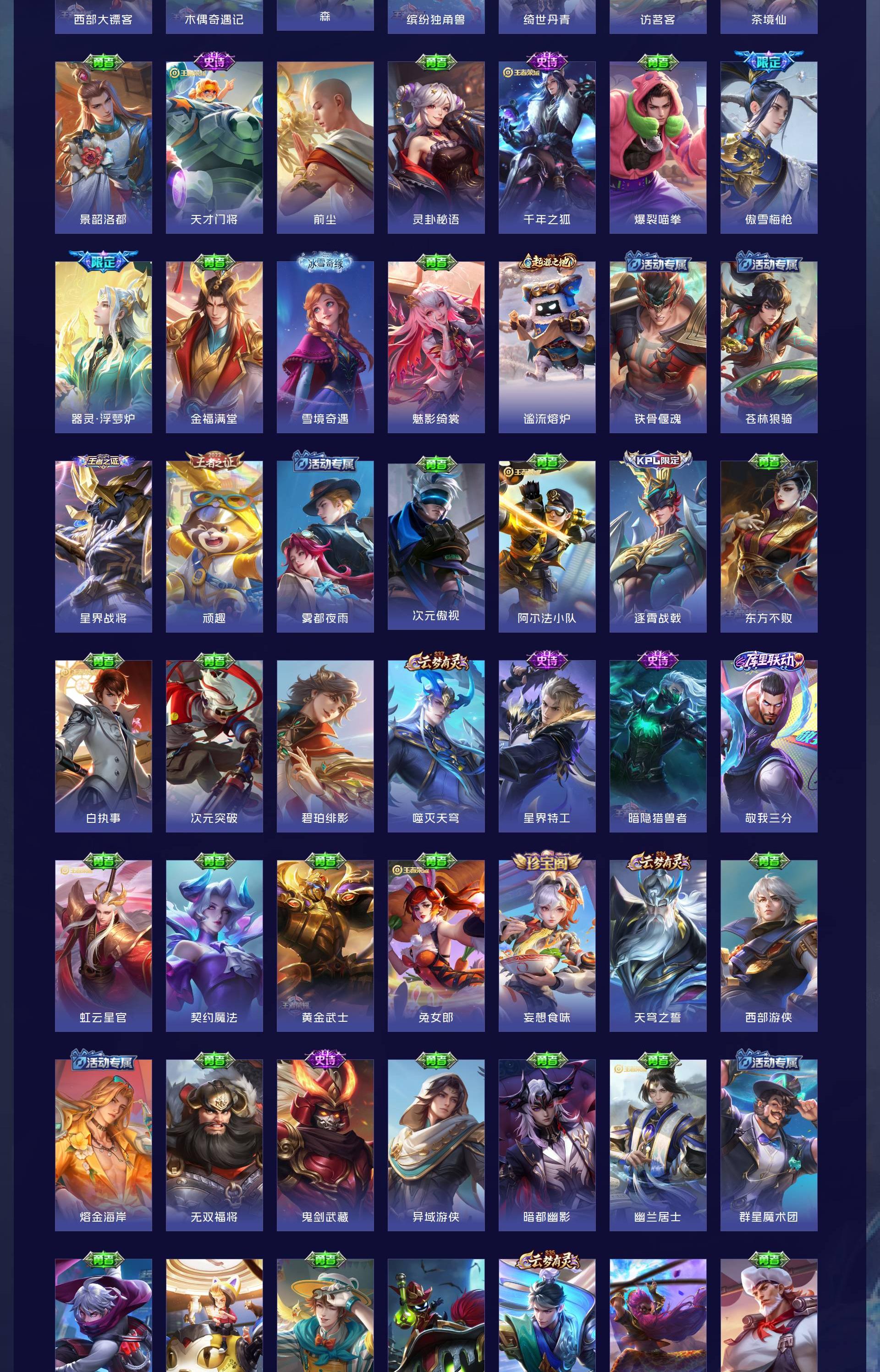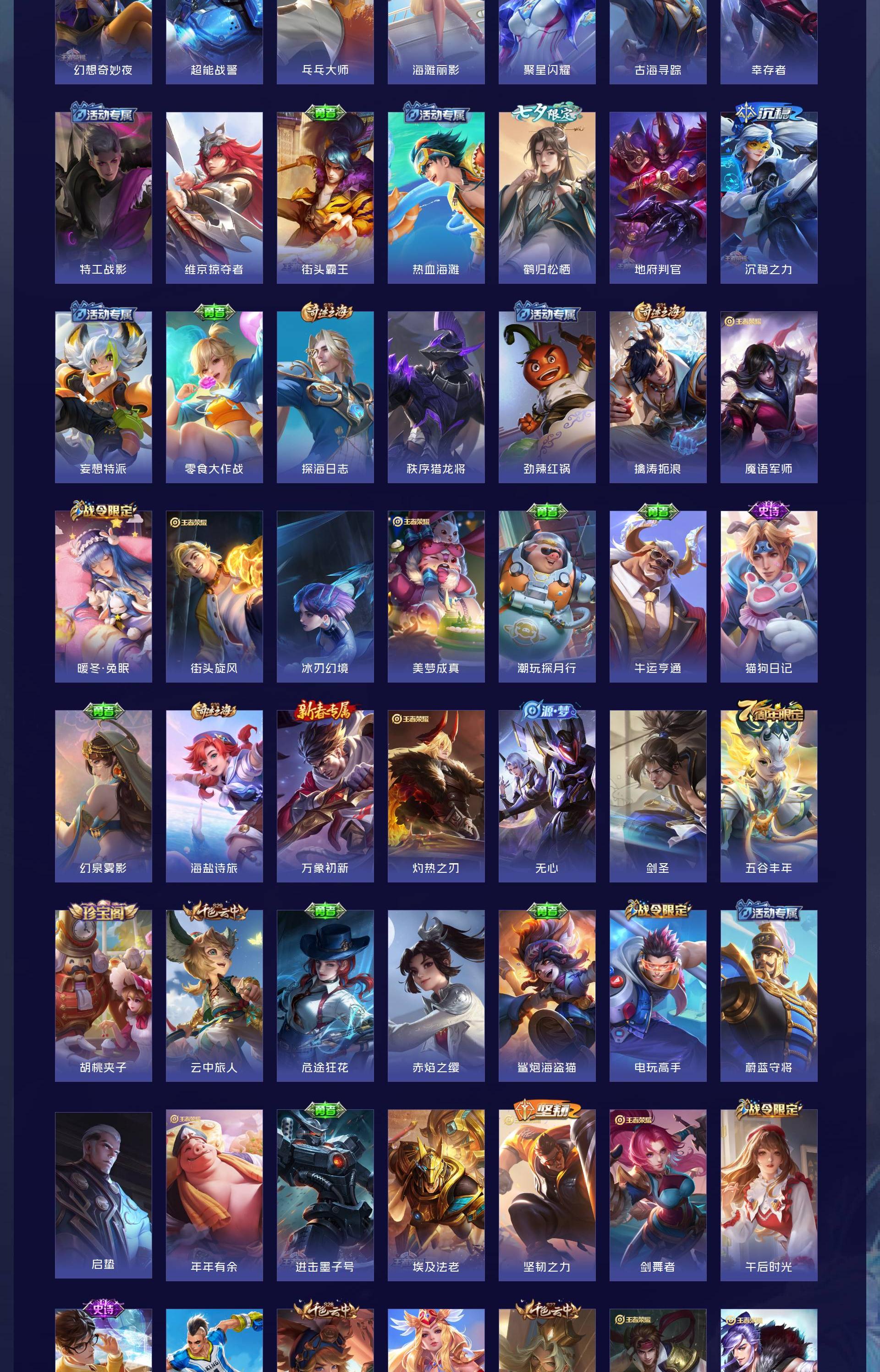 V8 皮肤287 英雄128 最强王者 荣耀典藏1 无双皮肤2 传说14 其他皮肤276