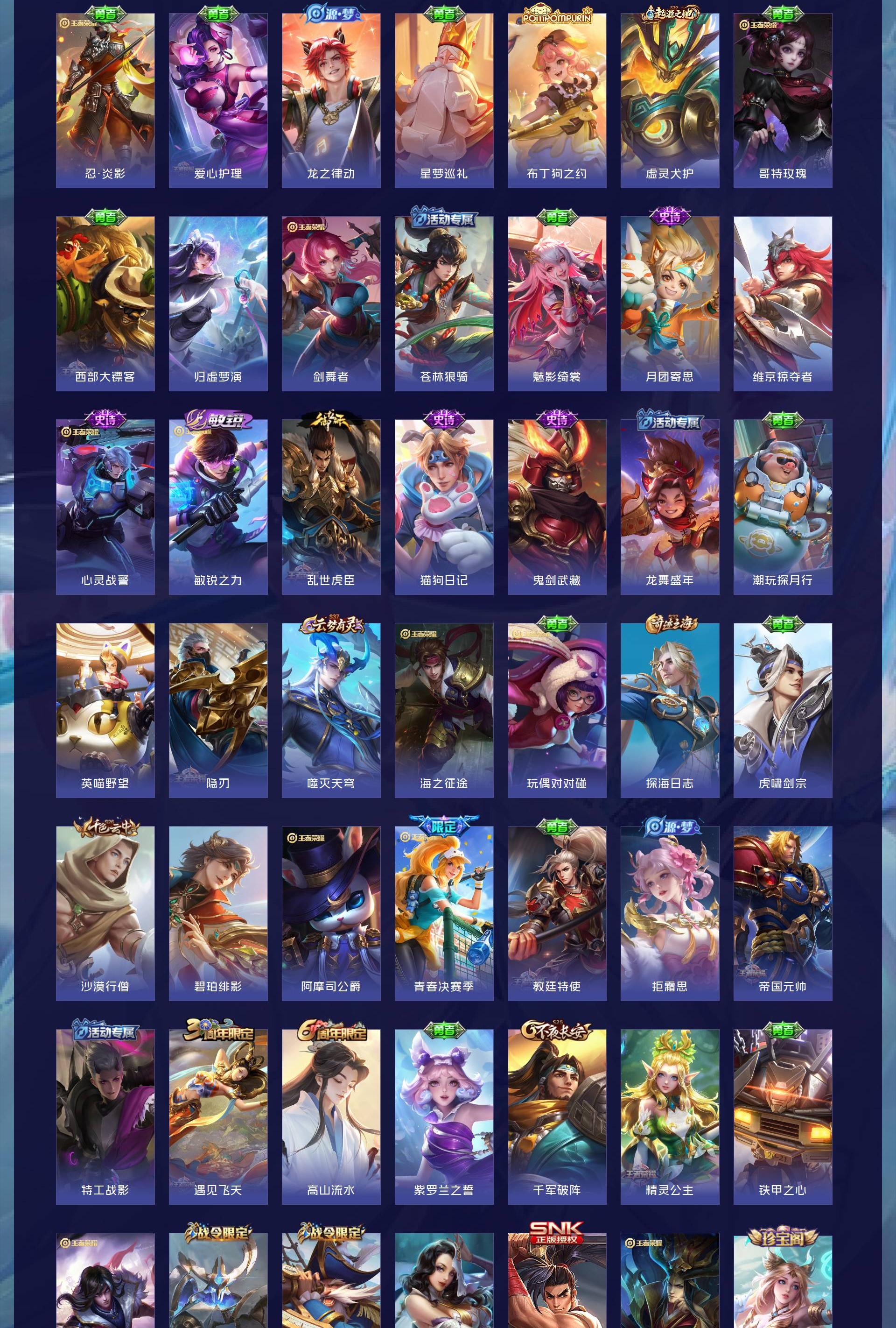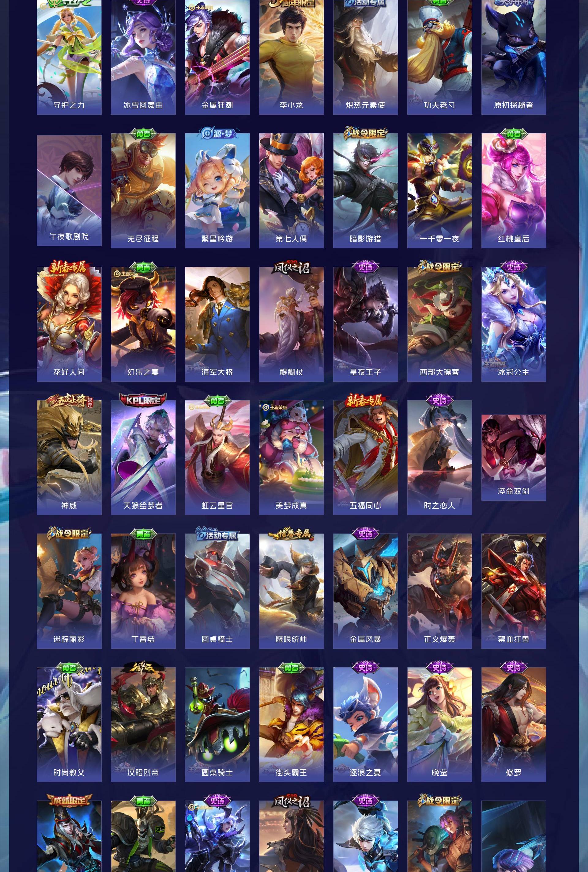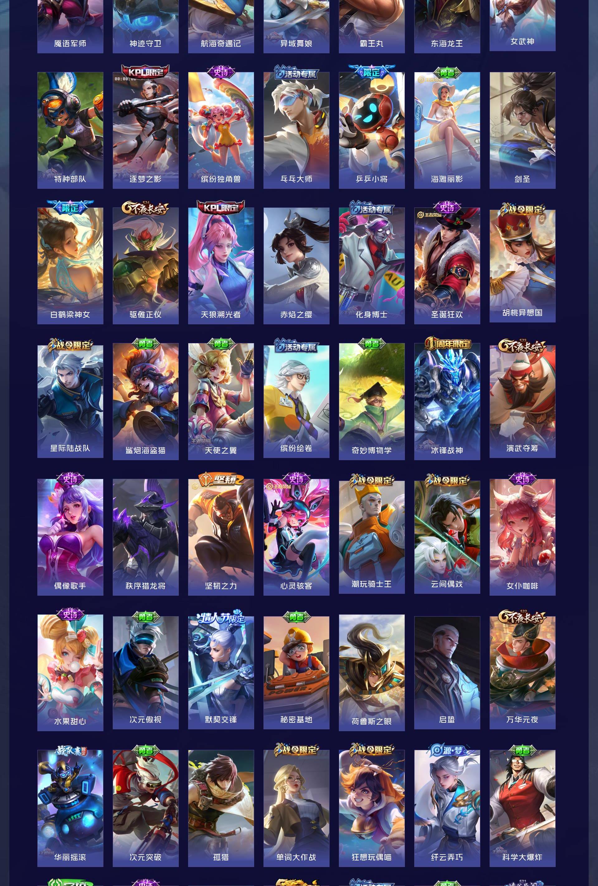 V7 皮肤185 英雄126 尊贵铂金 荣耀典藏1 传说9 其他皮肤181