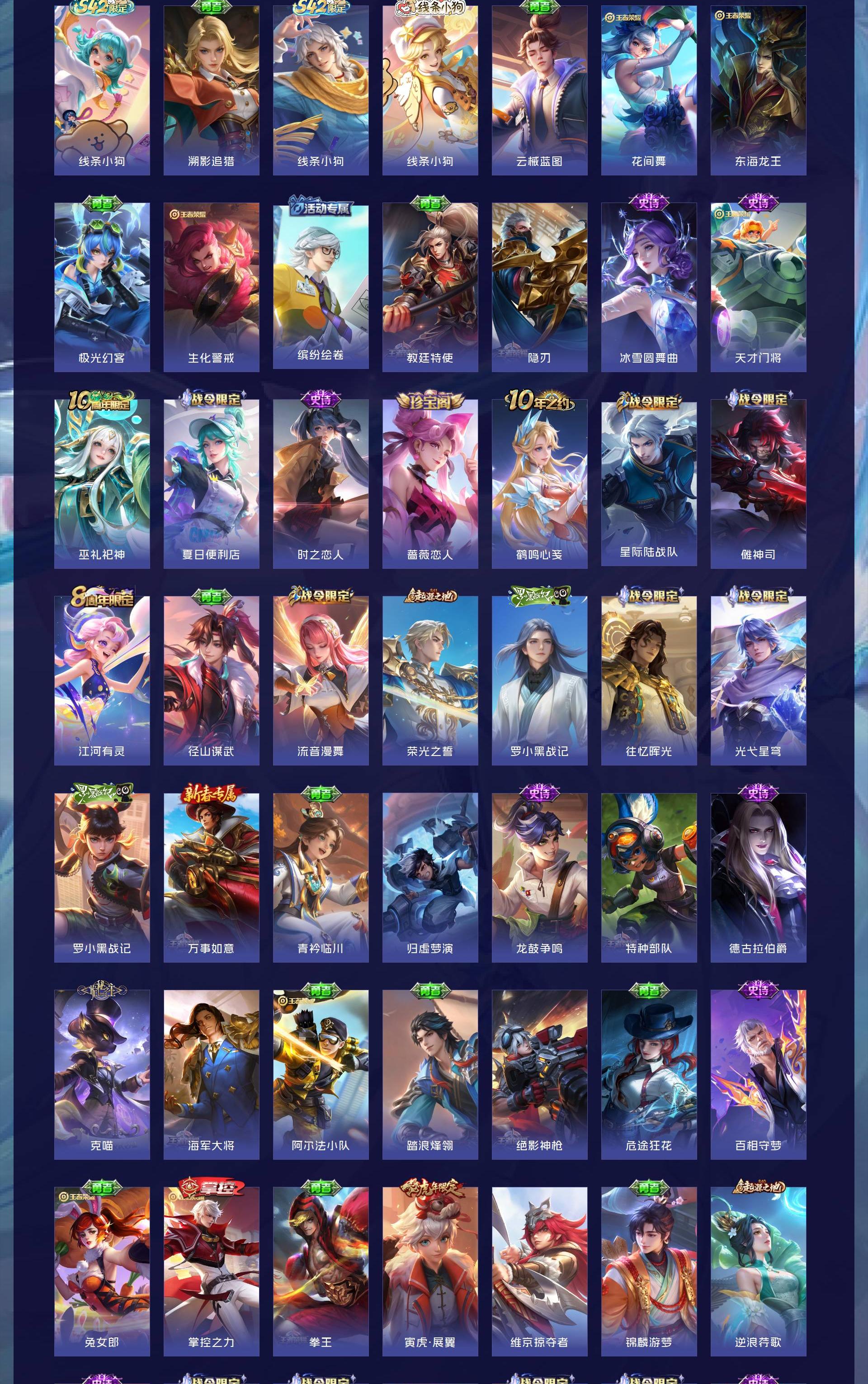 V7 皮肤147 英雄114 至尊星耀 荣耀典藏2 珍品传说3 传说9 其他皮肤137