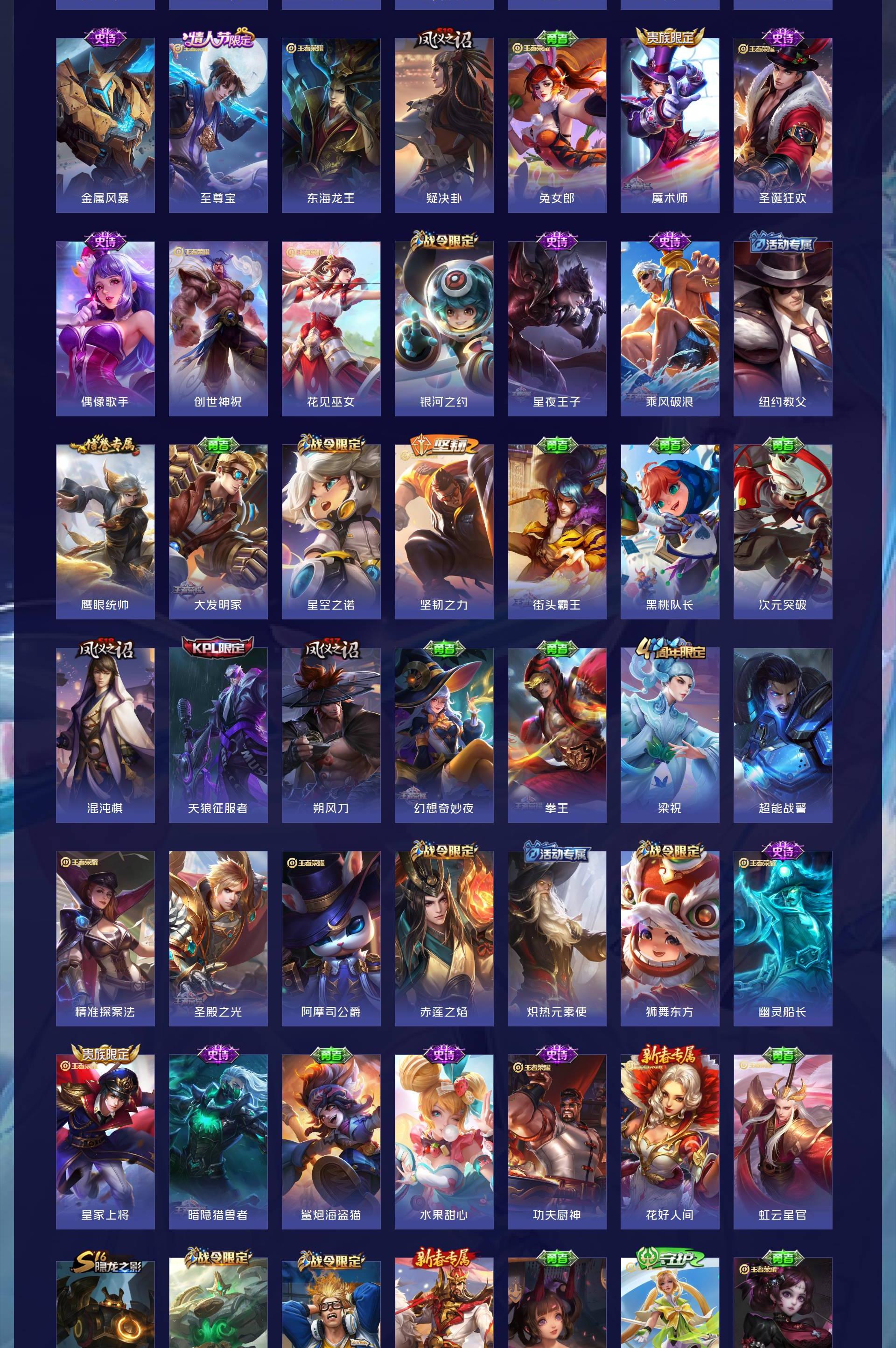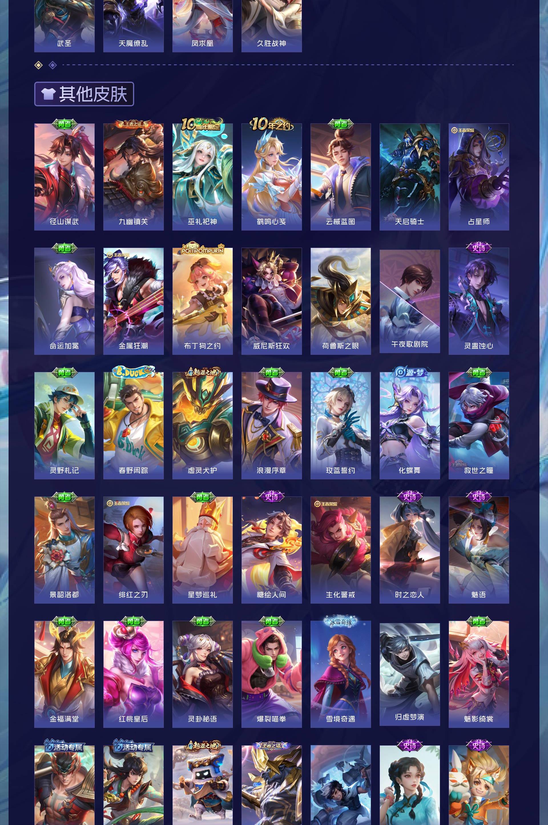 V8 皮肤377 英雄125 至尊星耀 荣耀典藏2 传说26 其他皮肤355