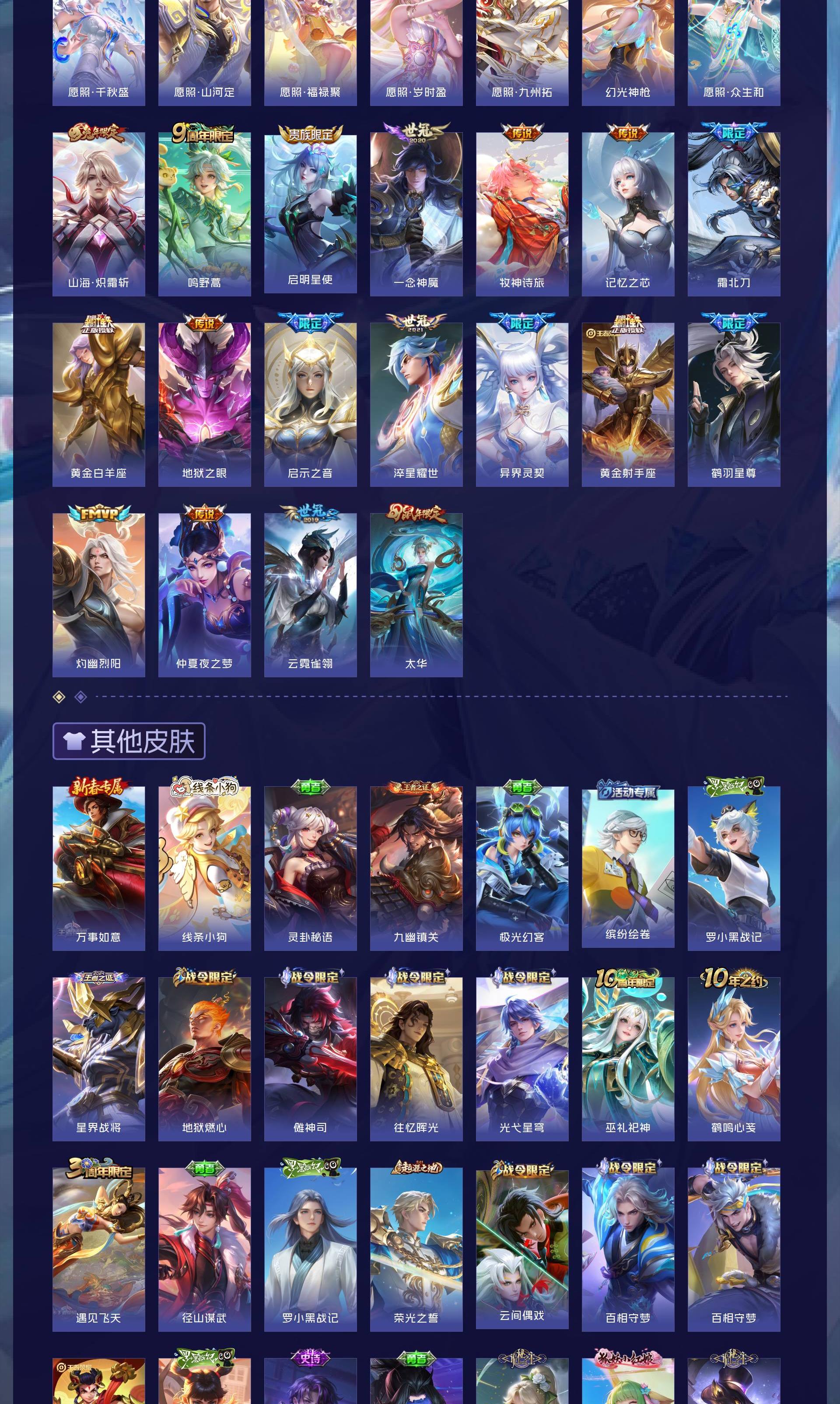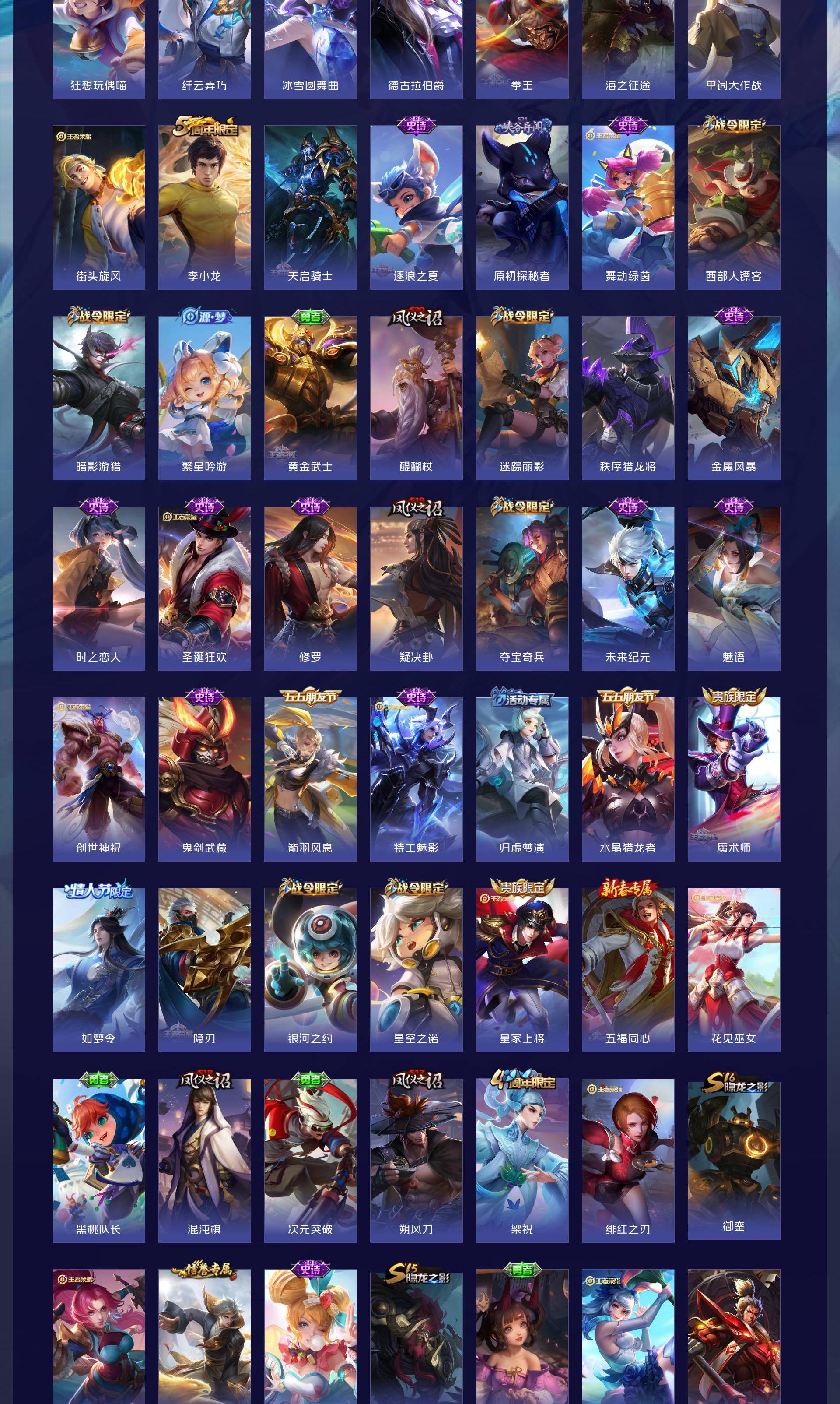 V8 皮肤303 英雄128 至尊星耀 荣耀典藏2 无双皮肤4 珍品传说3 传说32 其他皮肤267
