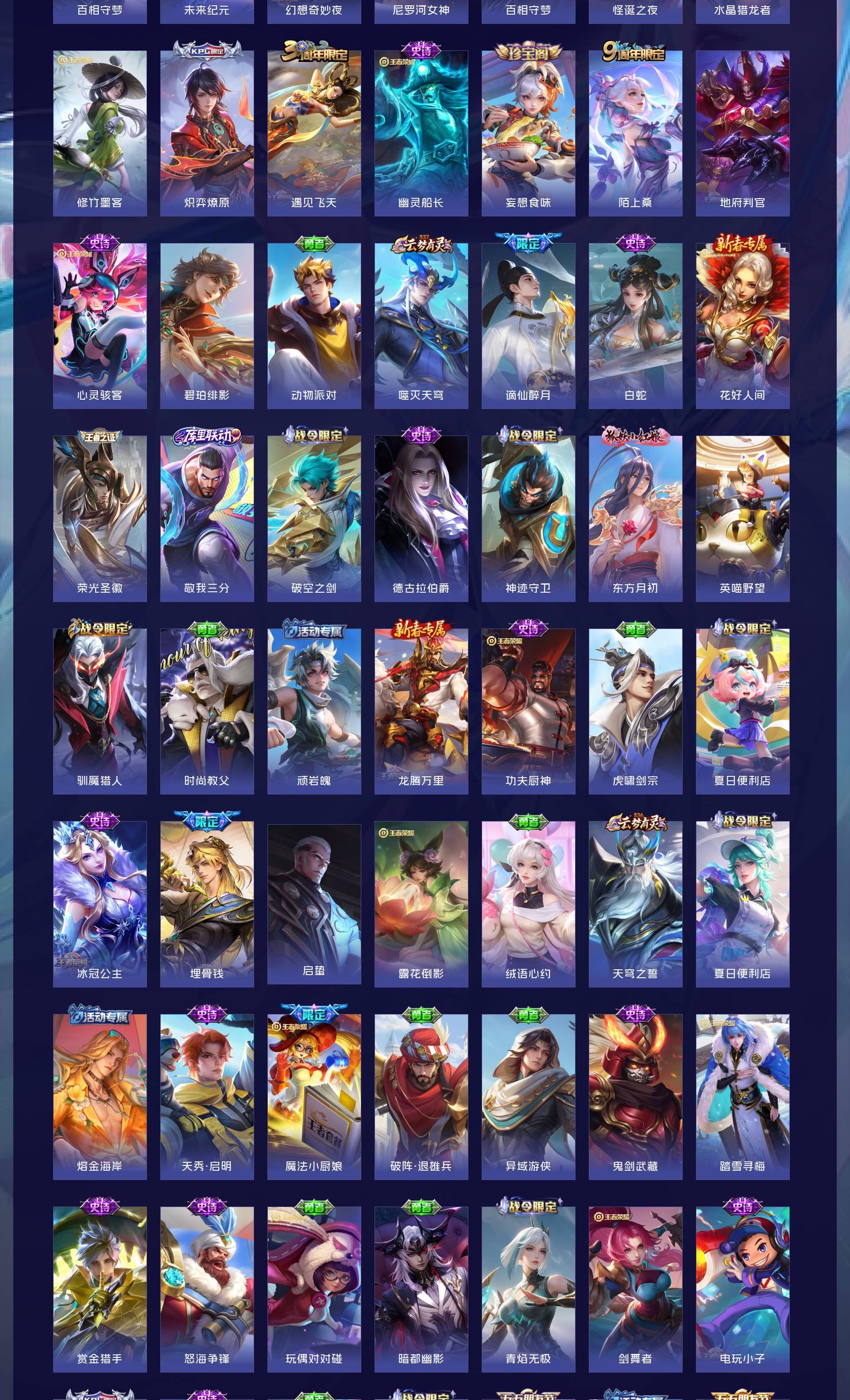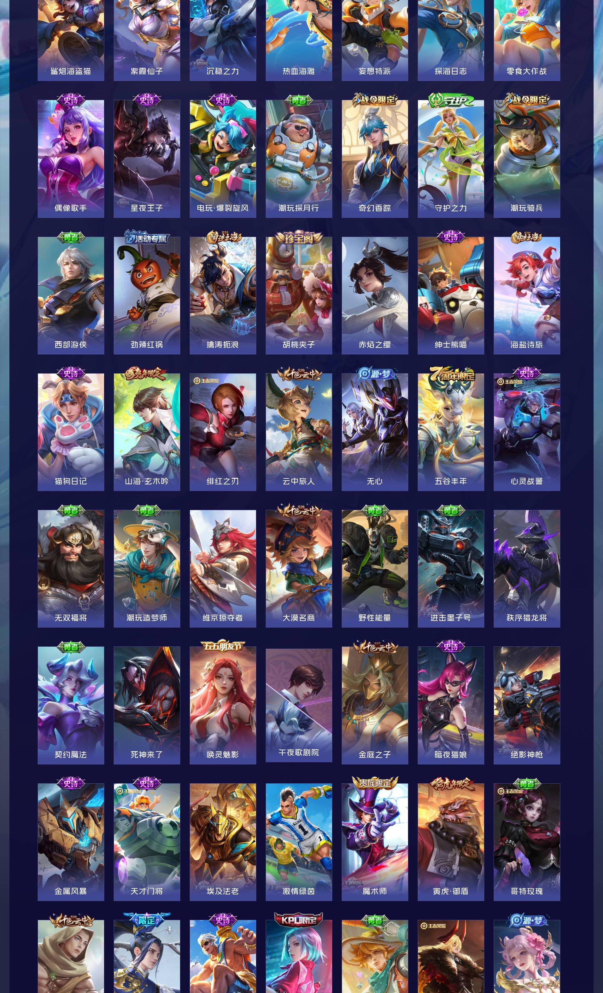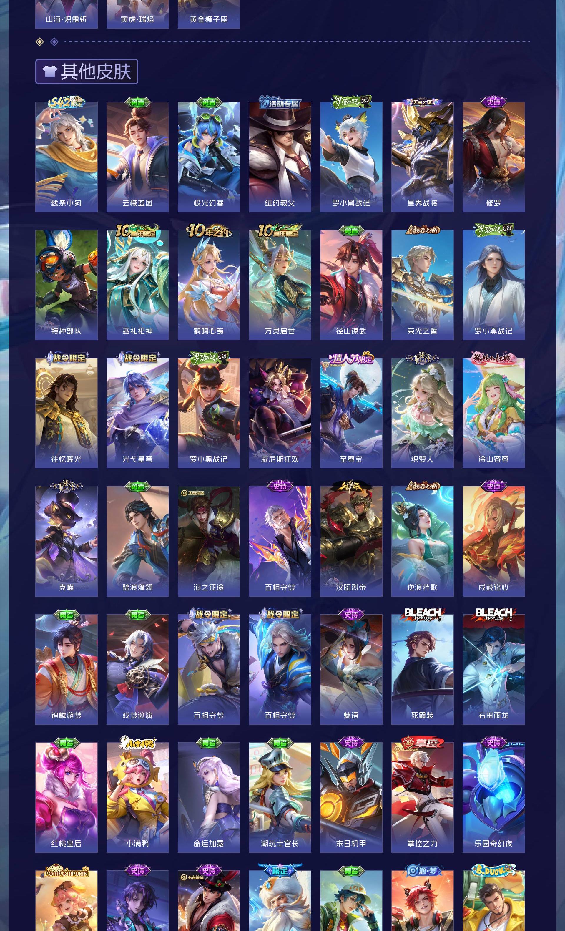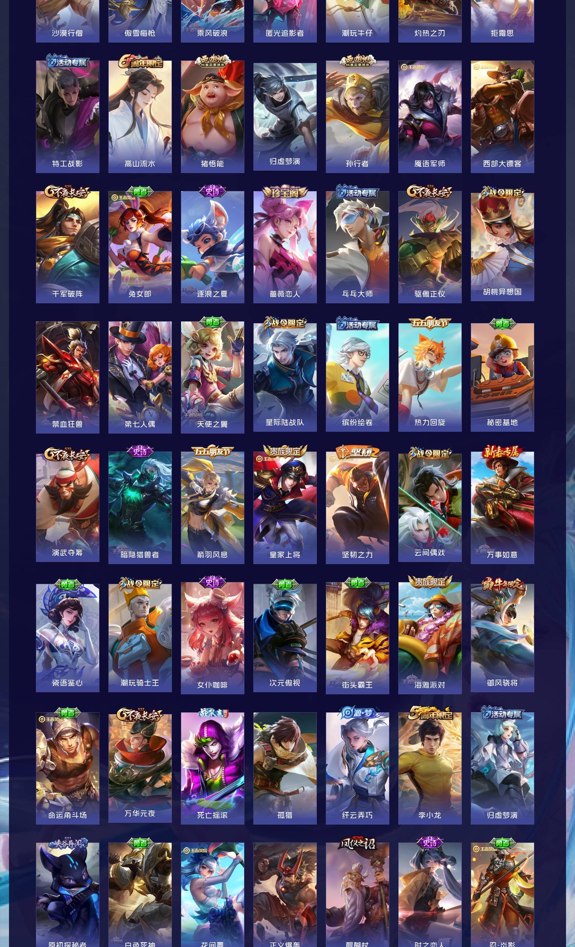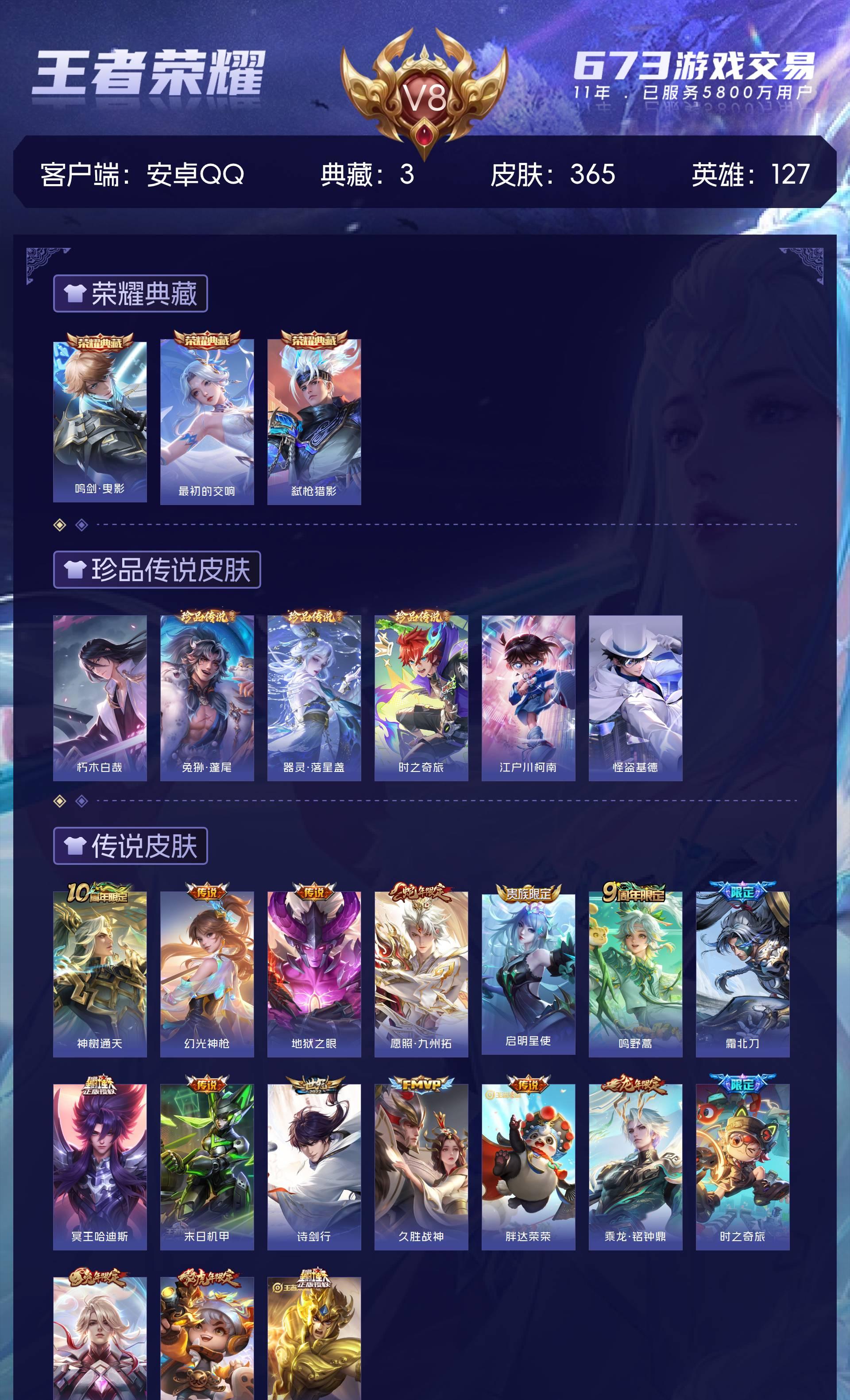 V8 皮肤365 英雄127 至尊星耀 荣耀典藏3 珍品传说6 传说17 其他皮肤342
