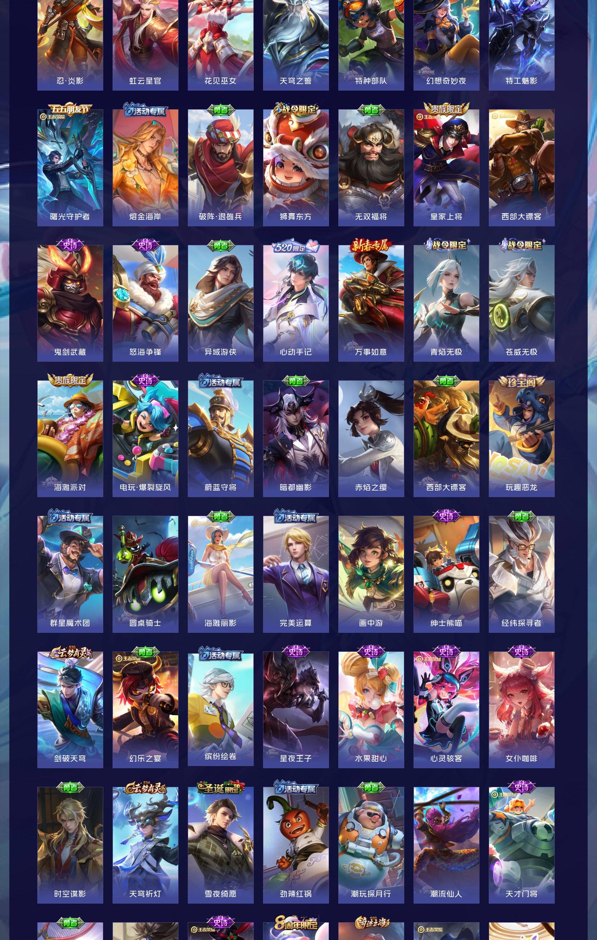 V8 皮肤280 英雄128 永恒钻石 荣耀典藏2 无双皮肤1 珍品传说3 传说23 其他皮肤256