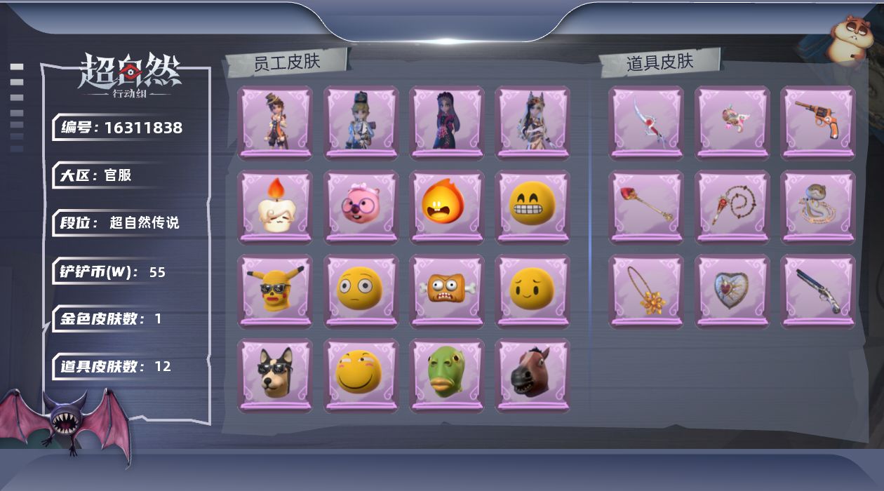 金色皮肤数量1紫色皮肤数量5道具皮肤数量A598