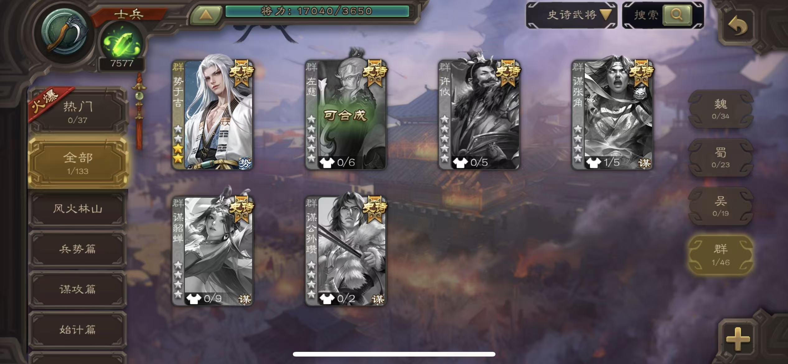 士兵势于吉8万羽毛7500将魂122招募令三卡
