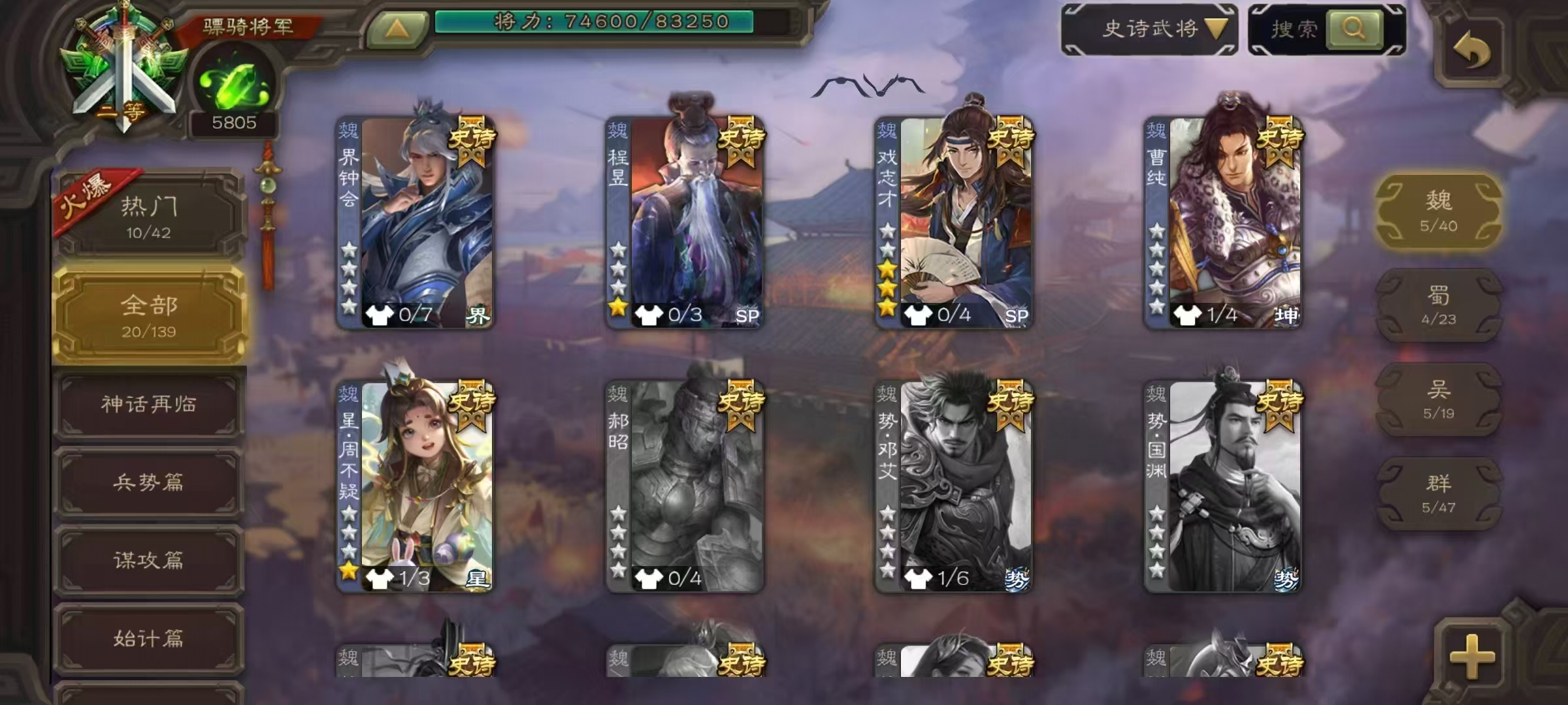 史诗武将数量:
