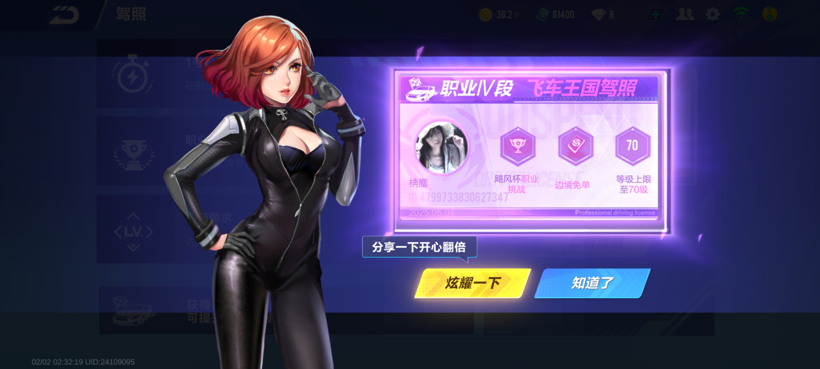 QQ飞车手游 绝影星耀Ⅲ实力号|73级高练度|职业IV驾照 边境免单多辆A车及稀有套装 价格可谈。
