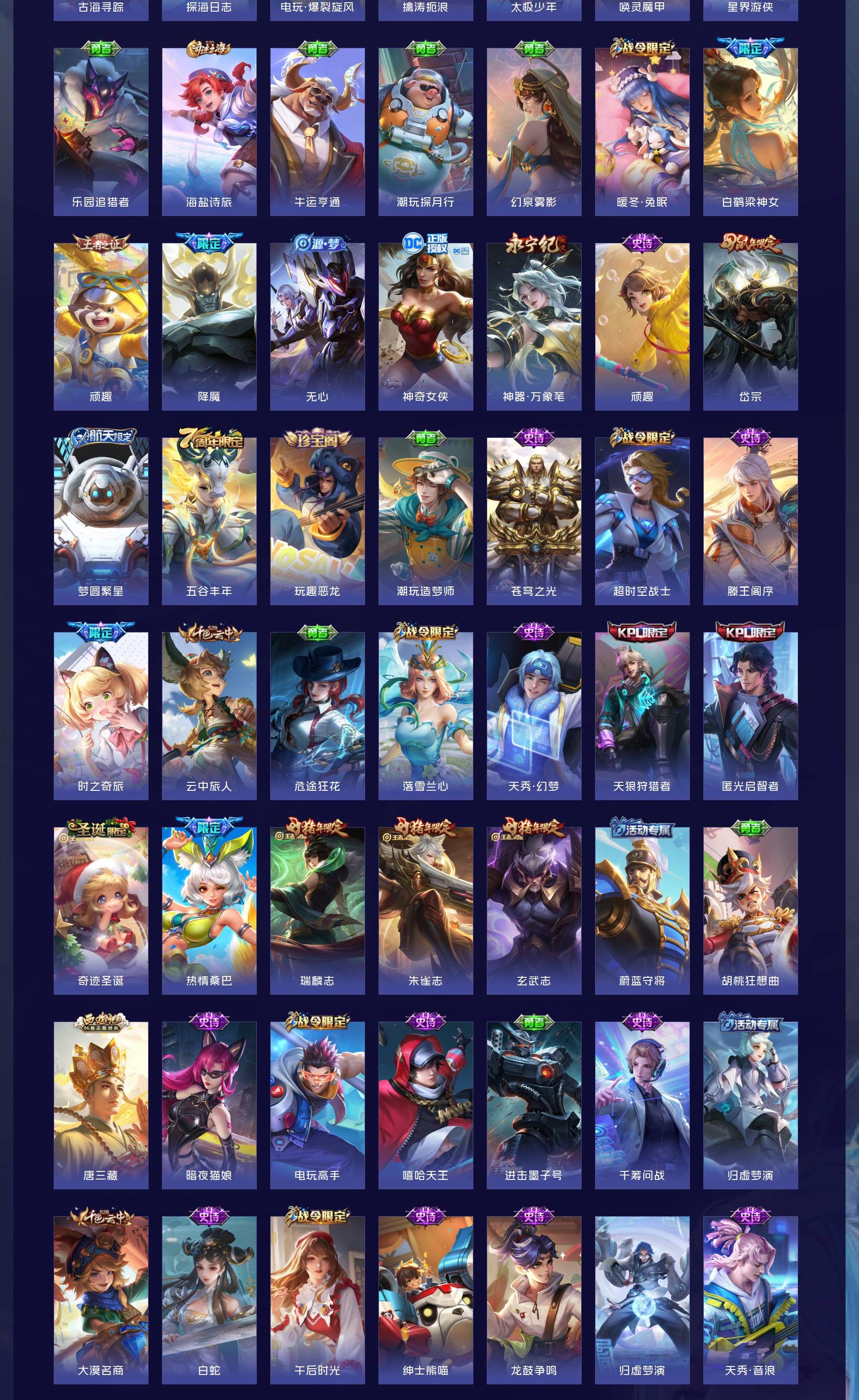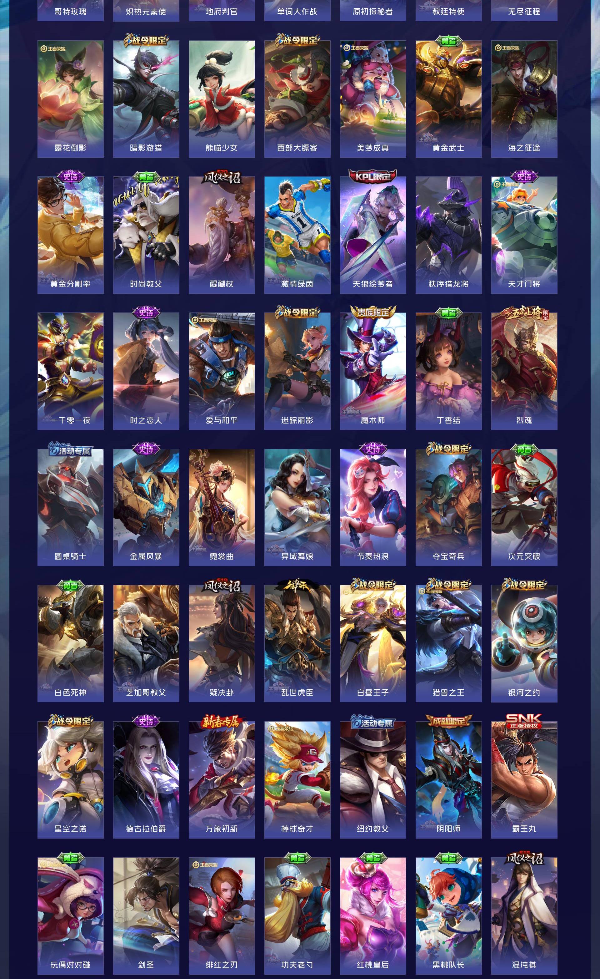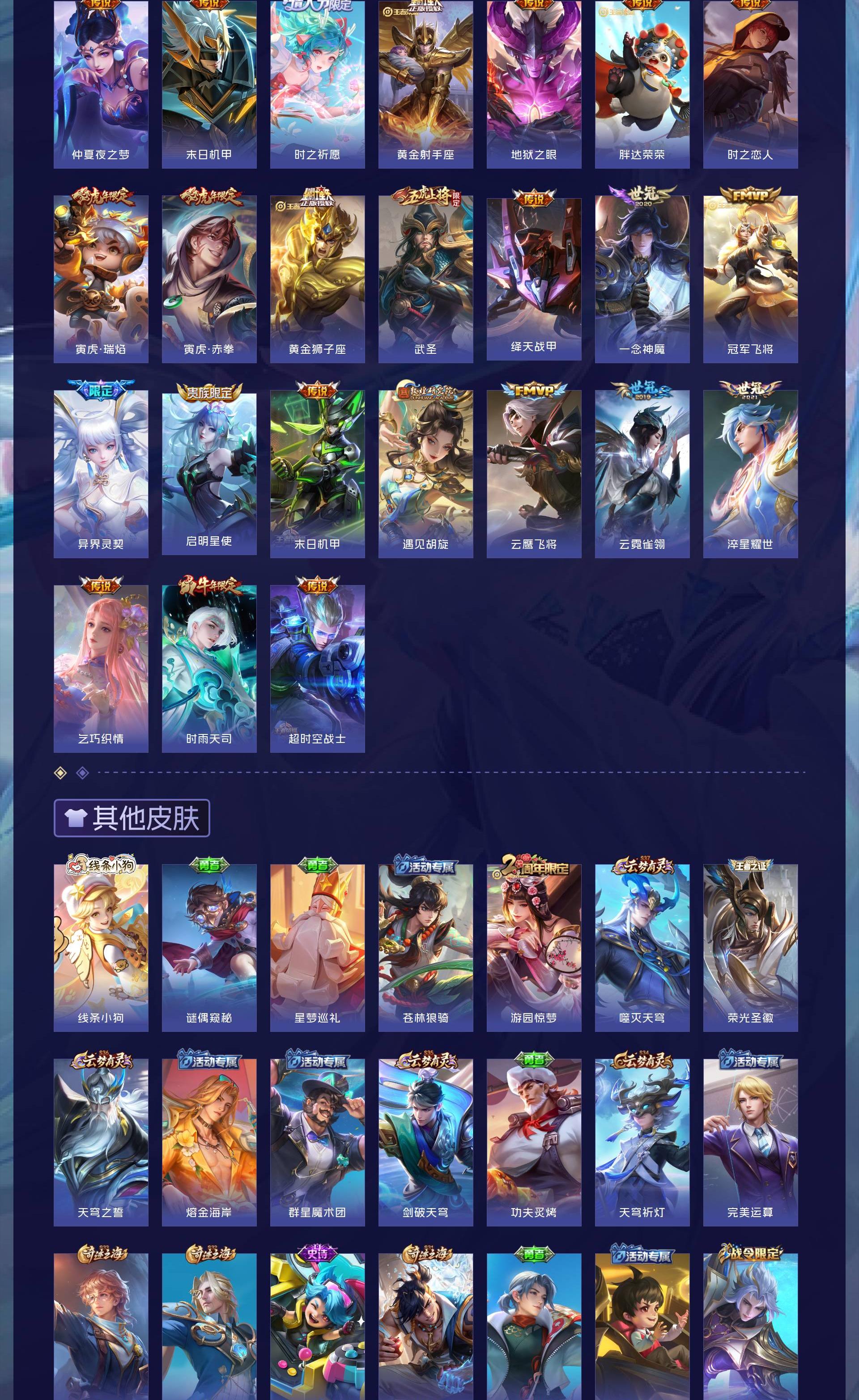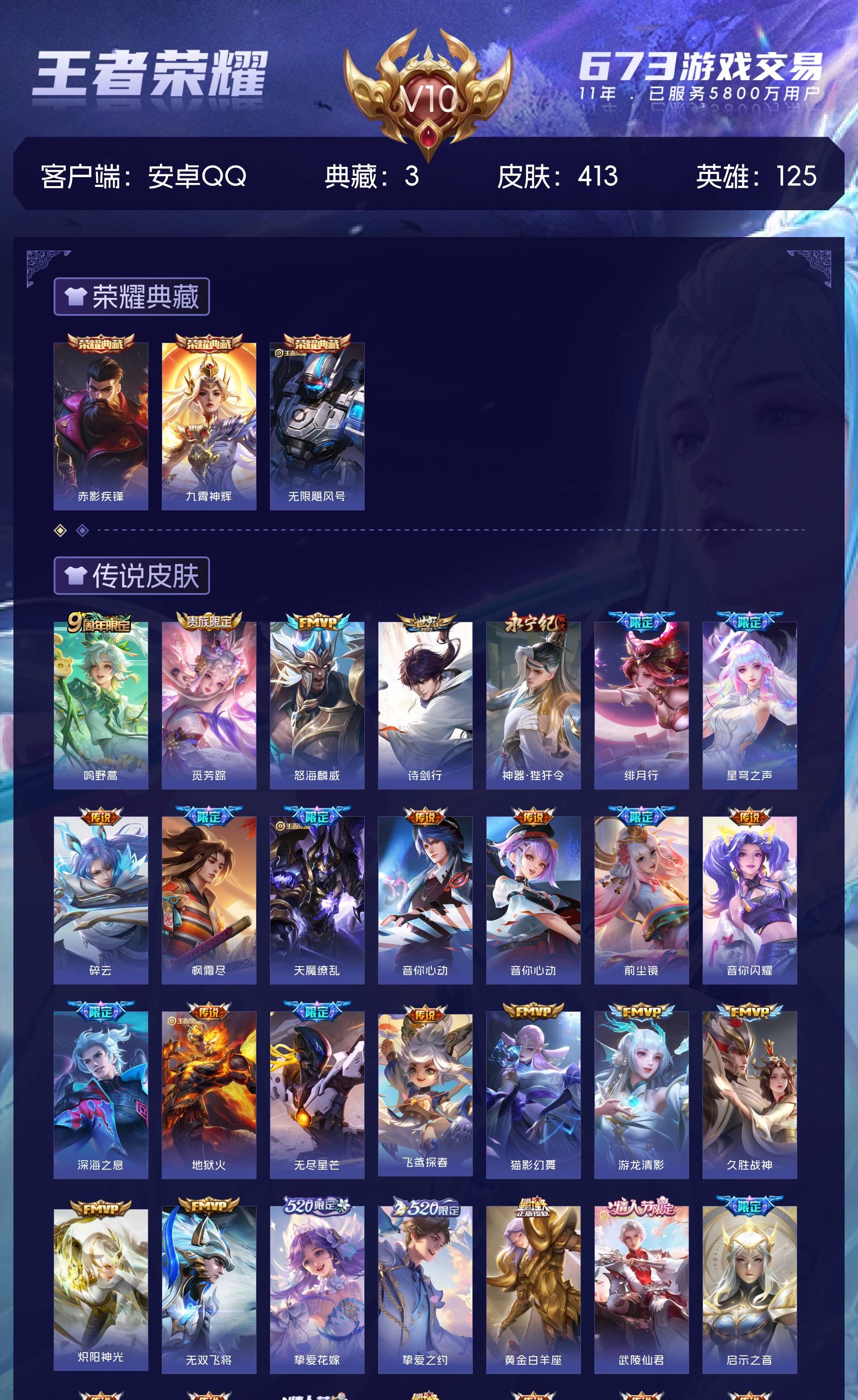 V10 皮肤413 英雄125 永恒钻石 荣耀典藏3 传说53 其他皮肤362