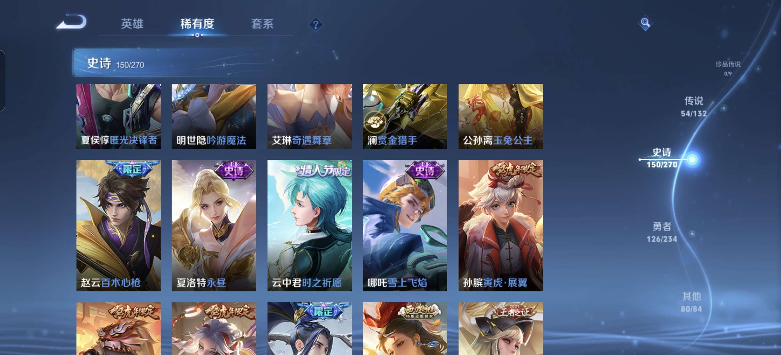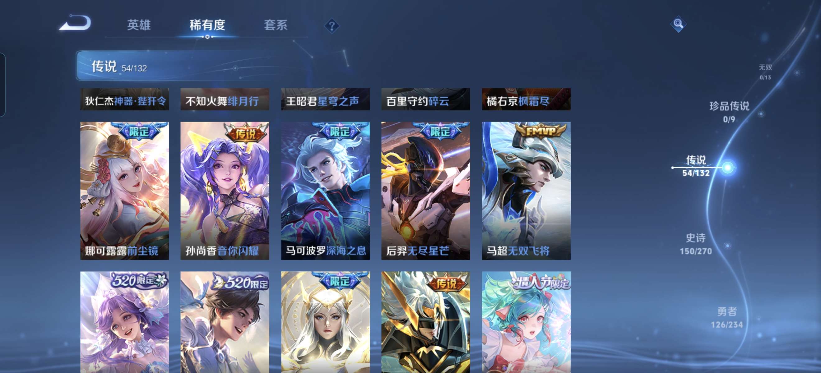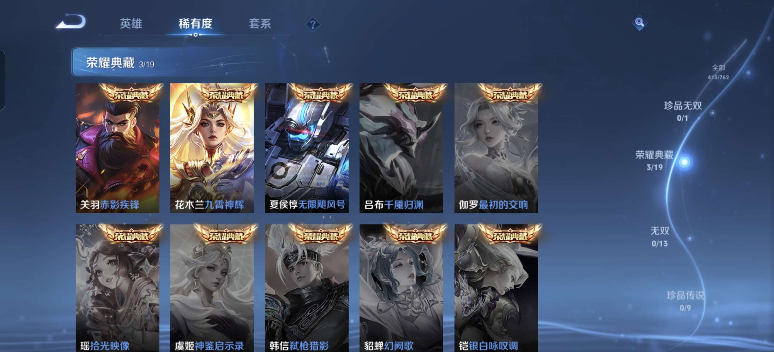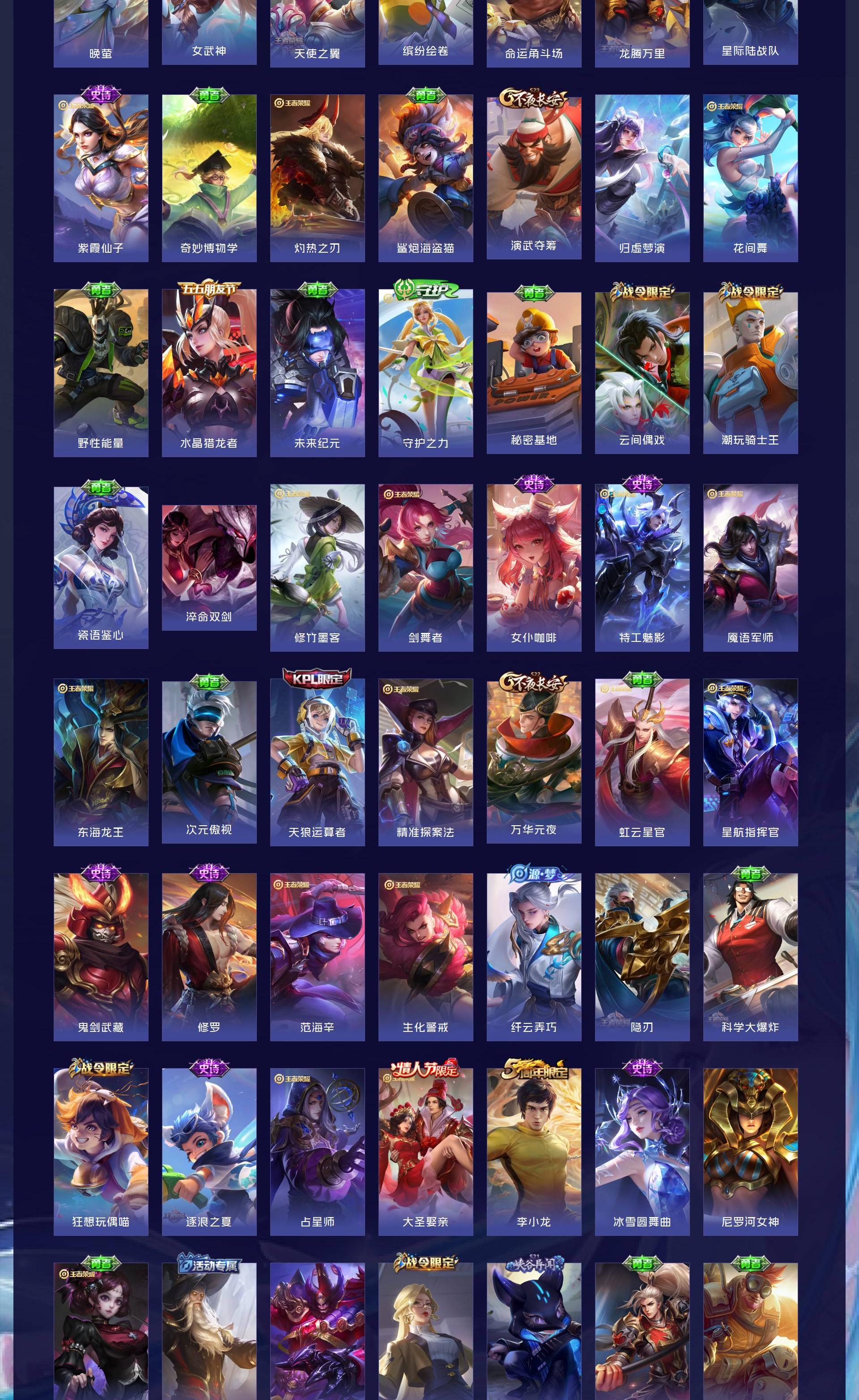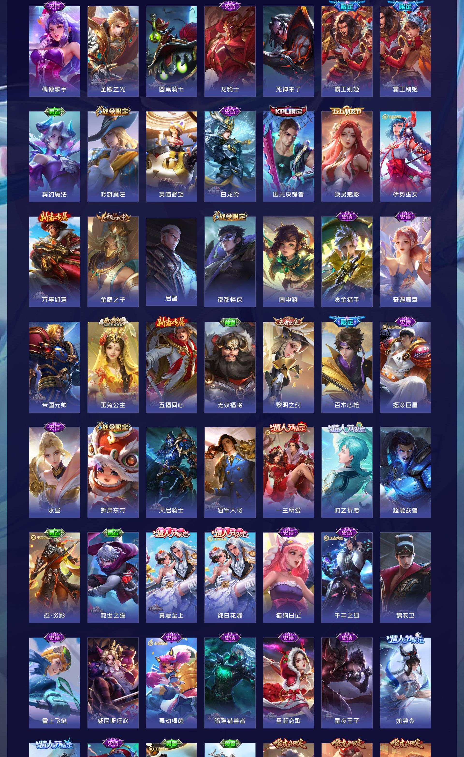 V10 皮肤413 英雄125 永恒钻石 荣耀典藏3 传说53 其他皮肤362