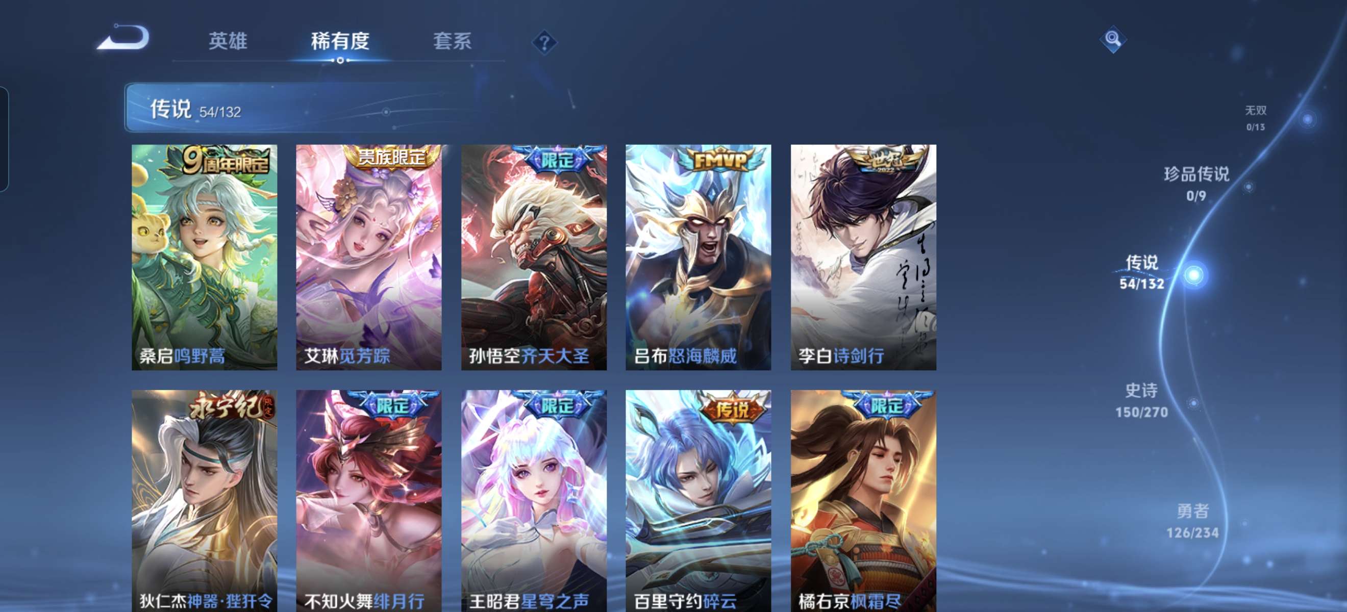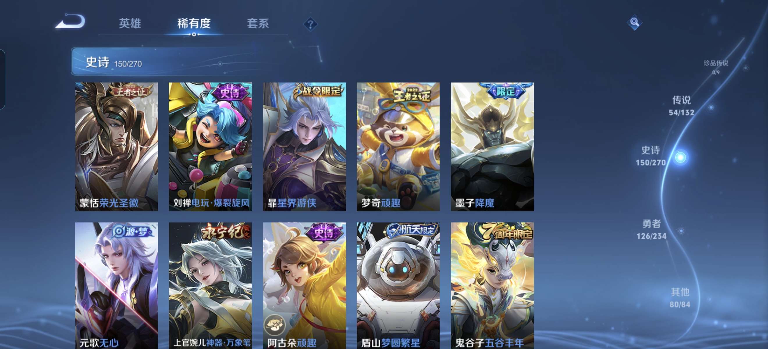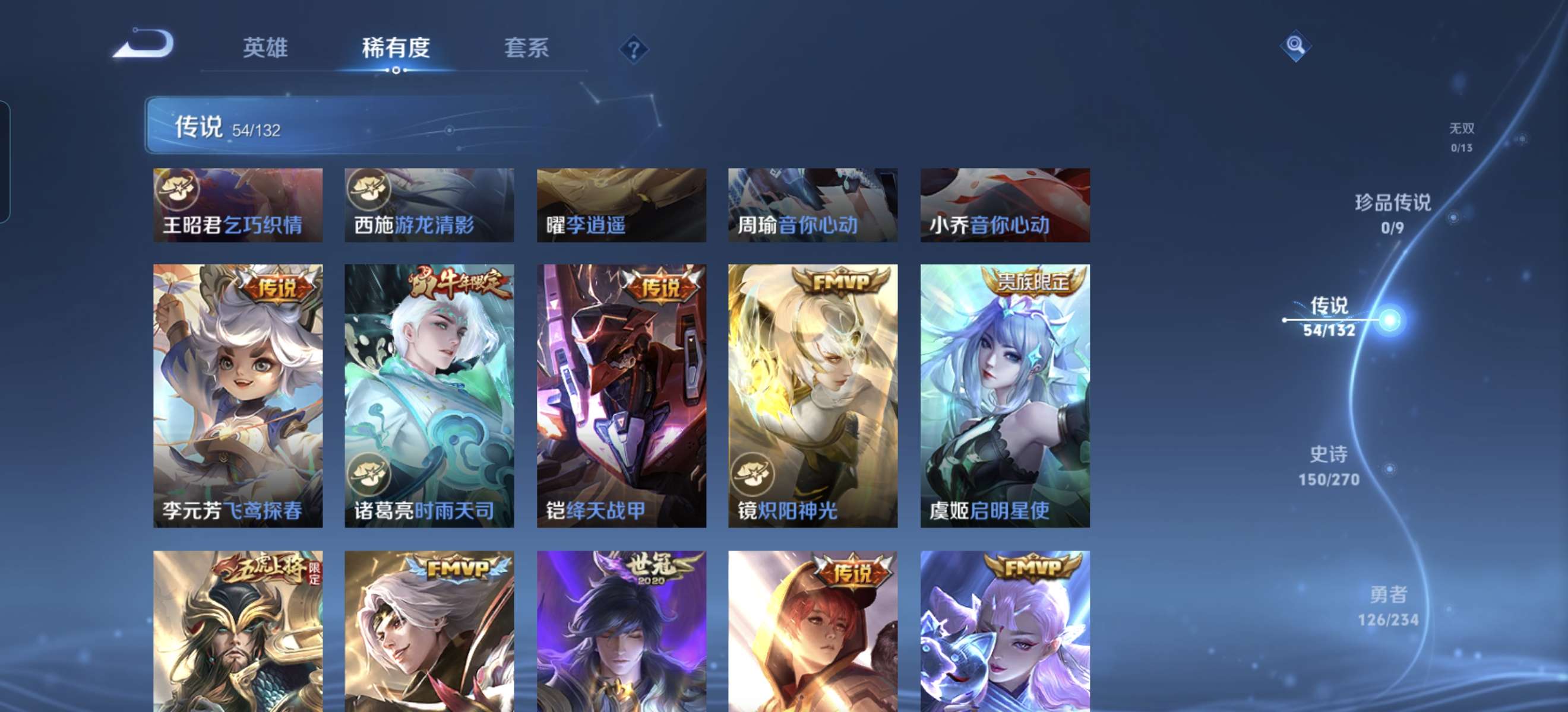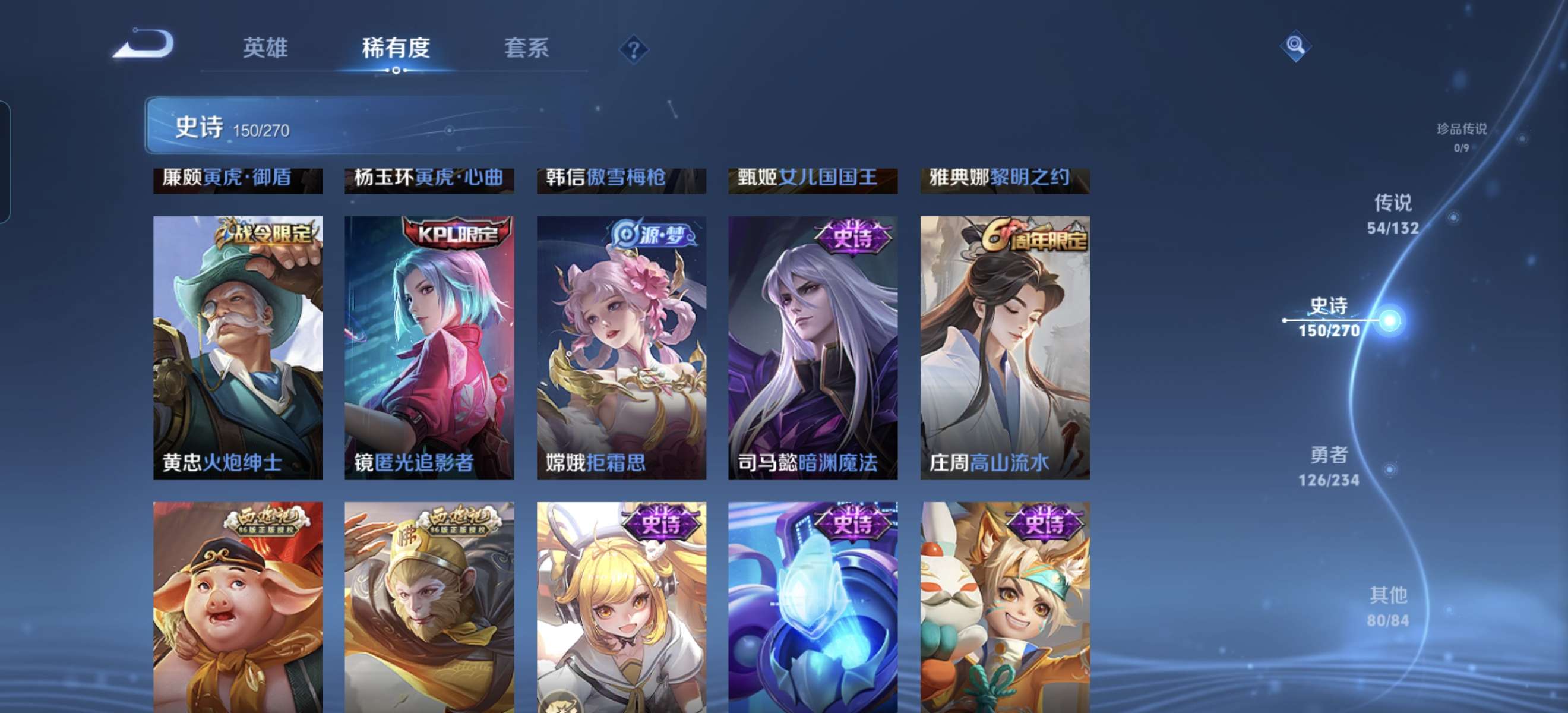V10 皮肤413 英雄125 永恒钻石 荣耀典藏3 传说53 其他皮肤362
