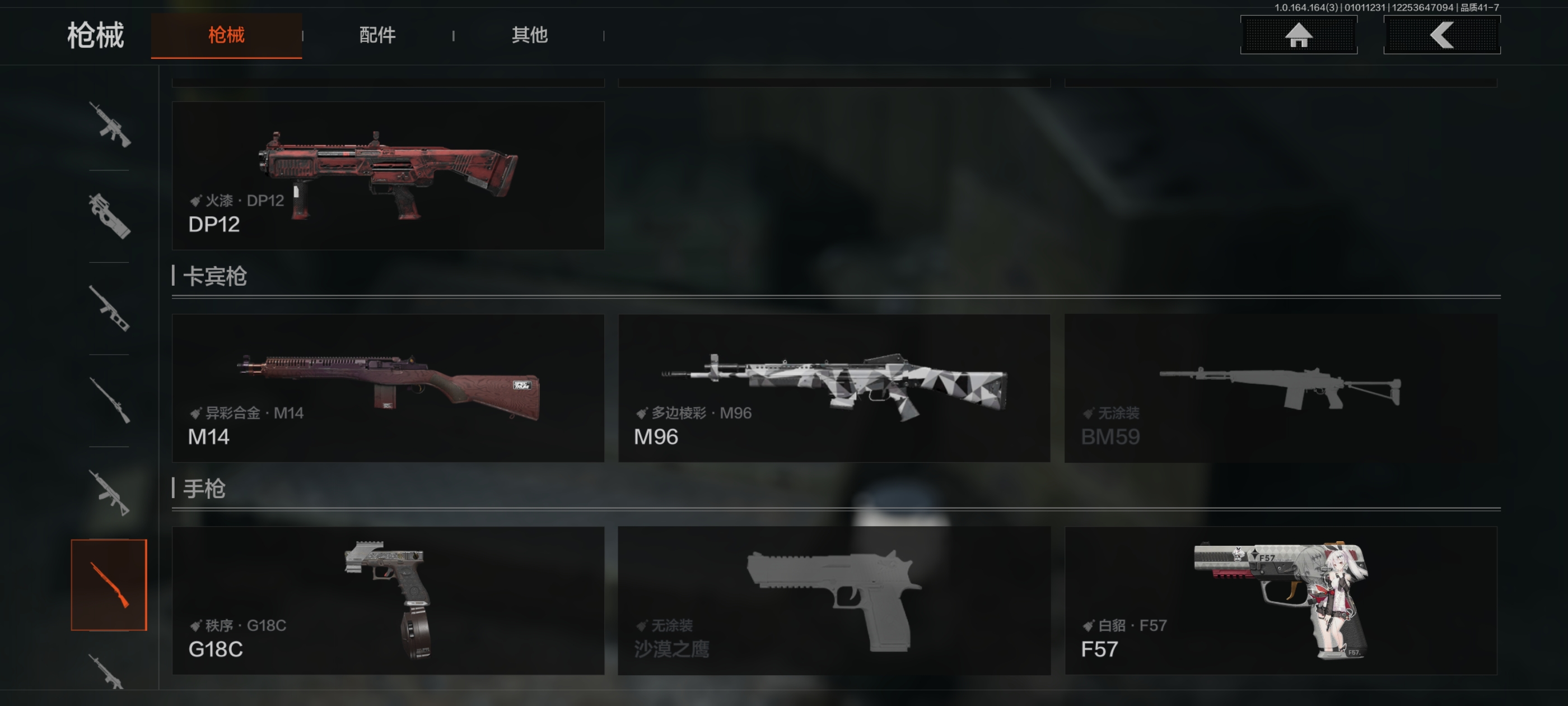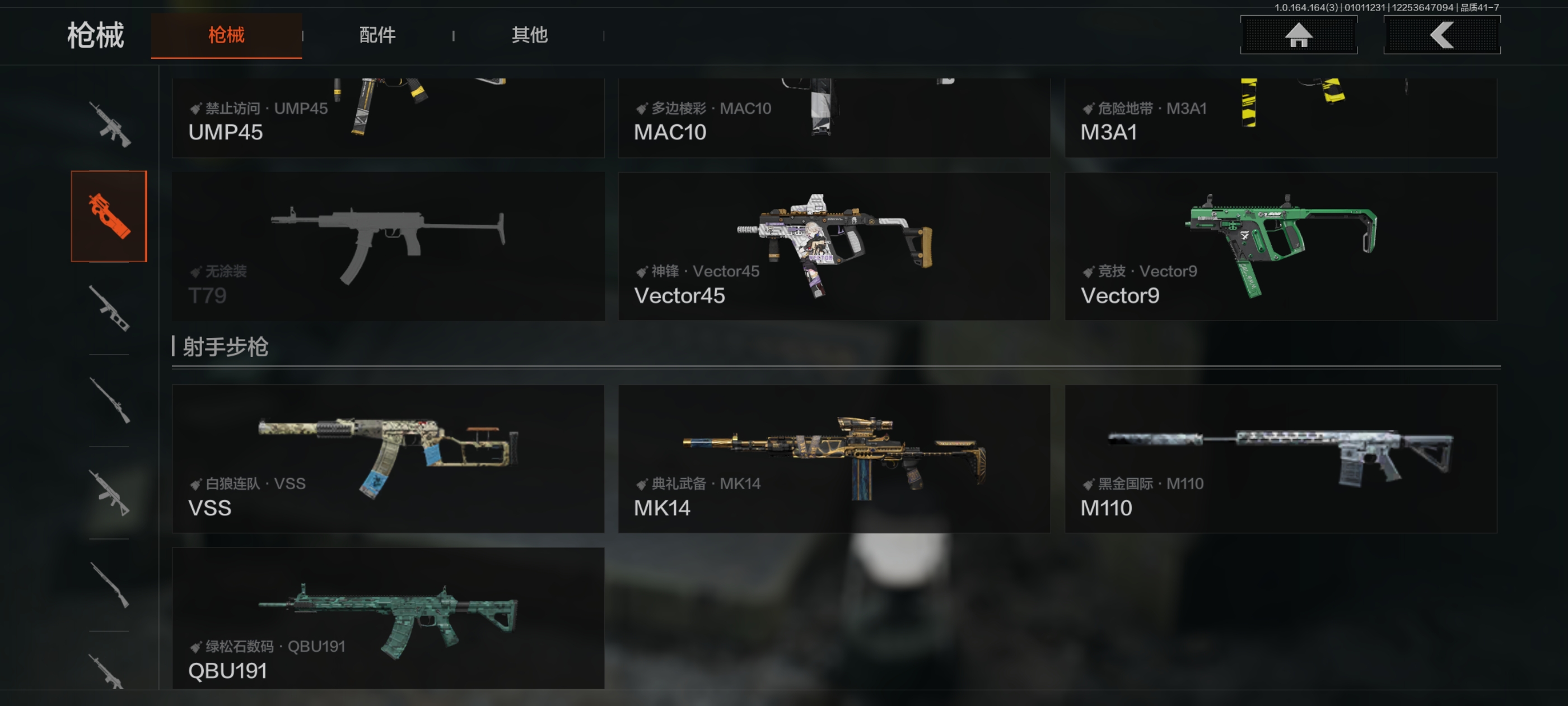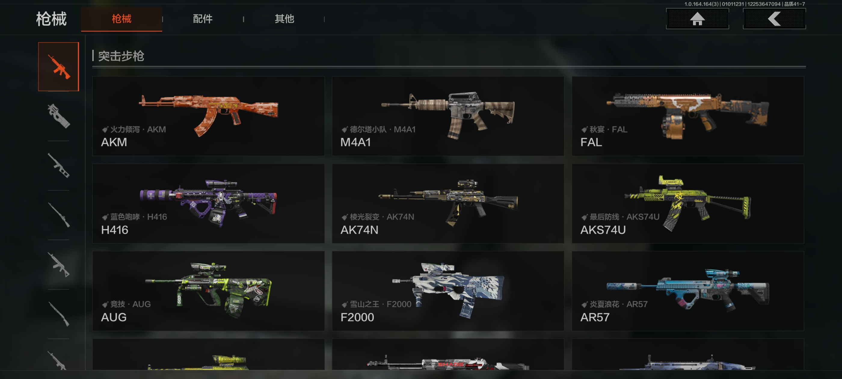 MWT4212安卓Q-等级30-仓库价值3.4m-科恩币286440【现金库2.3m】-【套装】 都市夜影套装 【枪皮】 蓝色咆哮·H416 【近战武器】 寒牙手刺