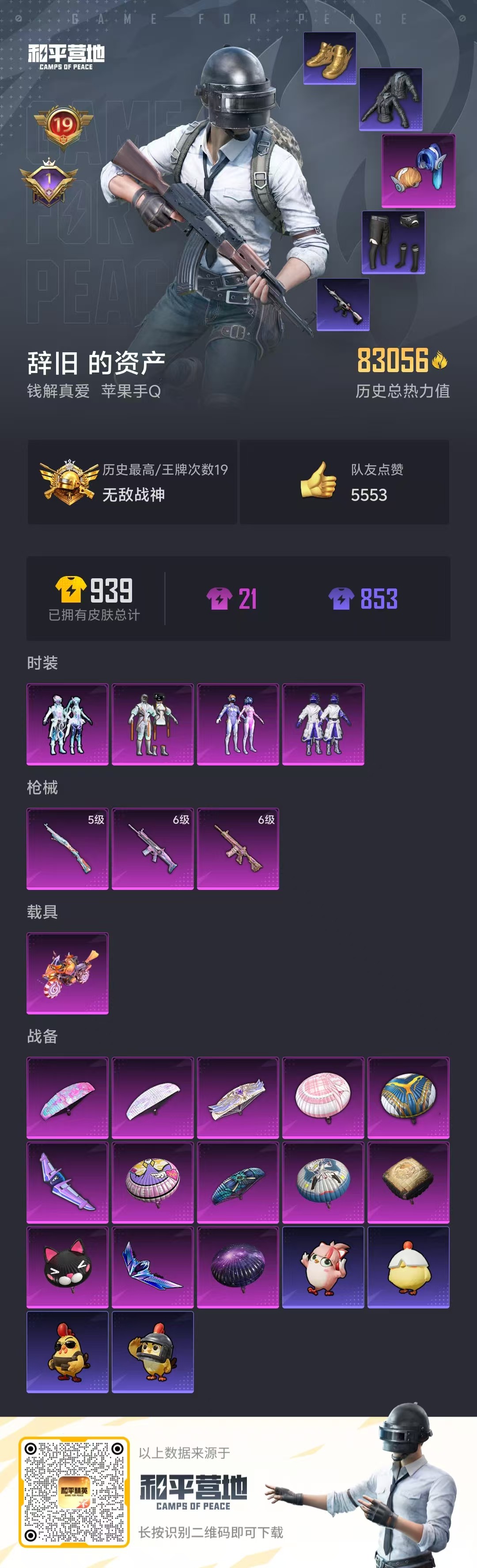 有身法皮肤和男神皮肤还有热门枪皮还有灰熊背包金鱼特工头盔