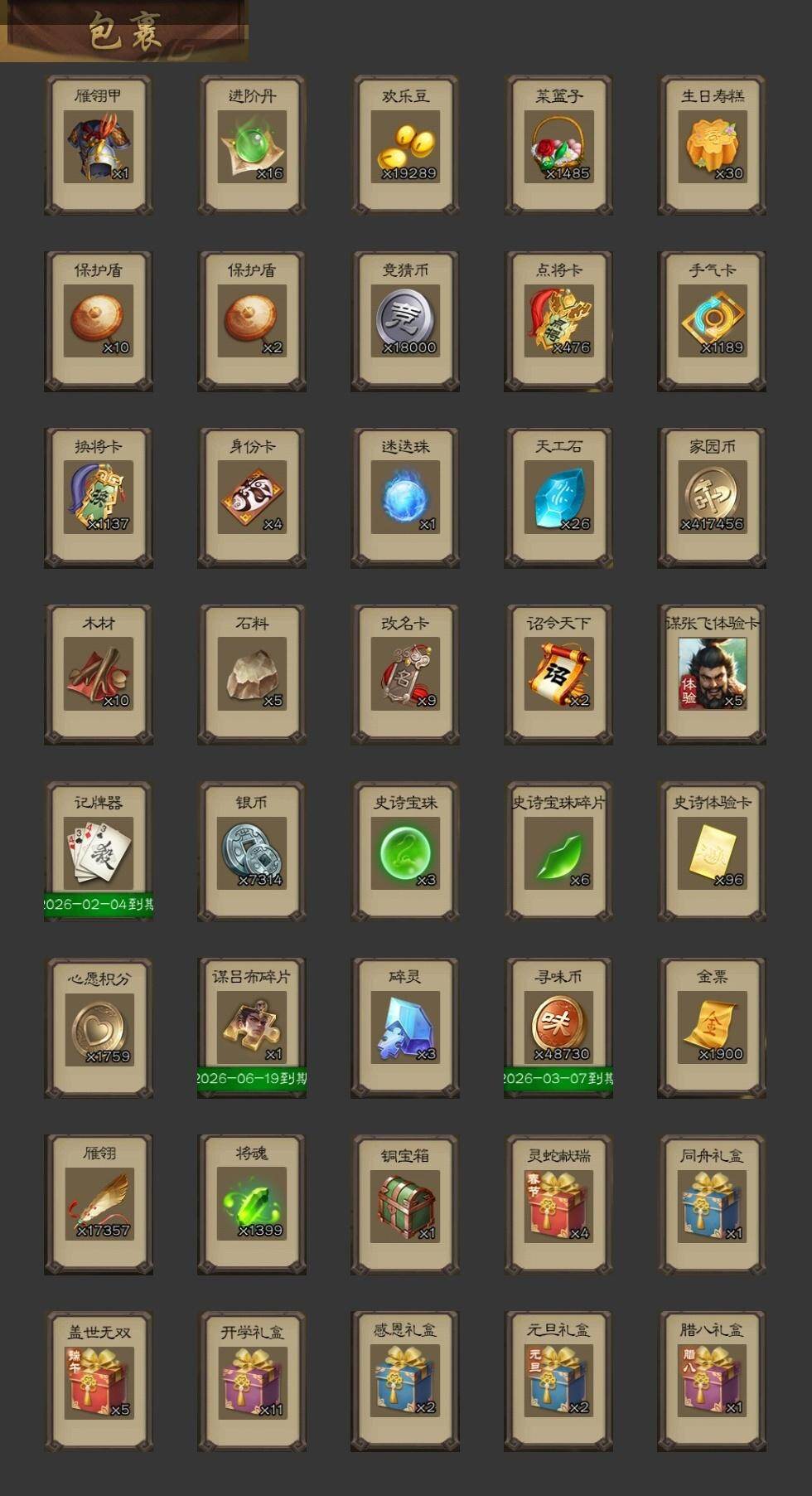 官阶:先锋将军;VIP等级:VIP5;史诗武将数量:5;动态皮肤数量:5;武将总数:161;史诗宝珠数量:3;将魂数量:1399;神将:1;魏国史诗武将:2;蜀国史诗武将:2;吴国史诗武将:1;群史诗武将:2