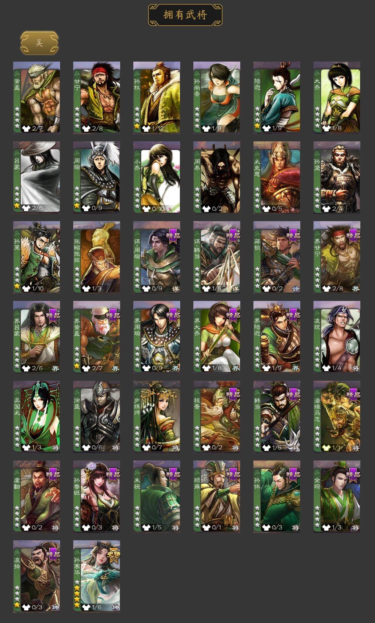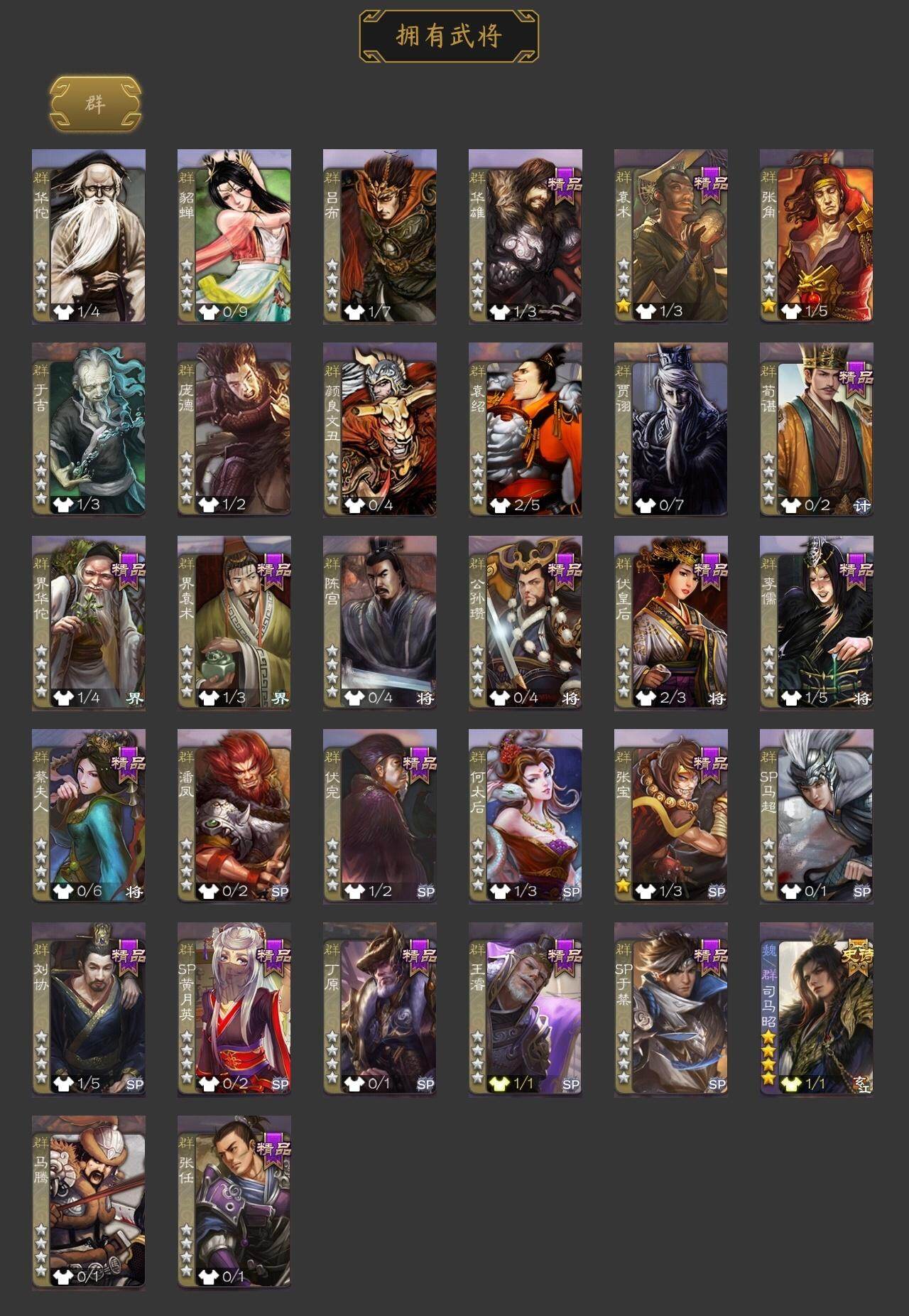神张辽,谯周,花鬘,孙寒华,司马昭,神吕蒙,SP关羽,乐进,曹昂,诸葛诞,朱灵,文聘,SP姜维,钟会,曹冲,界王异,界曹操,界司马懿,界夏侯惇,界张辽,界许褚,李典,曹真,韩浩史涣,陈群,
