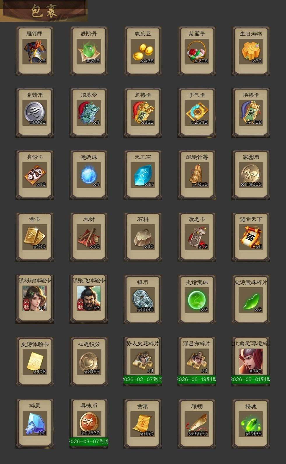 官阶:中军将军;VIP等级:VIP4;史诗武将数量:7;动态皮肤数量:5;武将总数:178;史诗宝珠数量:2;将魂数量:2935;神将:0;魏国史诗武将:0;蜀国史诗武将:2;吴国史诗武将:1;群史诗武将:2