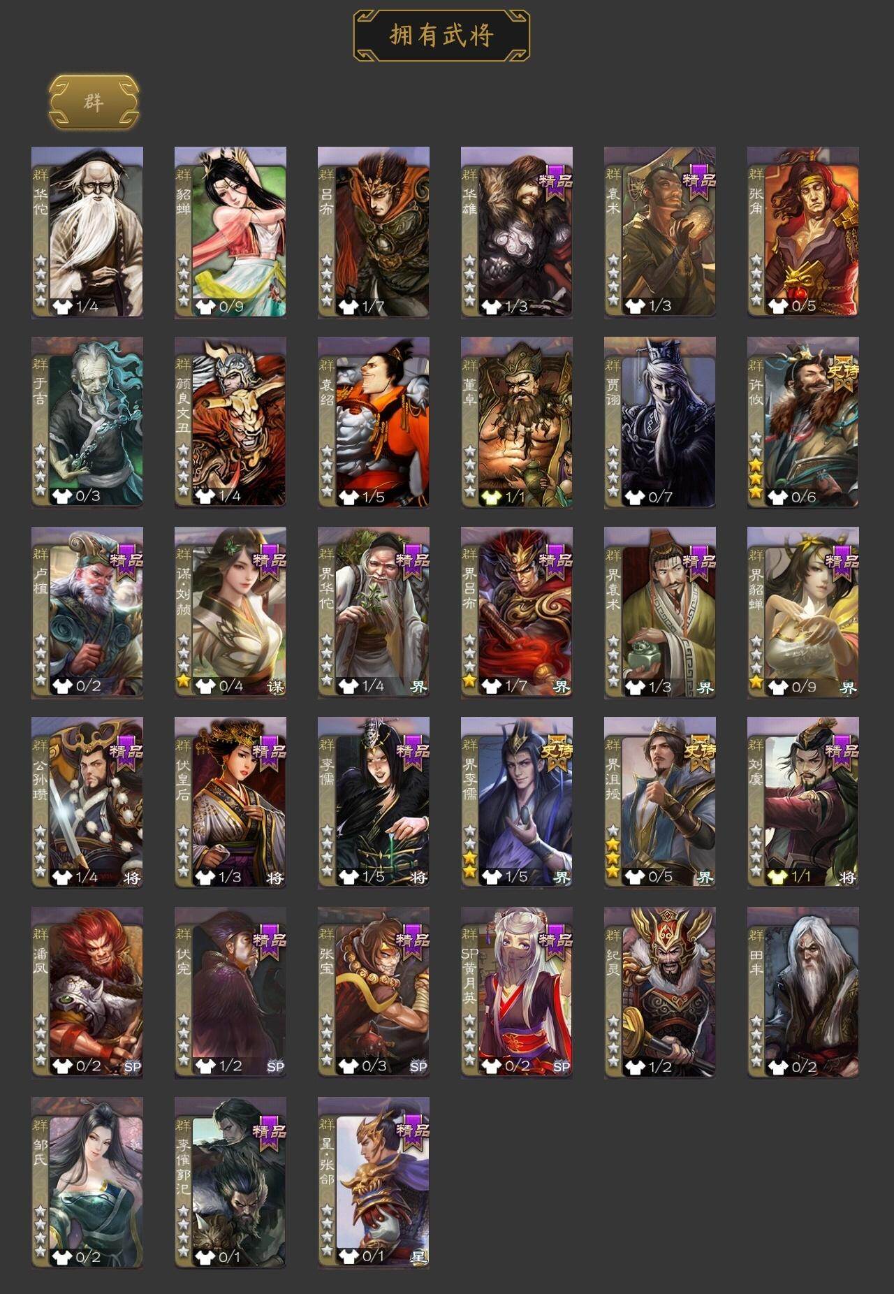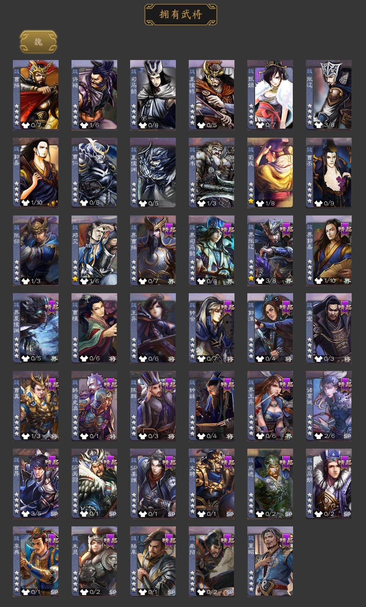 花鬘,骆统,界沮授,界李儒,许攸,SP关羽,乐进,曹昂,诸葛诞,朱灵,文聘,SP姜维,钟会,郭淮,满宠,界王异,界曹操,界司马懿,界张辽,界郭嘉,李典,曹真,韩浩史涣,陈群,钟繇,司马朗,